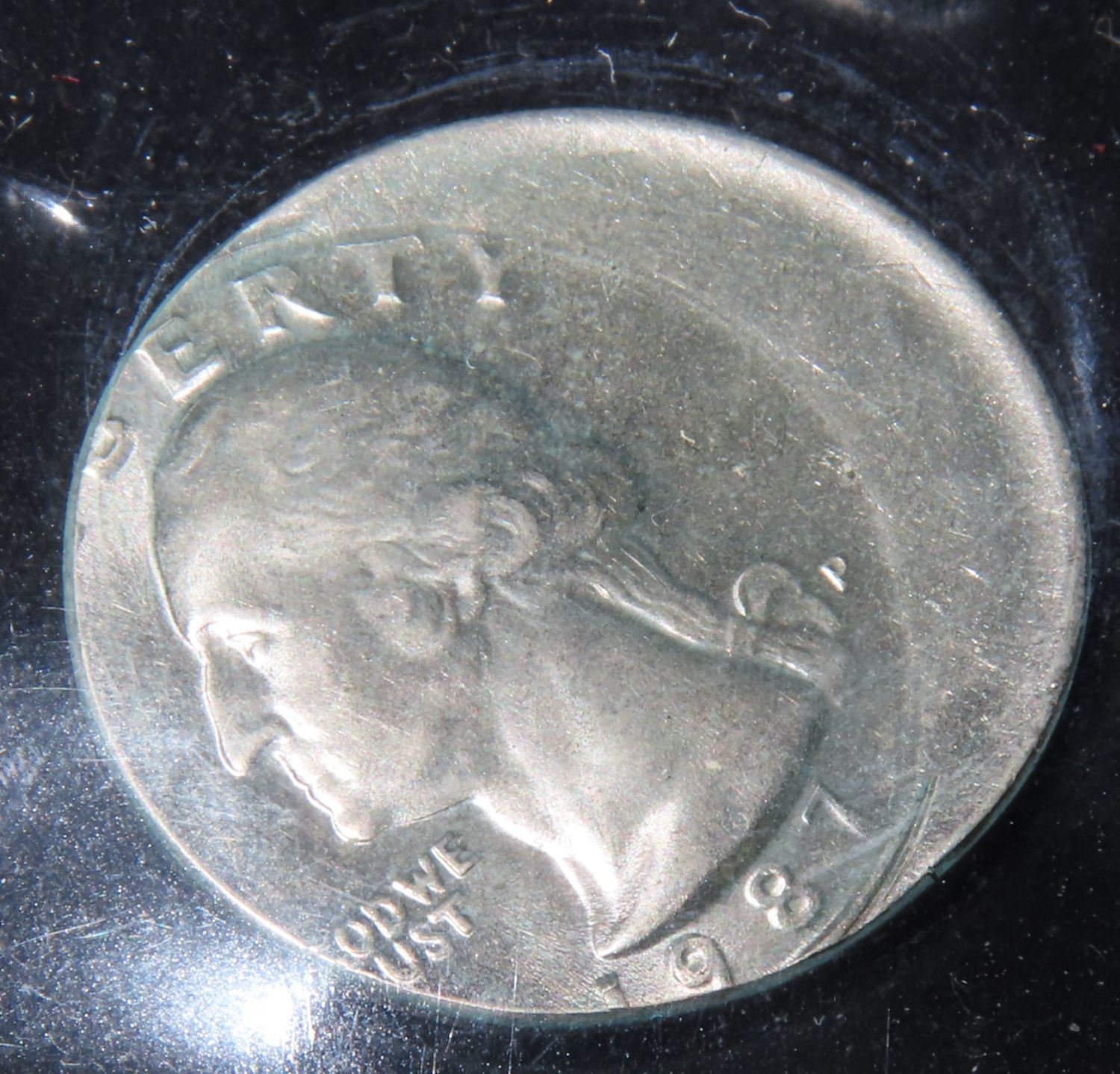 1987-P United States of America Quarter with Off-center Stamping Defect
