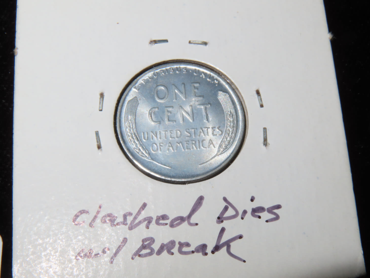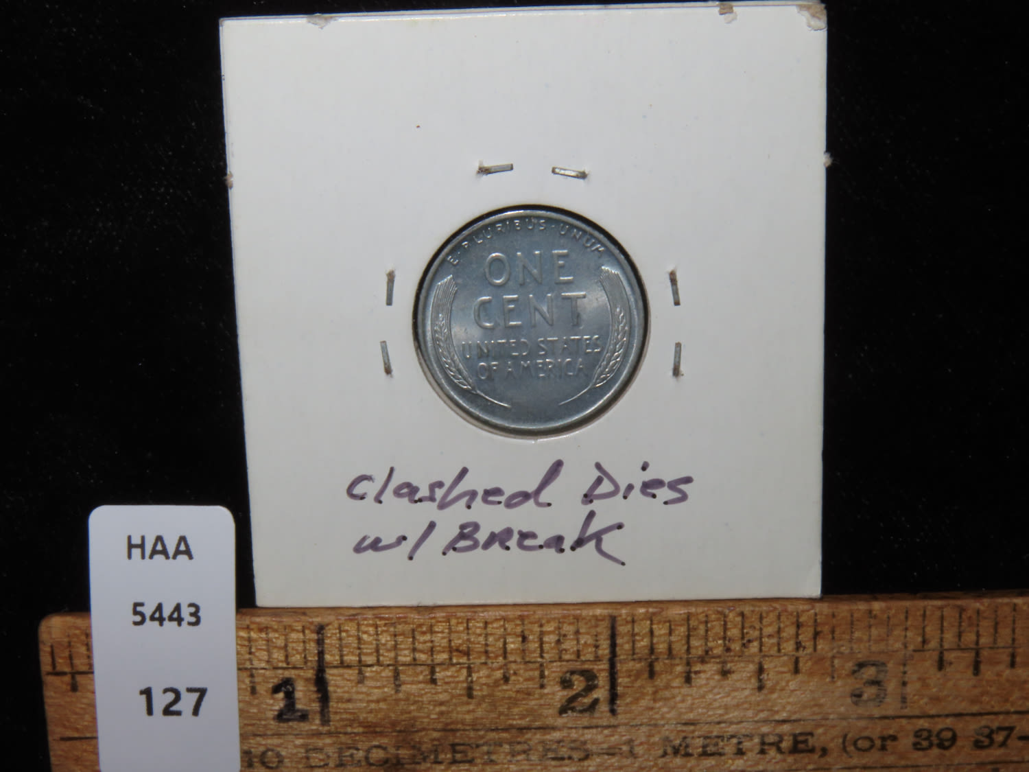 1943 United States of America Steel Wheat Penny with Clashed Dies/Die Break