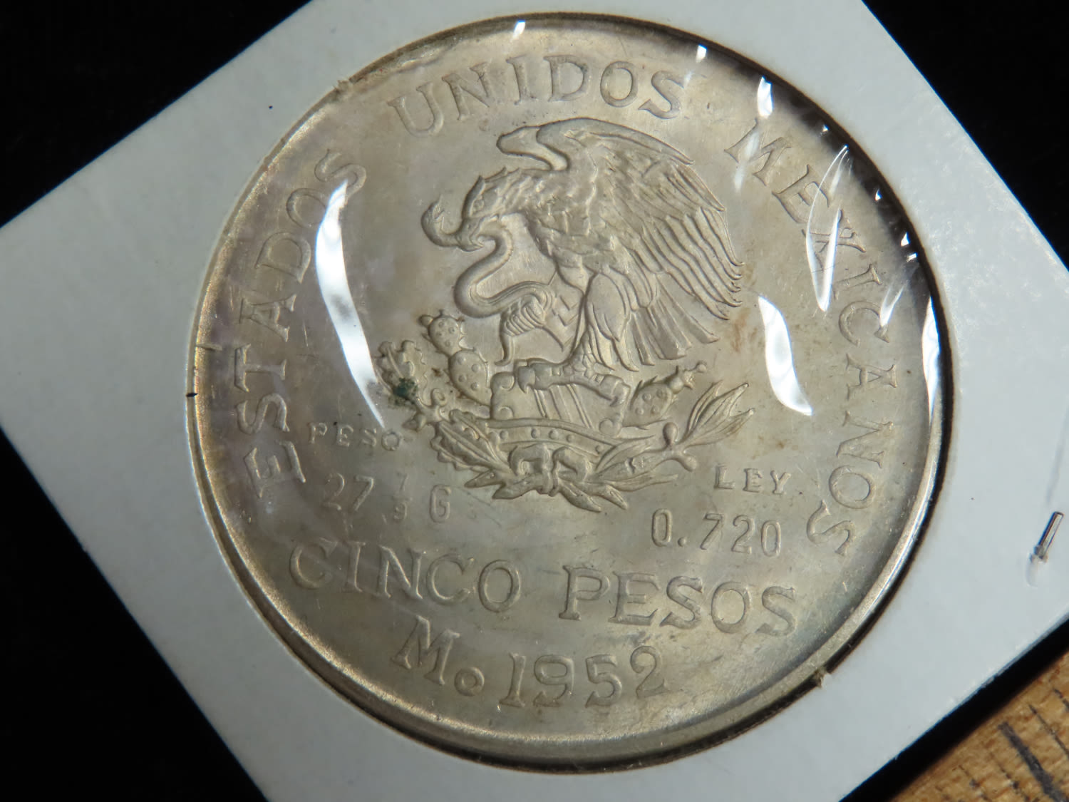 1952 Mexican Silver Cinco(5) Pesos Coin