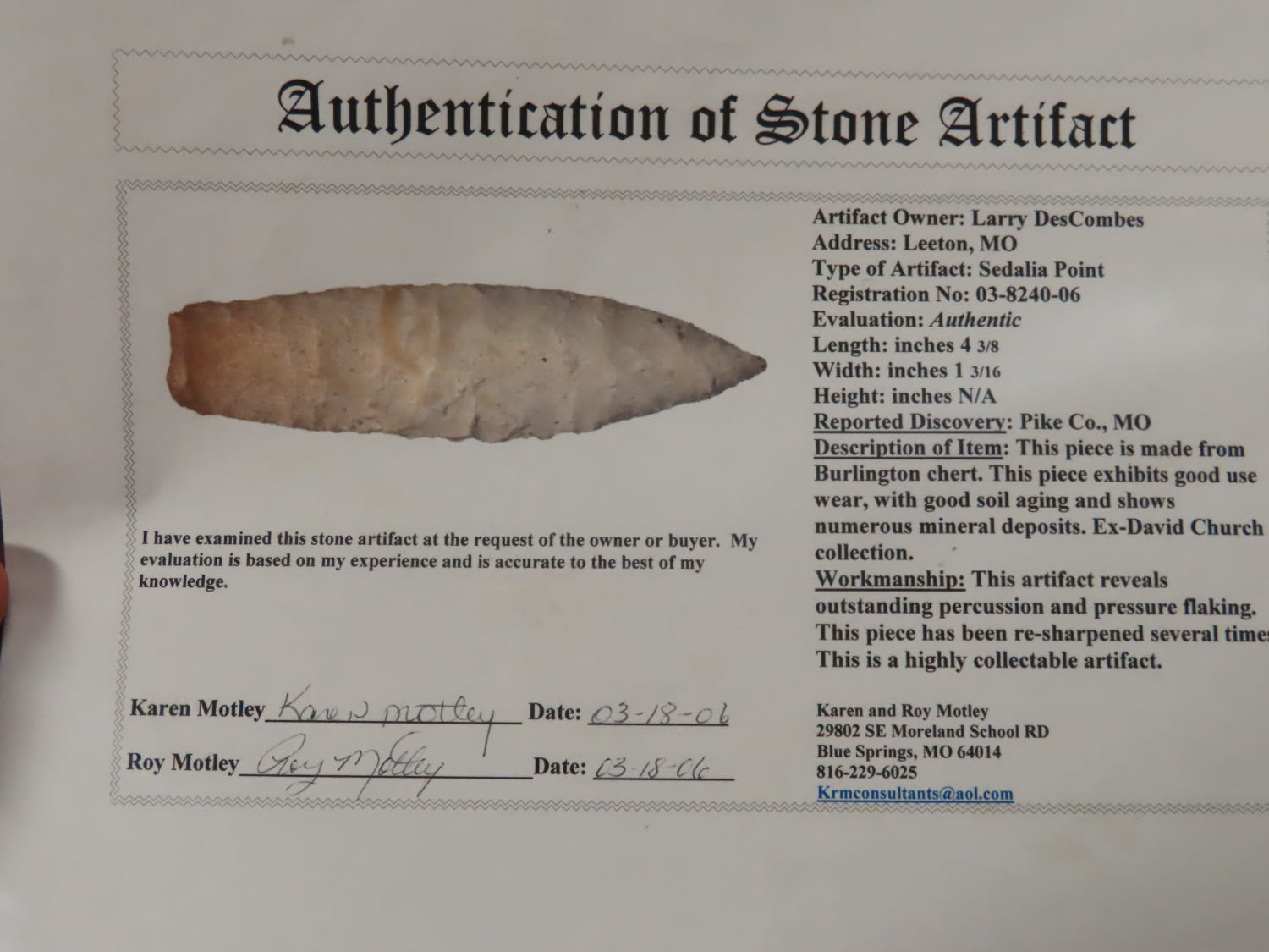 Classic Sedalia, 4.3/8″, Motley COA, Pike CO MO, Ex David Church and Brad Simmerson
