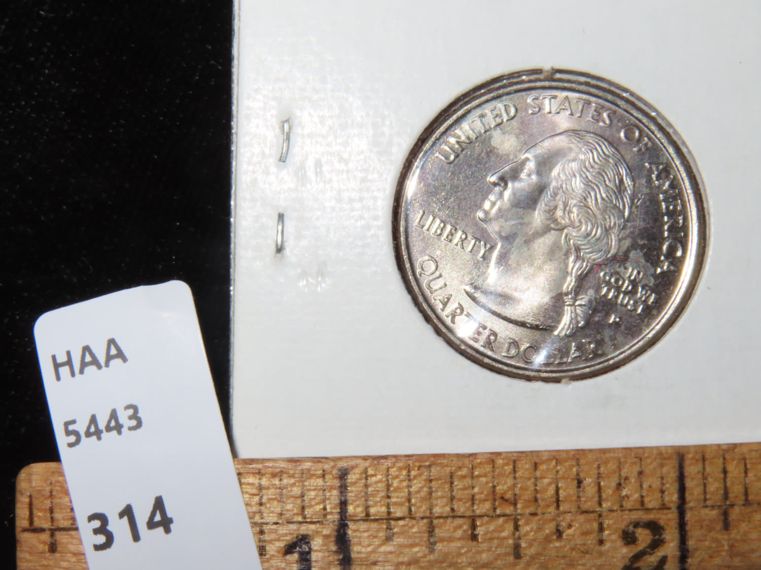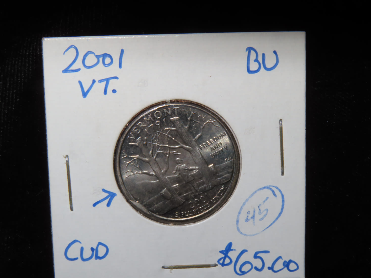 2011 United States of America Vermont State Quarter, Rim Cud- A cud on a coin is a damaged area resembling a blob on the surface of a coin. The cud is raised above the field, obliterating the device or inscription where it appears. Cuds result from die c
