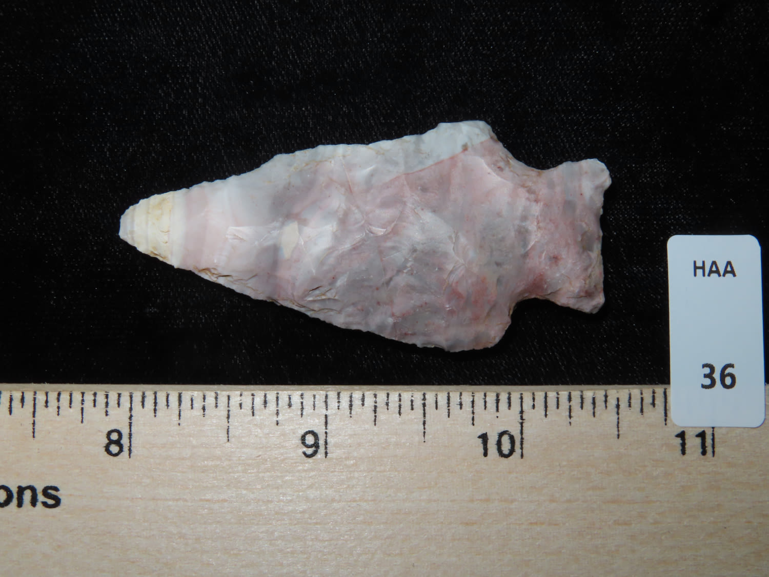 2.1/2" Johnson Point< nice colorful heat treated mozarkite. Found in Miller County Missouri by Terry Jeffries, Ex Brad Simmerson