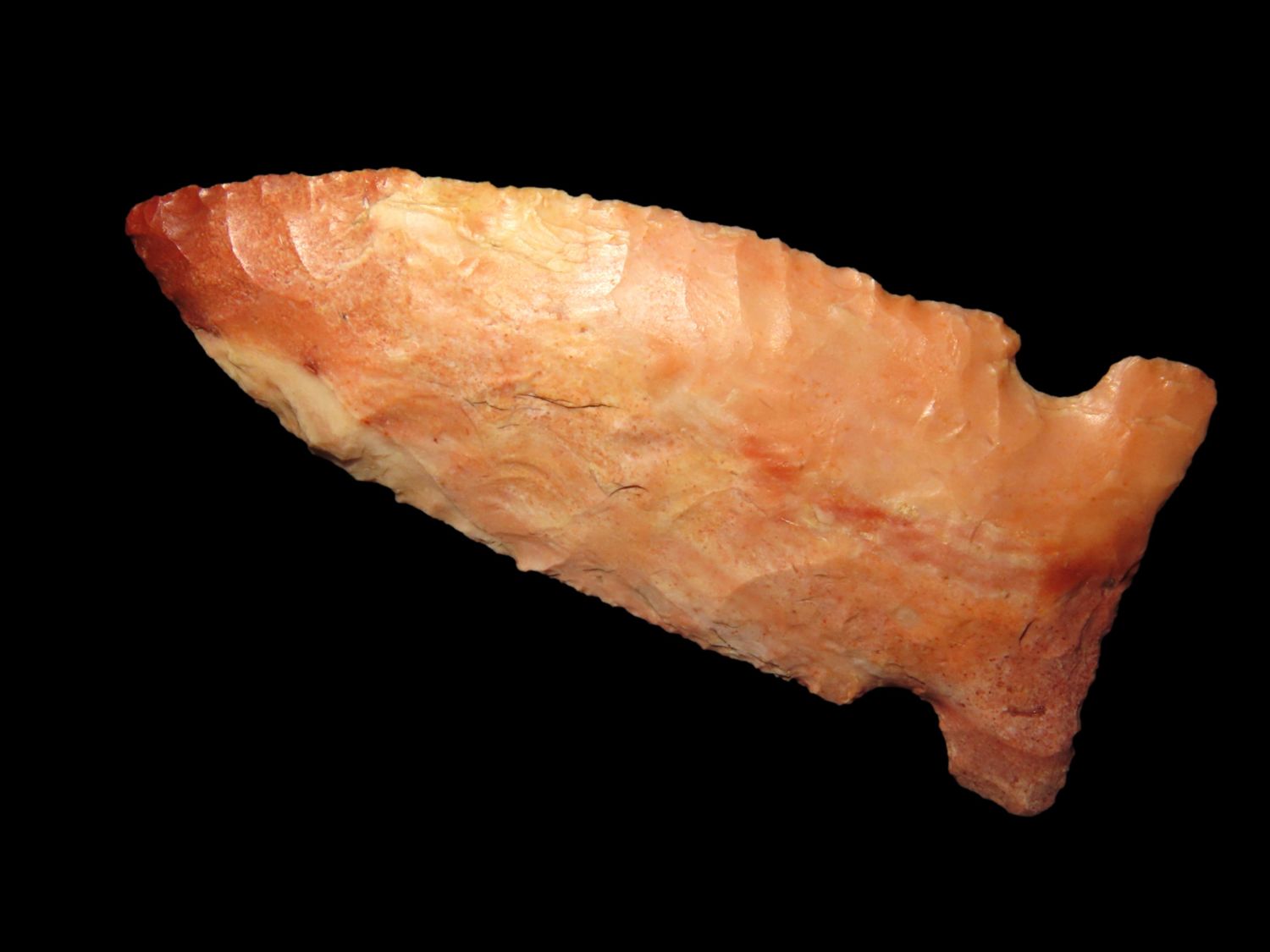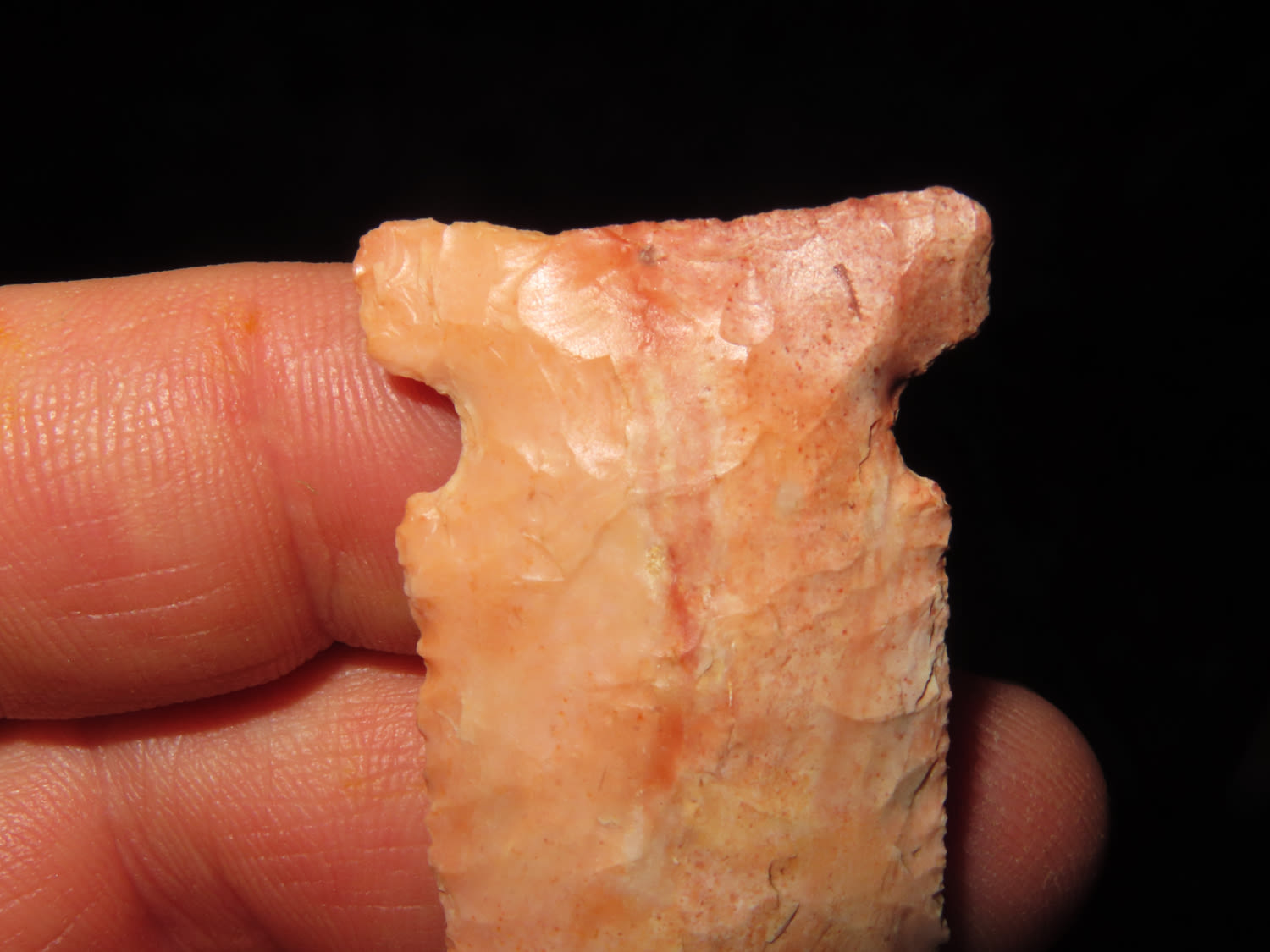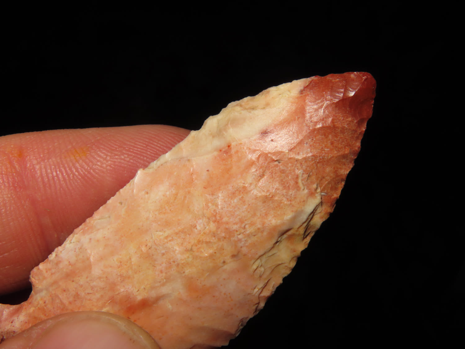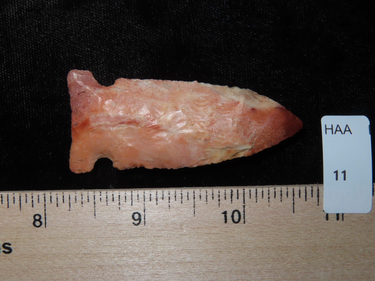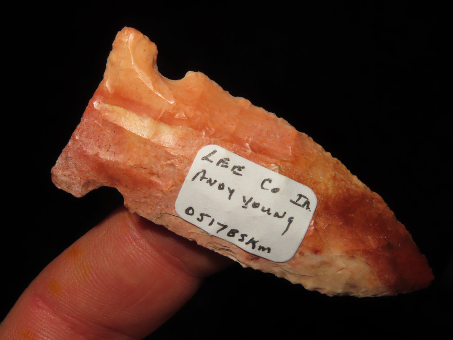 2.5/16″ Super Fine Robinson, Very Nice with great color, Found in Lee Co IA by Andy Young, Ex Dennis DeRosear, Ex Jake Vahle Coll. These are points out of Jake’s smalls frame which he found intriguing over the years.