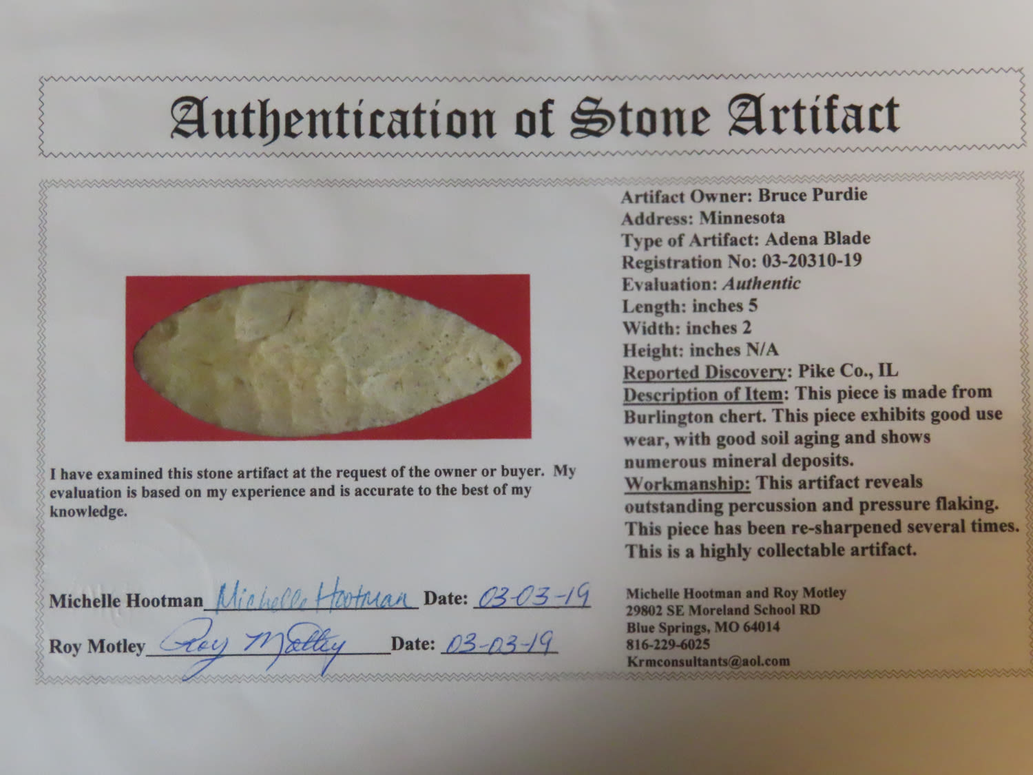 5″ Adena Blade, Motley COA, found in Pike Co., Illinois, Ex Bruce Purdie Collection