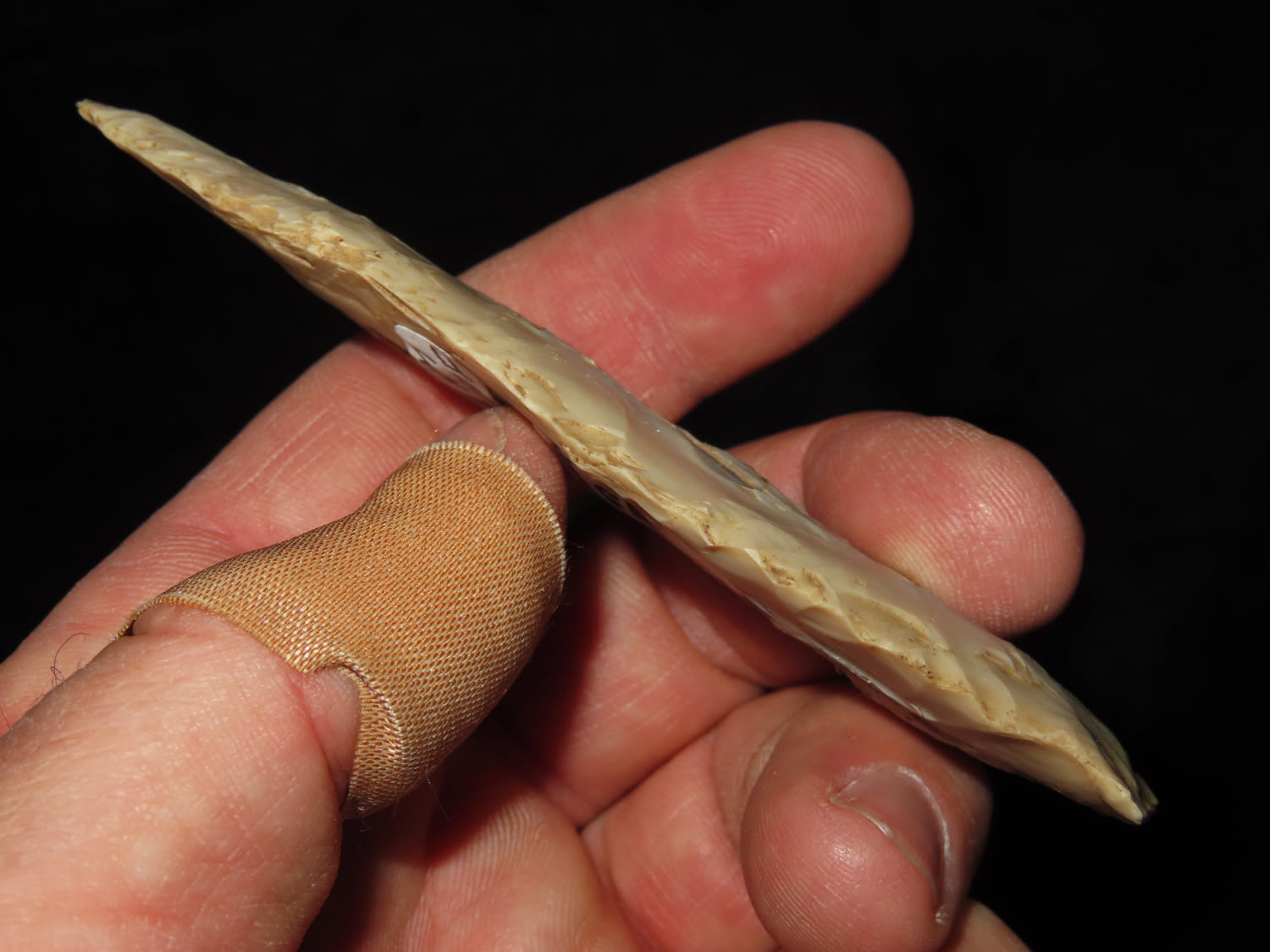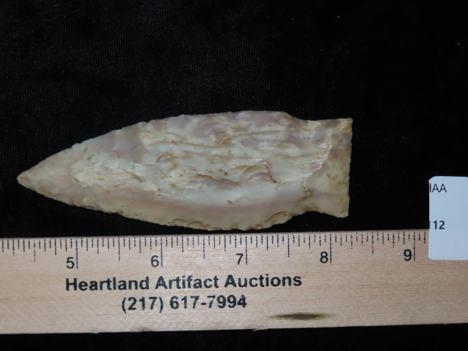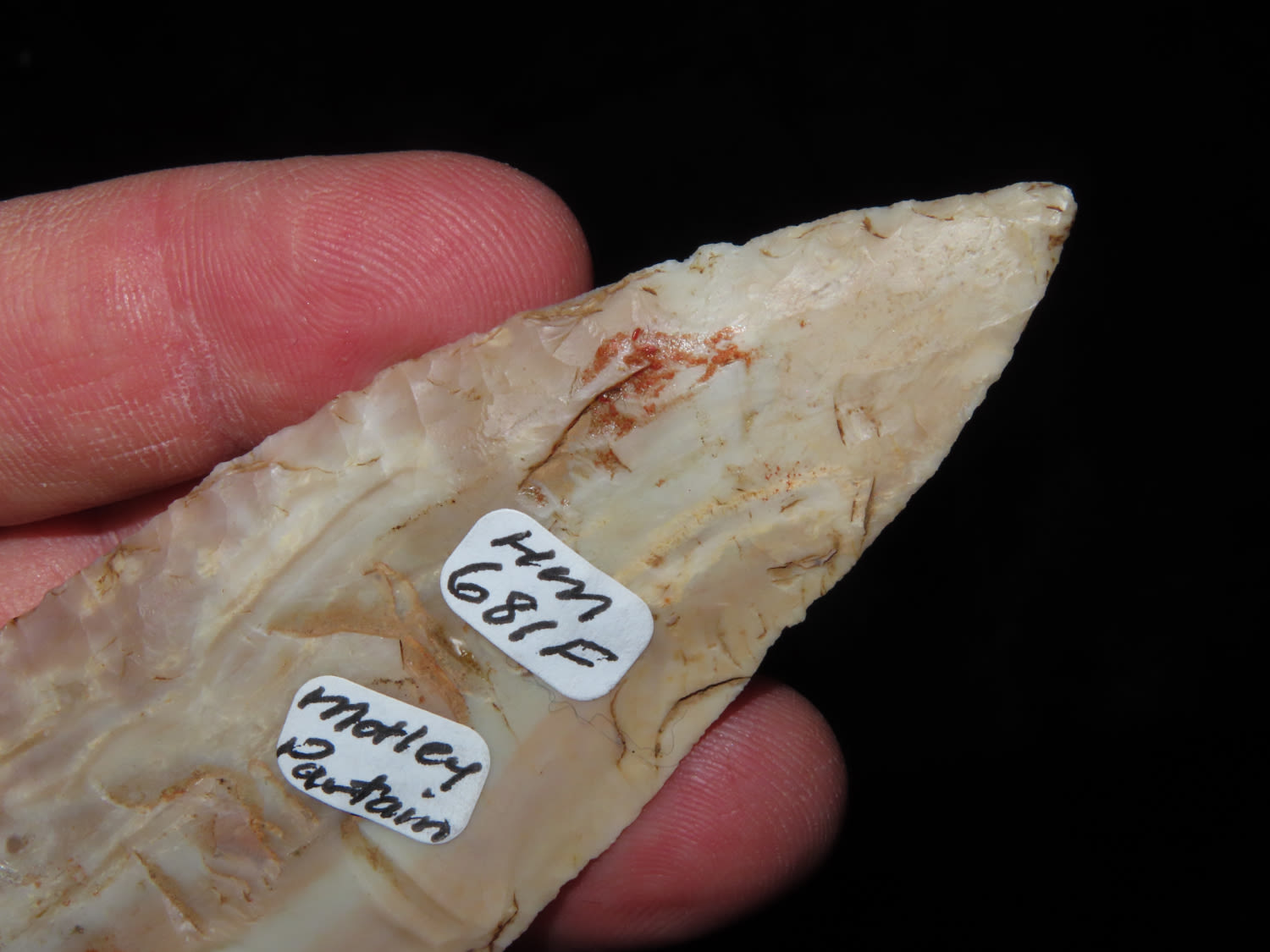 4″ Rice Side Notched Point, 2x COA- Partain/Motley- Made of Crowley’s Ridge Chert, found in Randolph Co., Arkansas by Roy Lynn Hutchison, Ex Ken Partain Collection