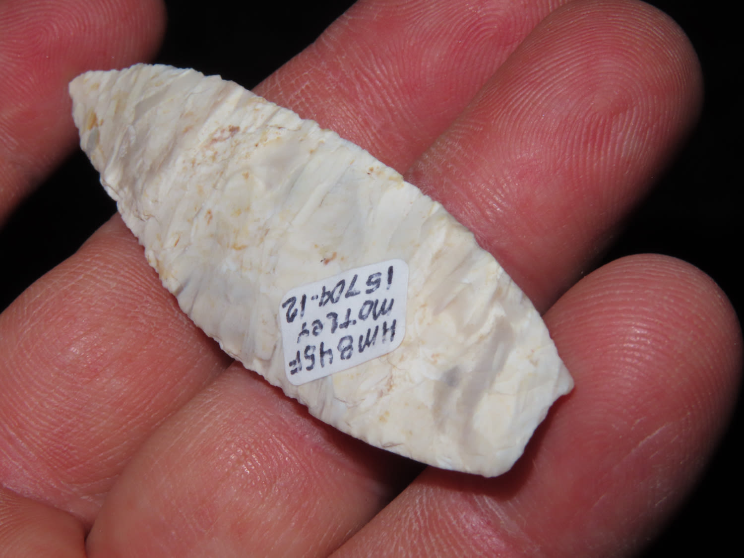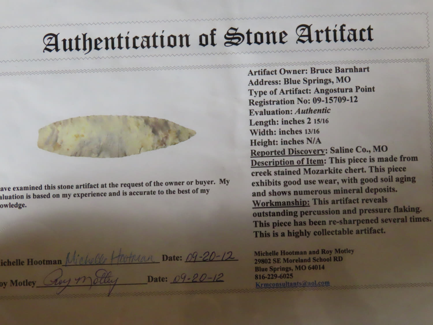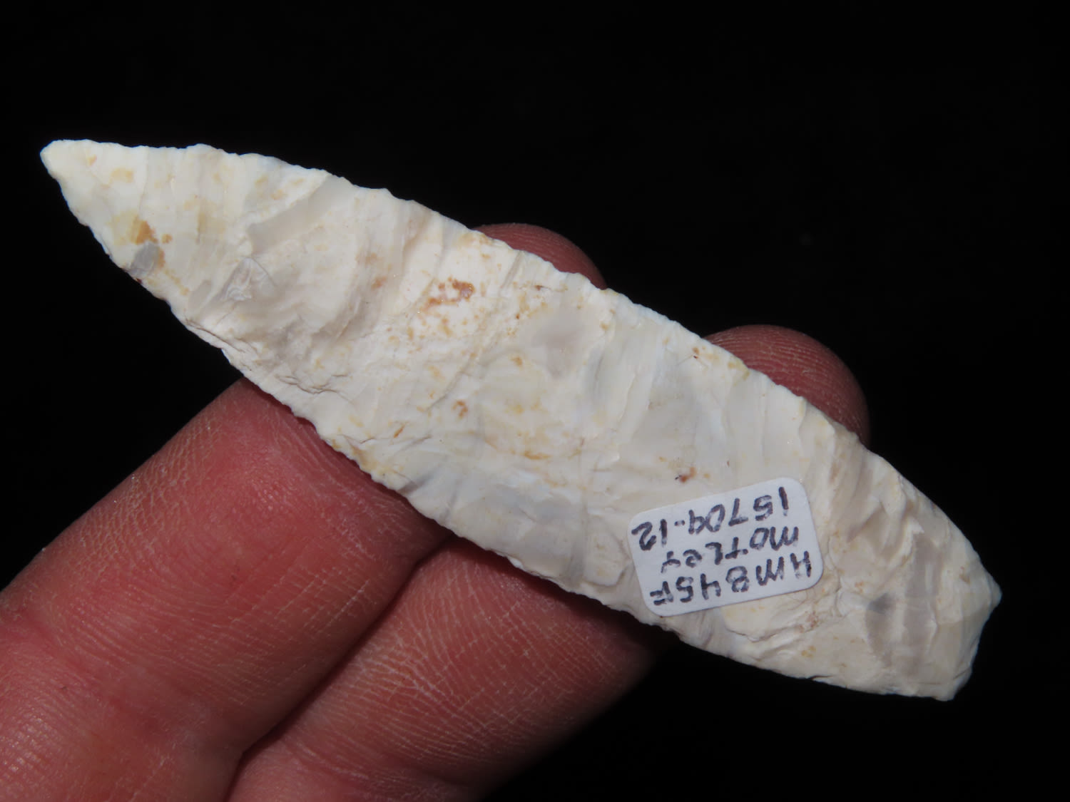 2 15/16″ Angostura Point, Motley COA, made of Mozarkite, found in Saline Co., Missouri, Ex Bruce Barnhart Collection