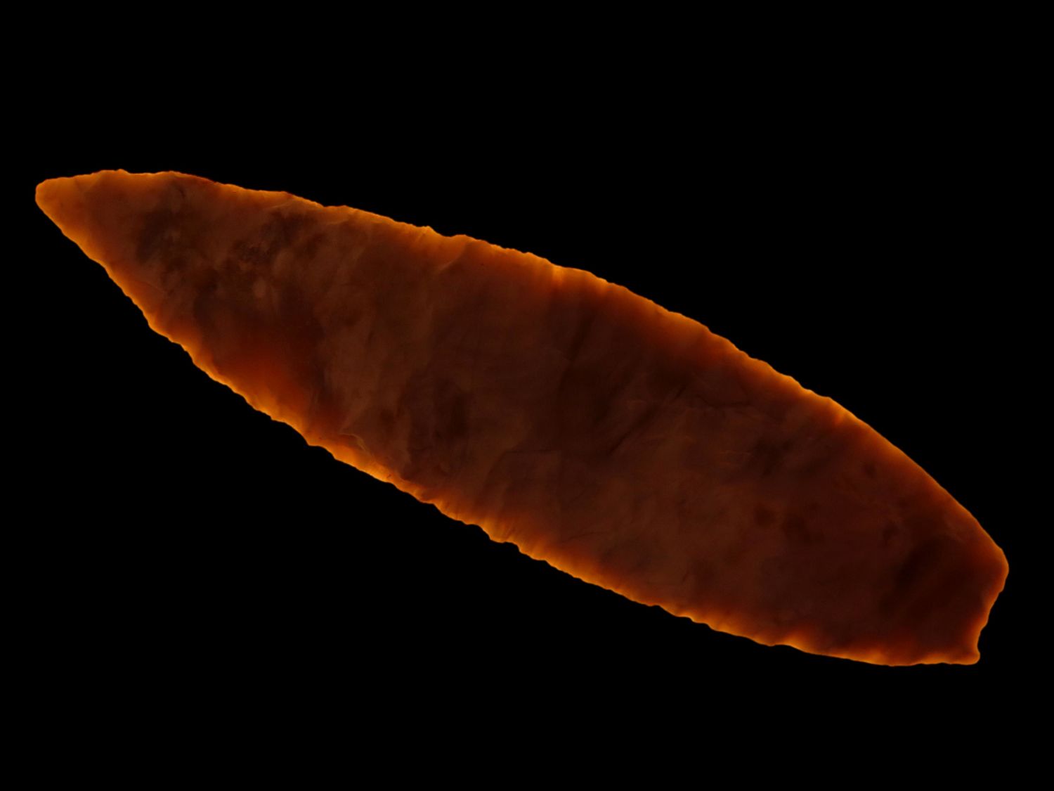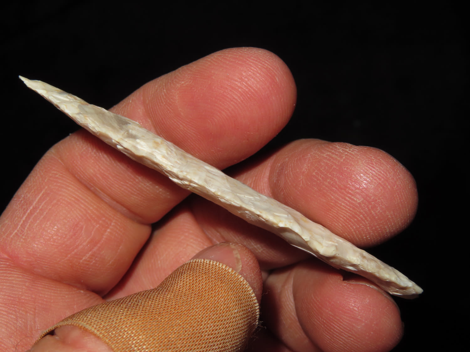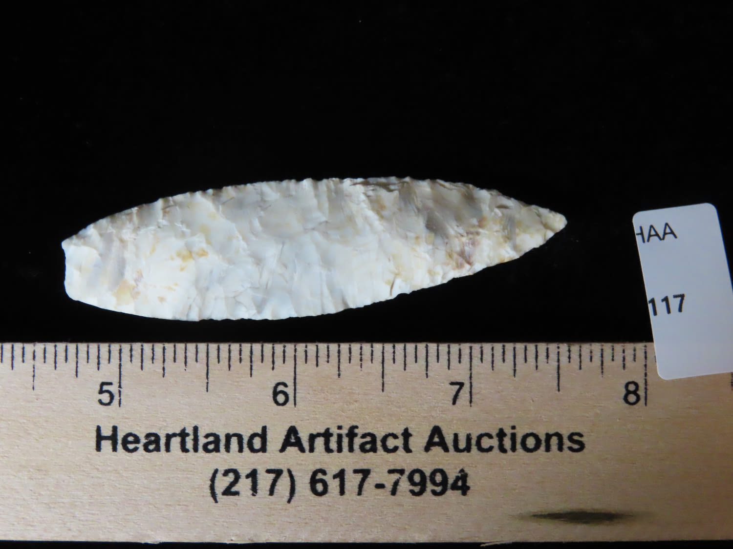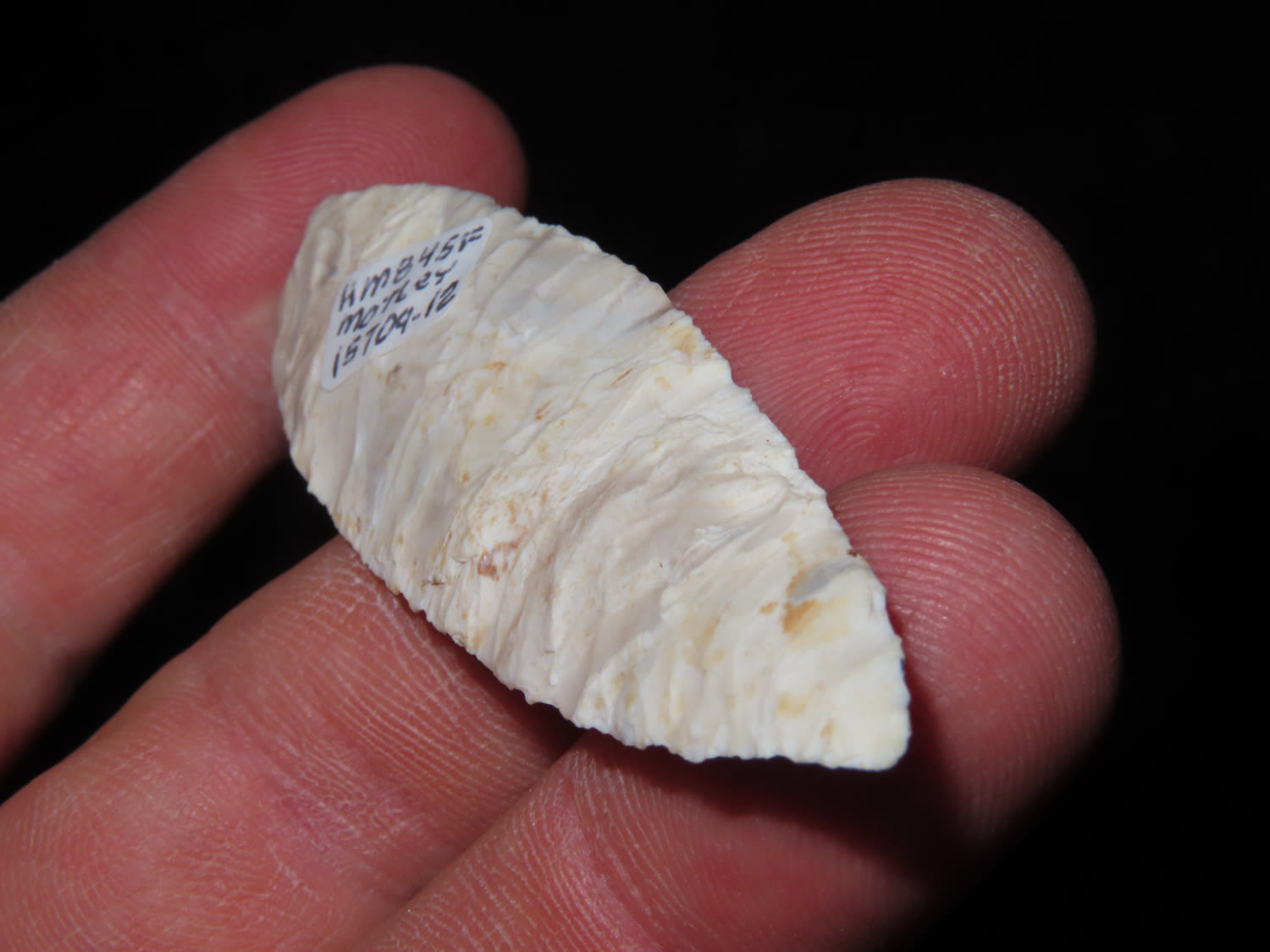2 15/16″ Angostura Point, Motley COA, made of Mozarkite, found in Saline Co., Missouri, Ex Bruce Barnhart Collection