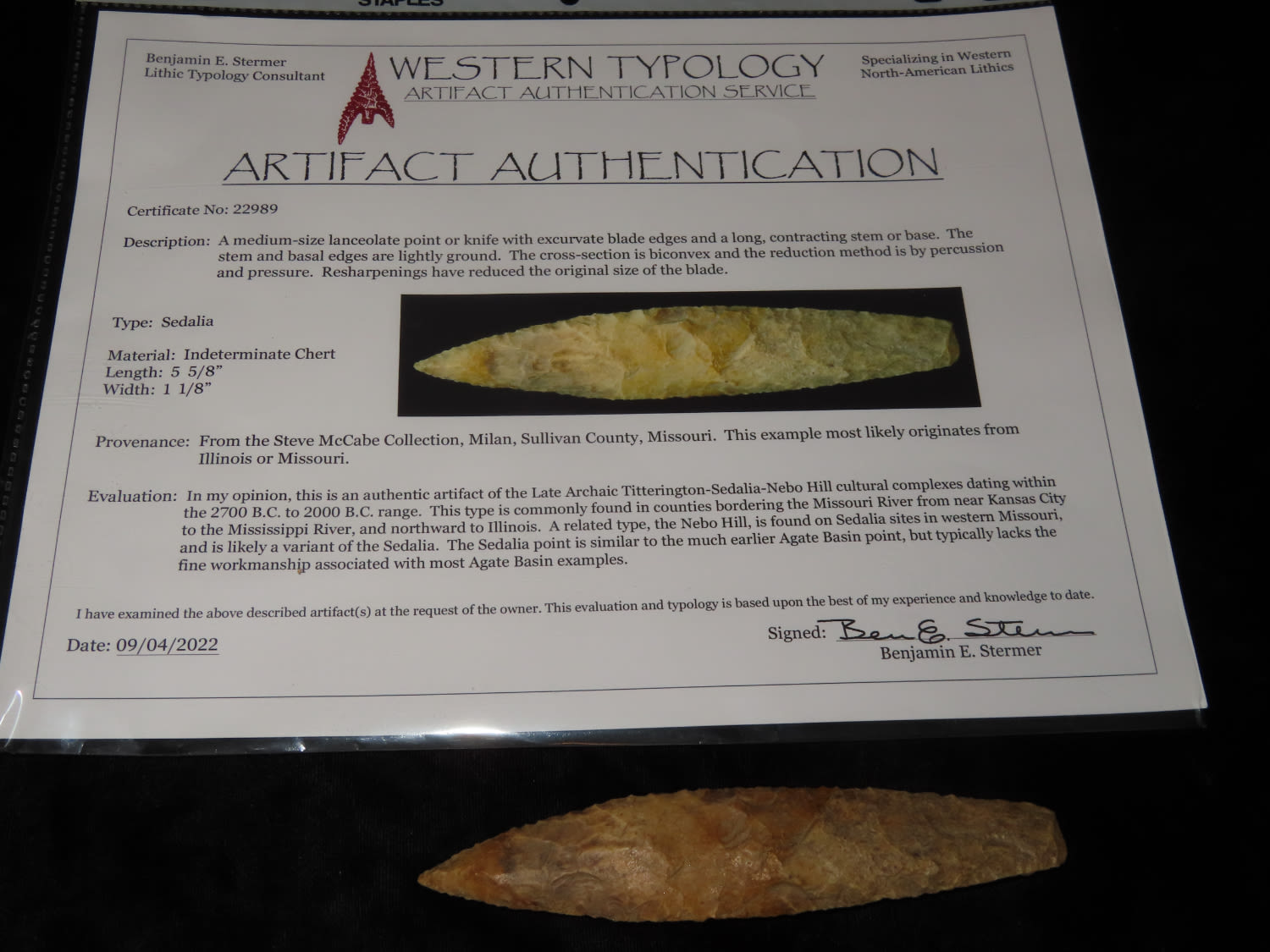 5 5/8″ Sedalia, Stermer COA, Ex Steve McCabe, Sullivan Co., Missouri