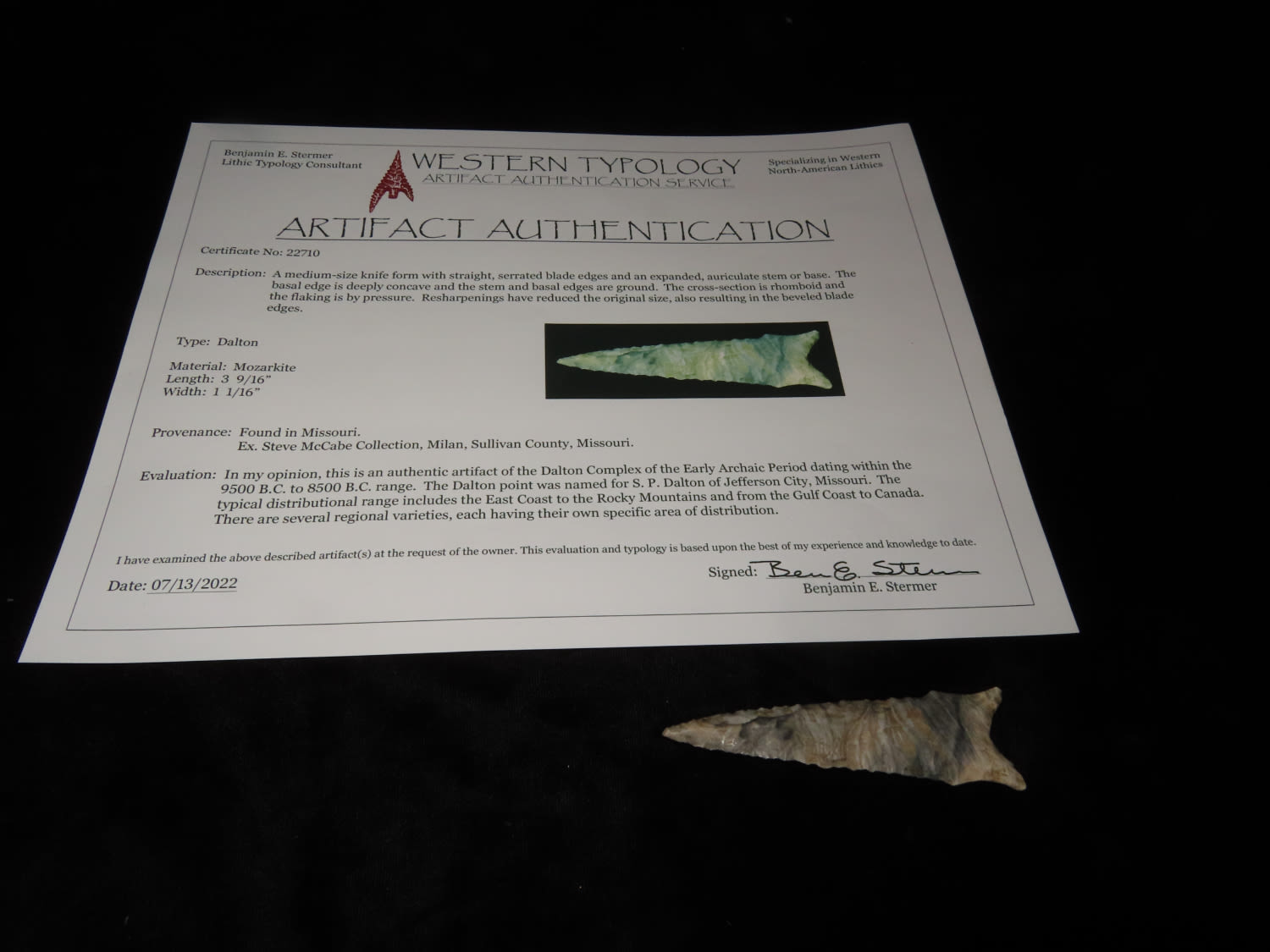 3 9/16″ GORGEOUS COLOR Dalton, Stermer COA, made of Mozarkite, Ex Steve McCabe, Sullivan Co., Missouri
