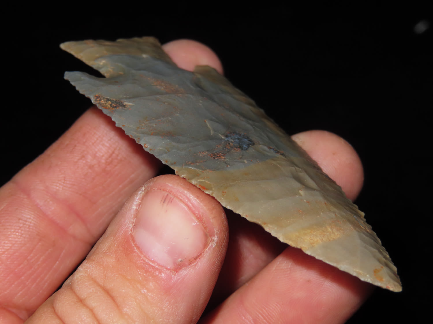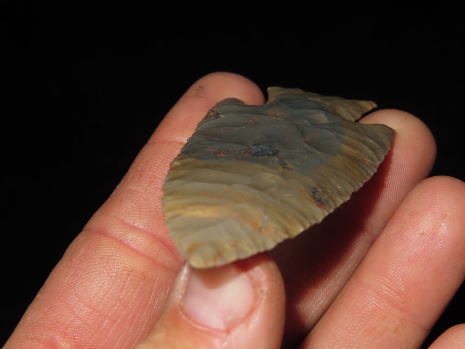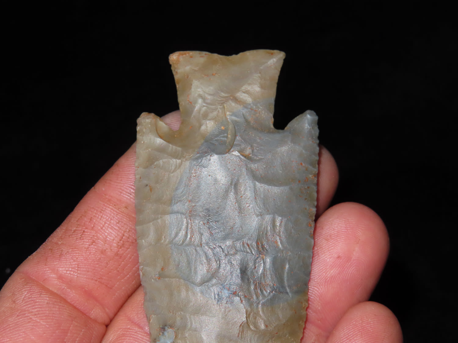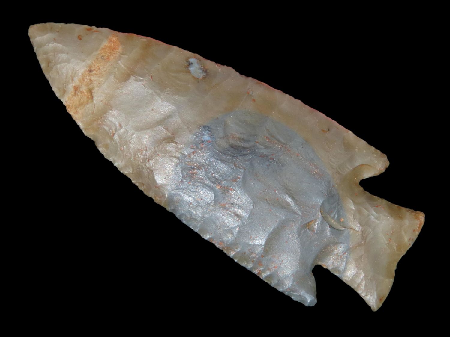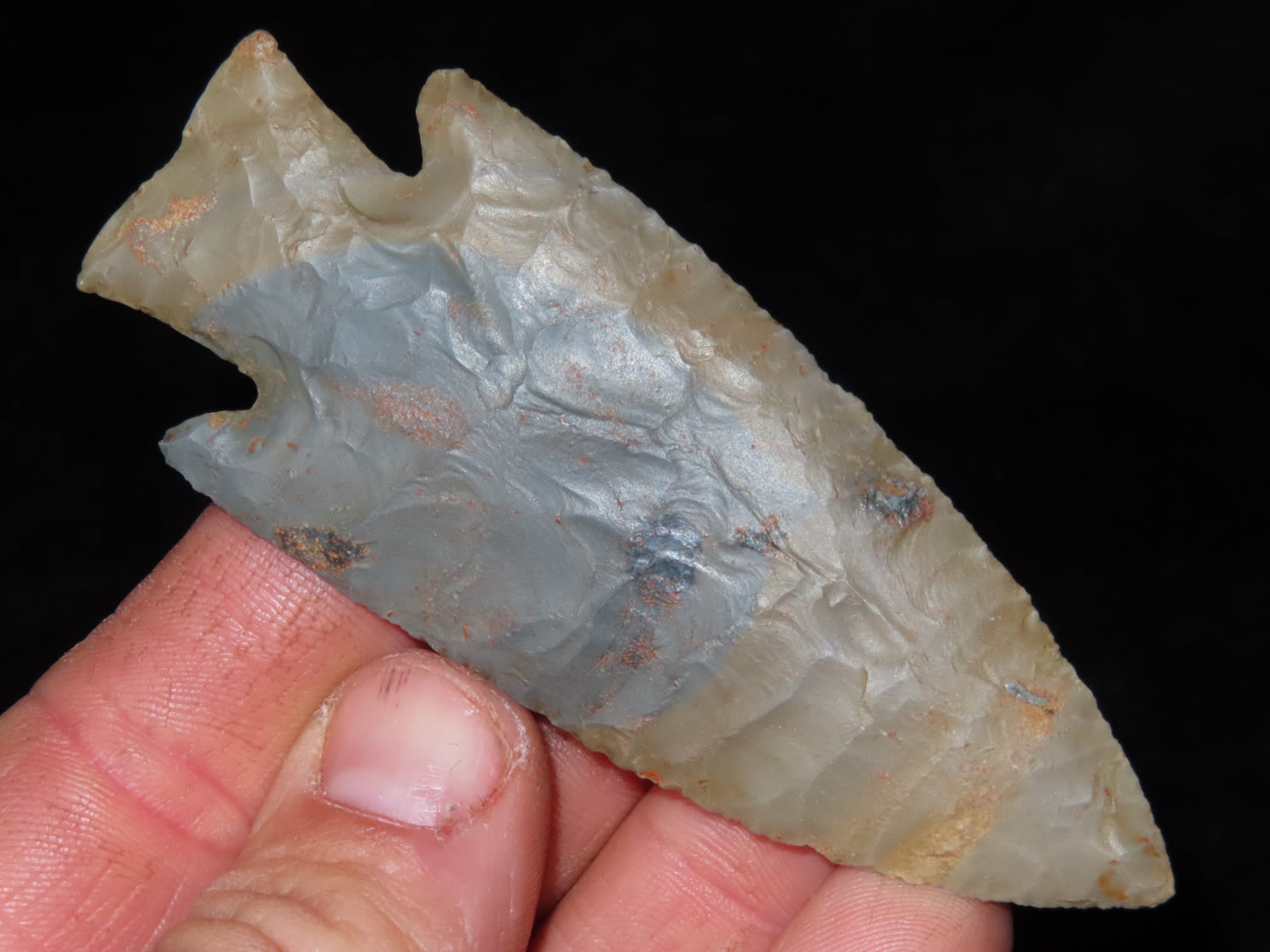 3 5/8″ Hardin Barbed, Motley COA, found in Union Co., Illinois-Made of Super Colorful Cobden Chert