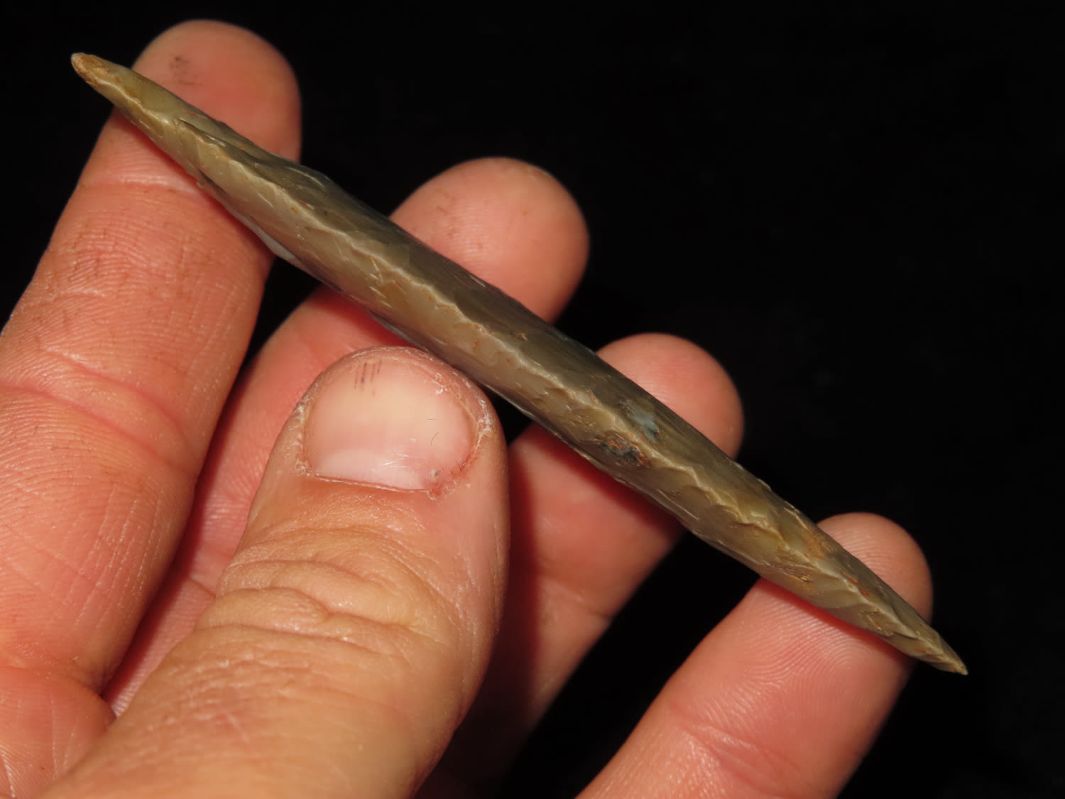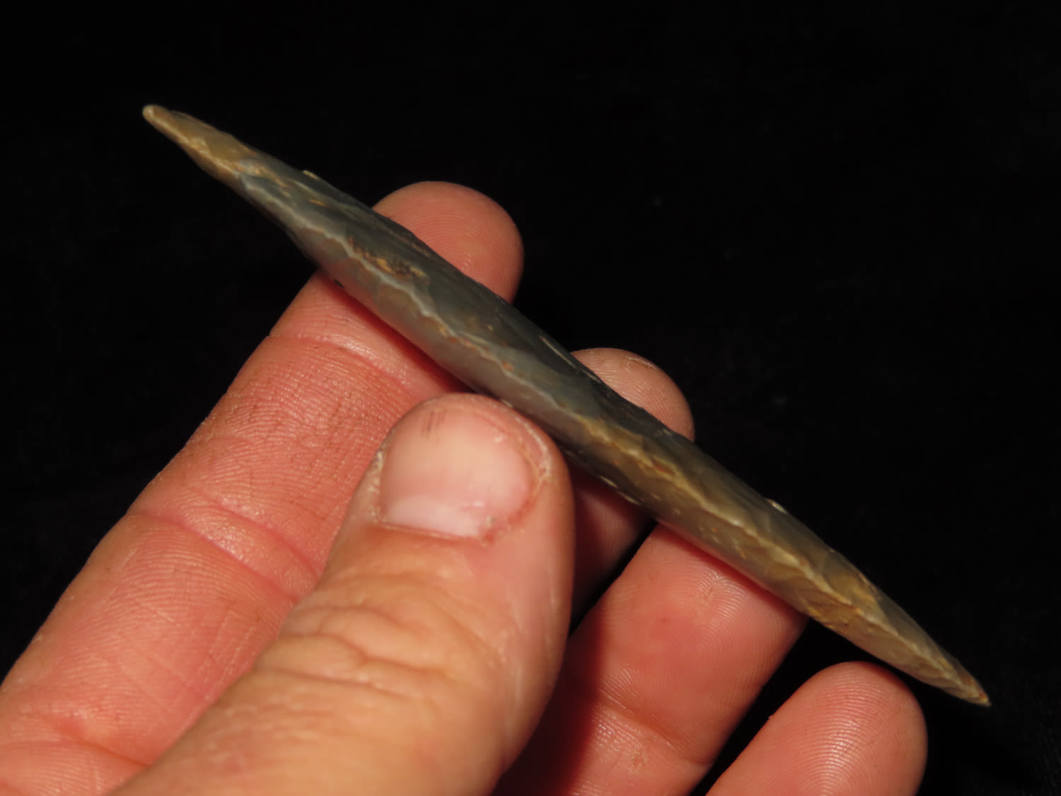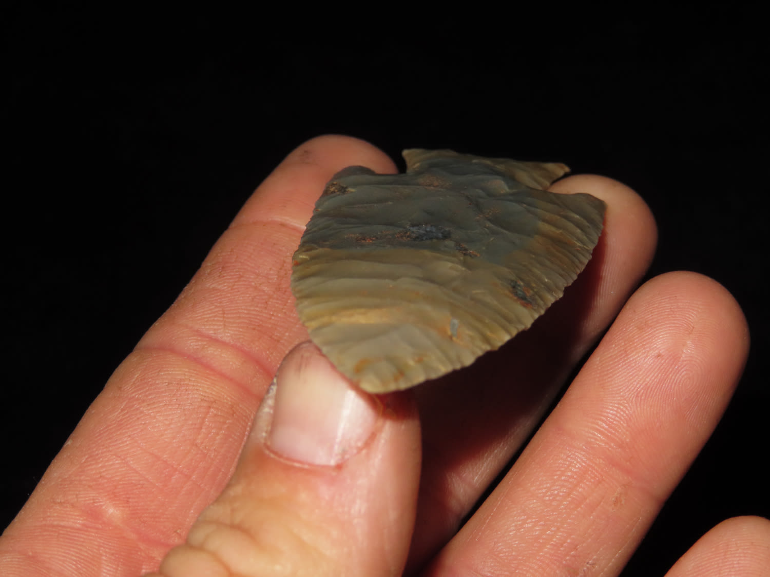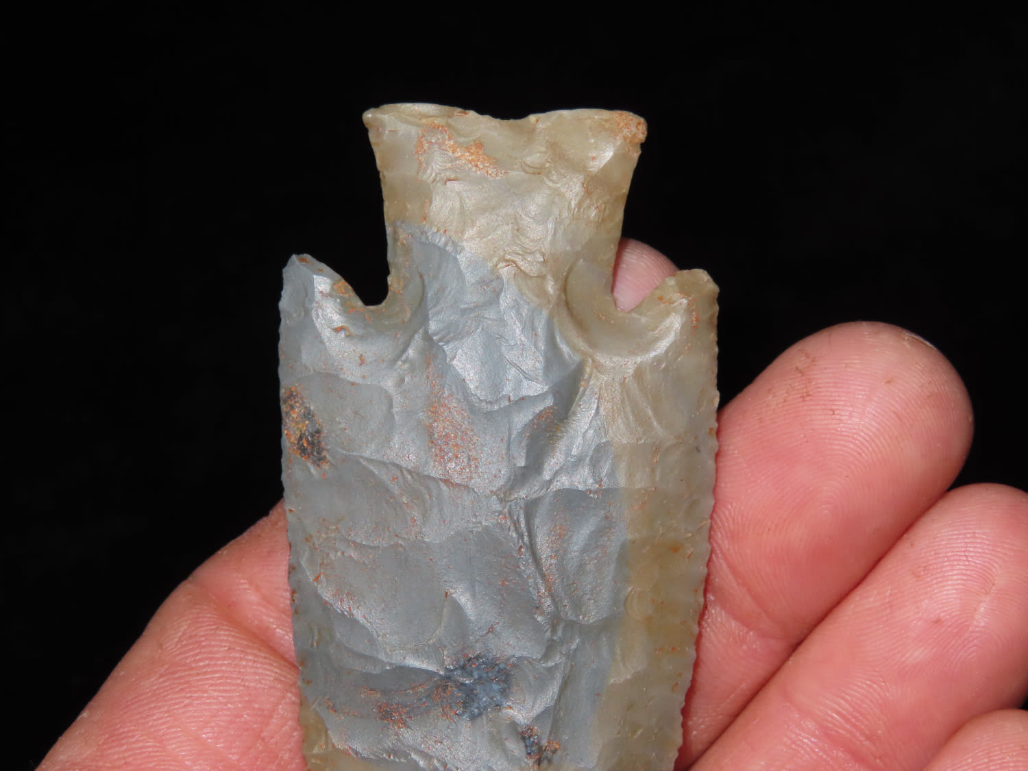 3 5/8″ Hardin Barbed, Motley COA, found in Union Co., Illinois-Made of Super Colorful Cobden Chert