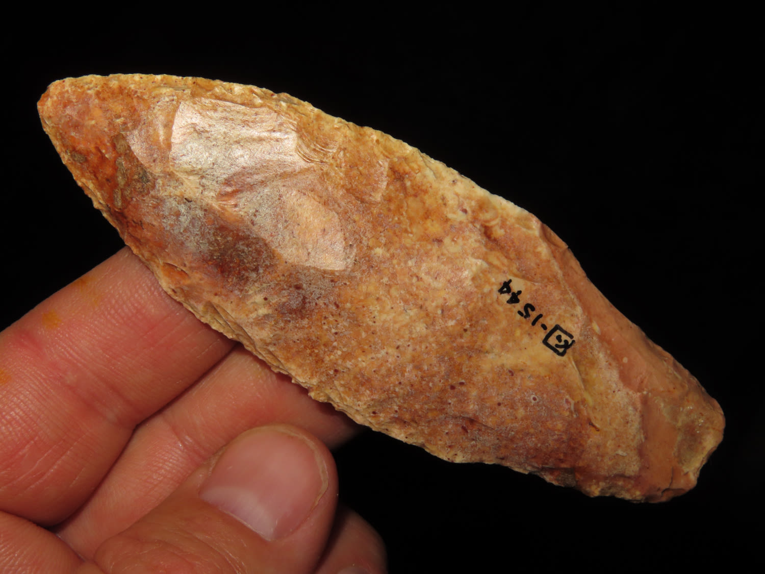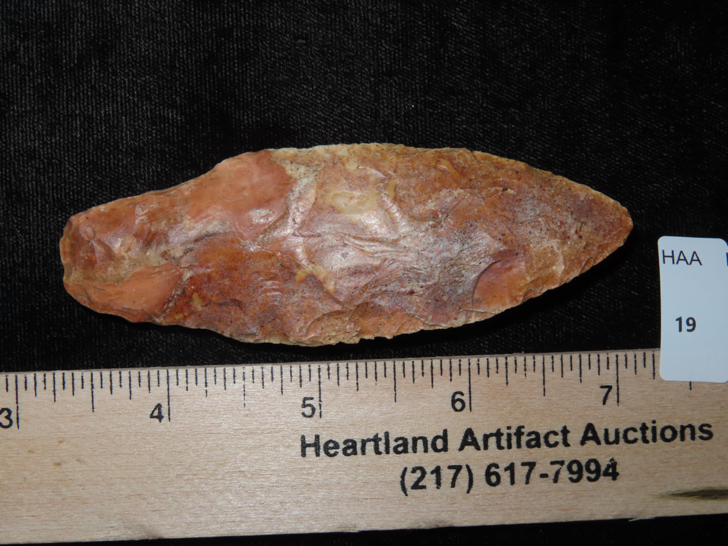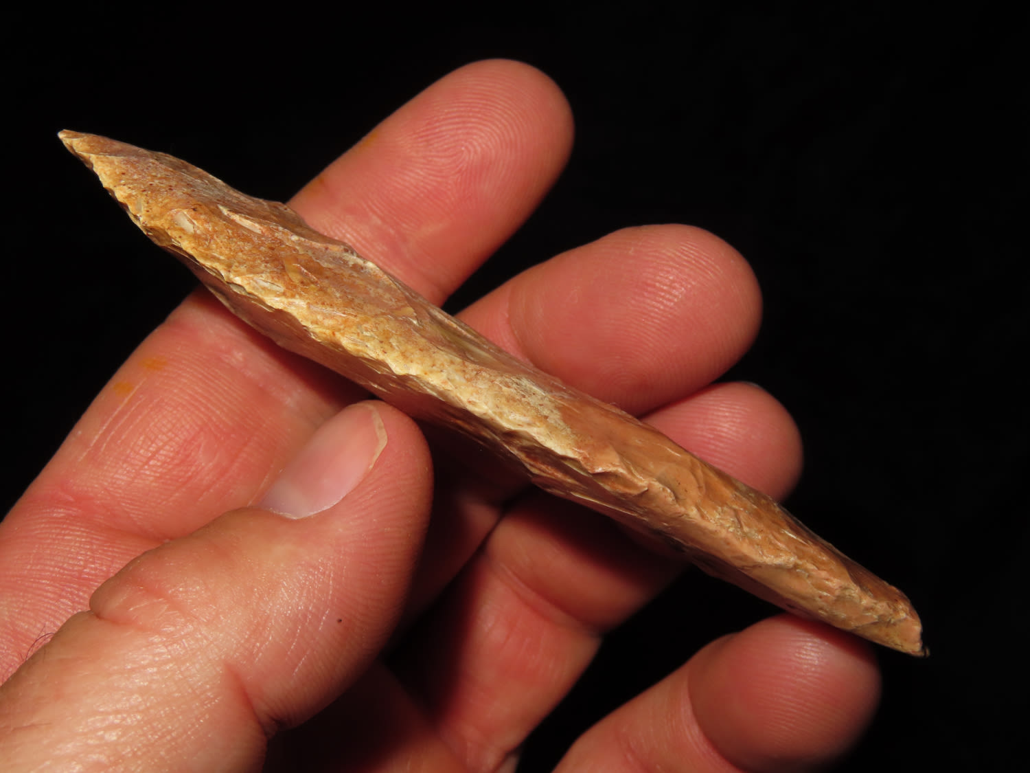 3.13/16″ Creek Found Adena, IL/MO, Ex Jake Vahle Coll. These are points out of Jake’s smalls frame which he found intriguing over the years.