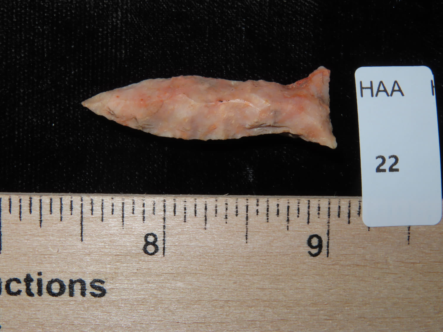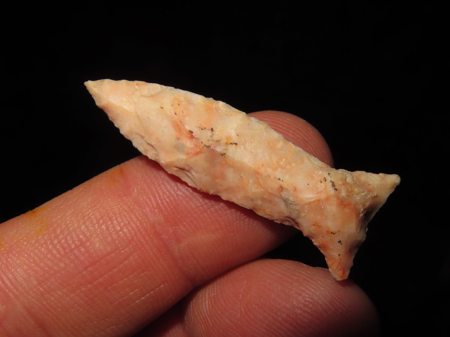 1.1/2″ Very Unique Dart Point, Found by Bud Goodwin in Adams Co IL, Ex Jake Vahle Coll. These are points out of Jake’s smalls frame which he found intriguing over the years.