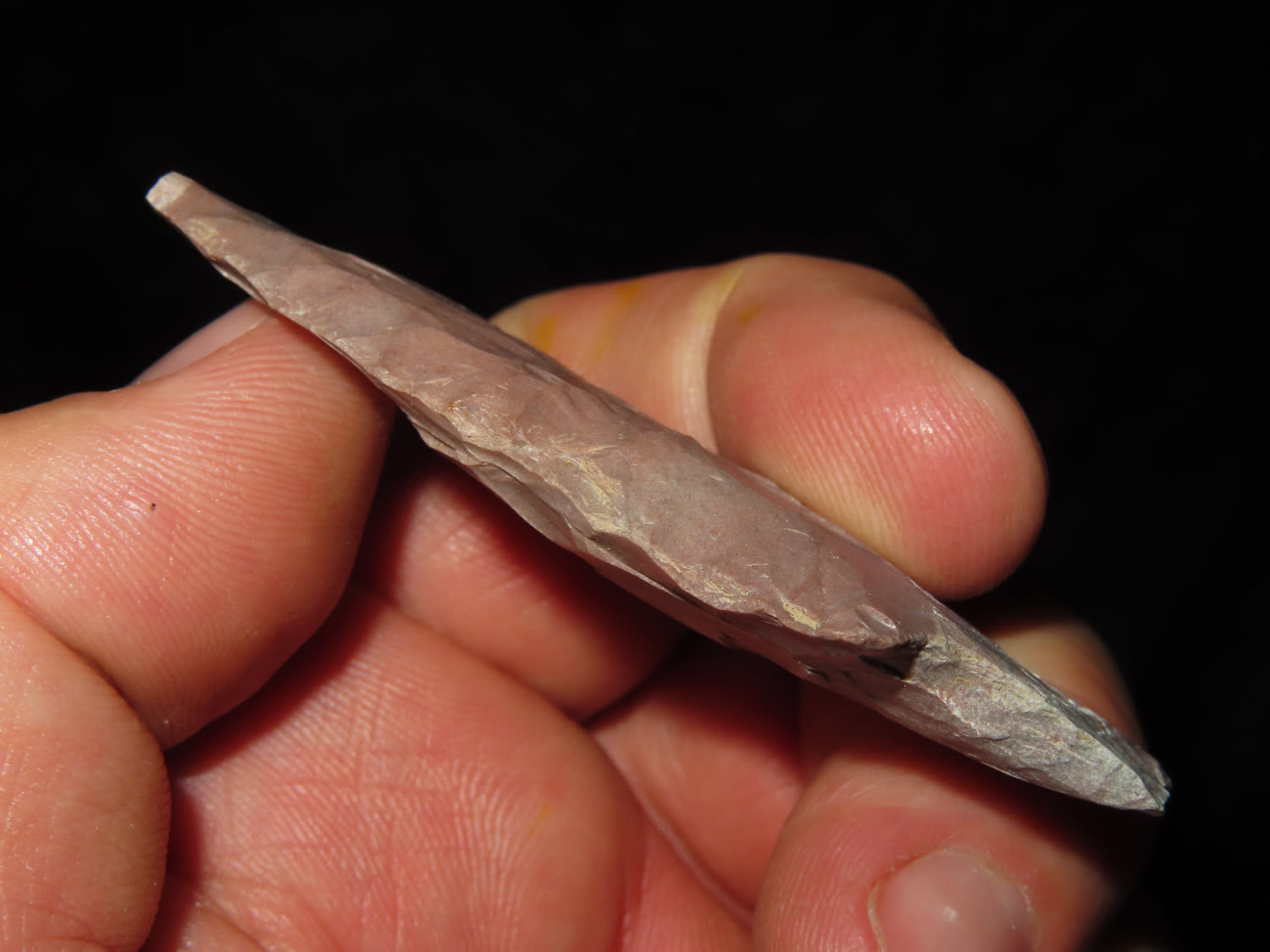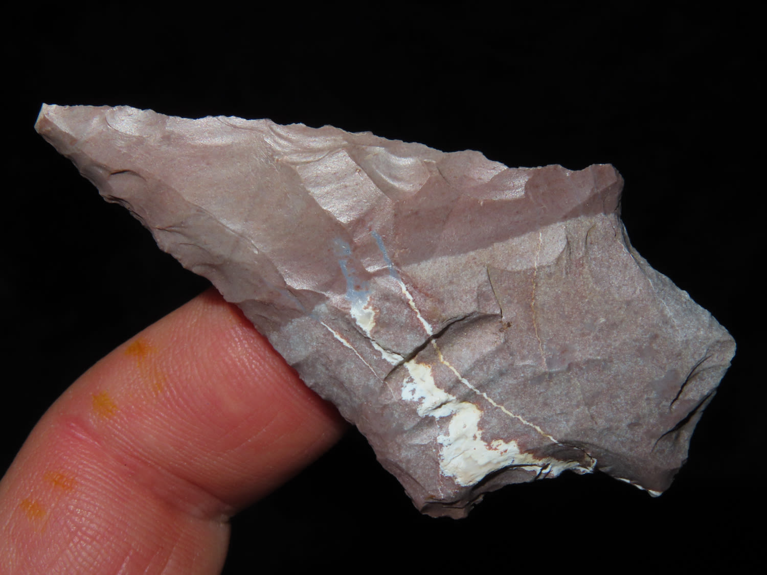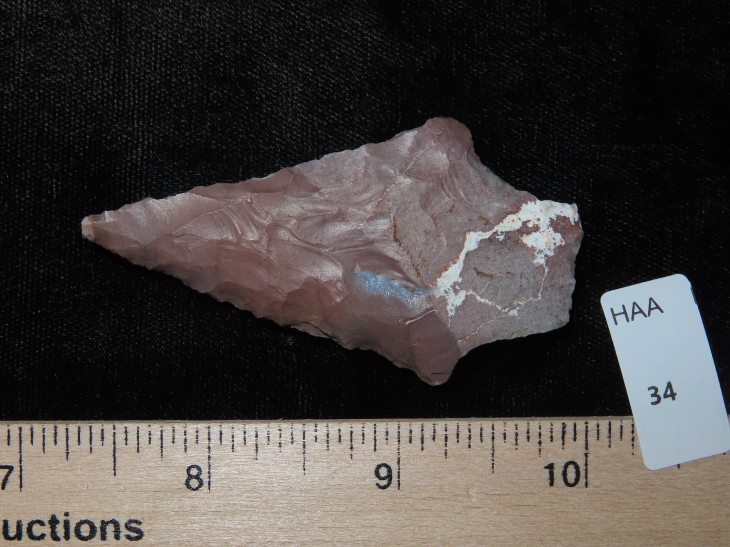 2.5/8″ Chateau Chert Dickson, Beveled, Central Missouri, Ex Jake Vahle Coll. These are points out of Jake’s smalls frame which he found intriguing over the years.