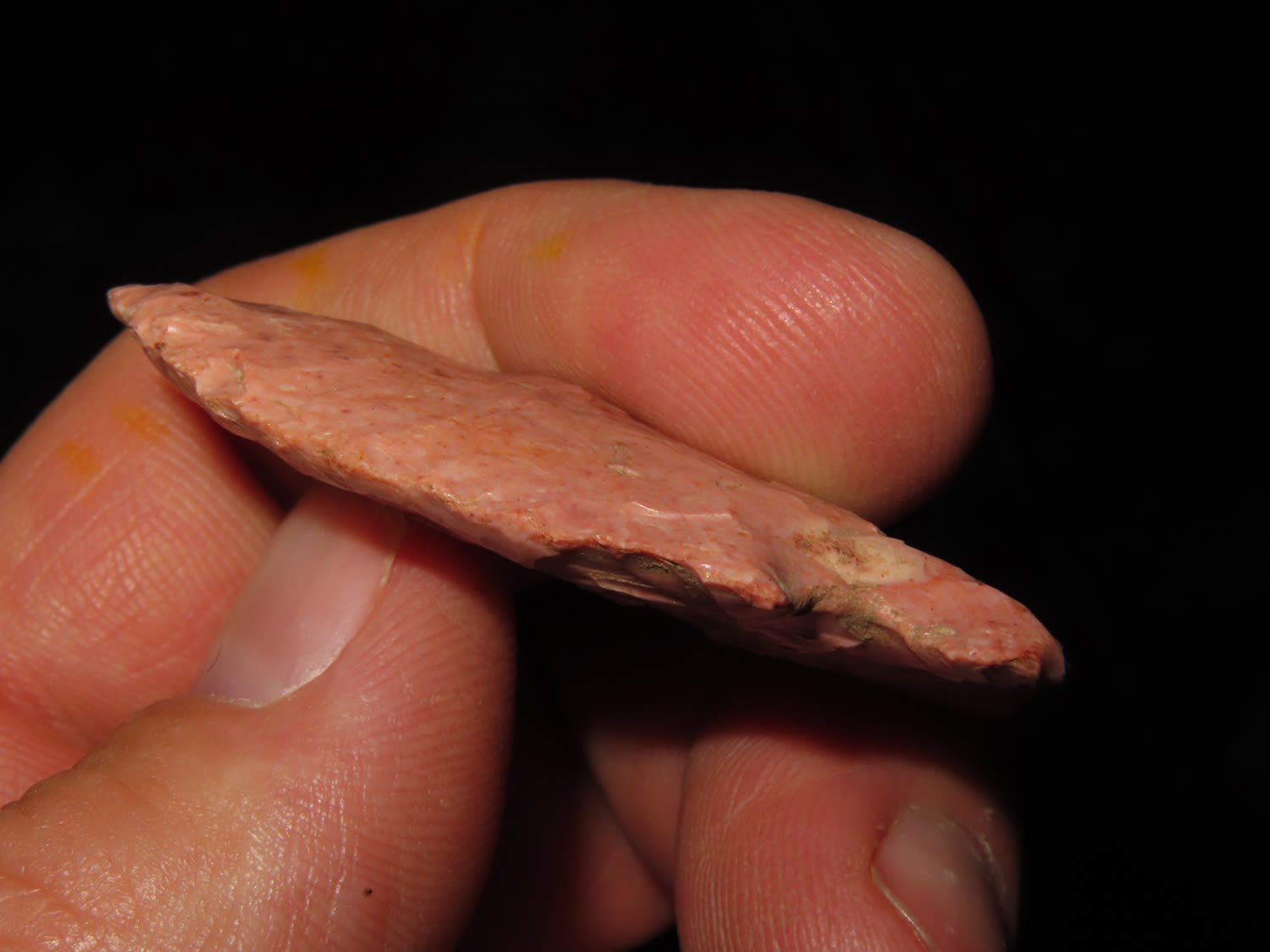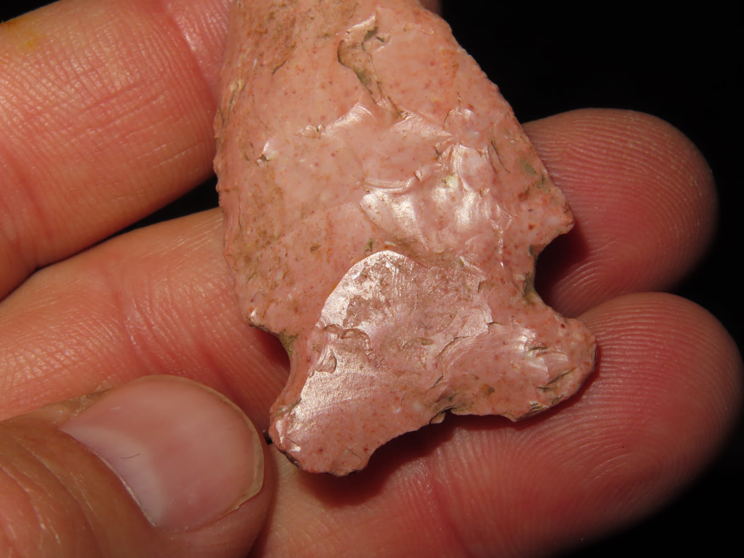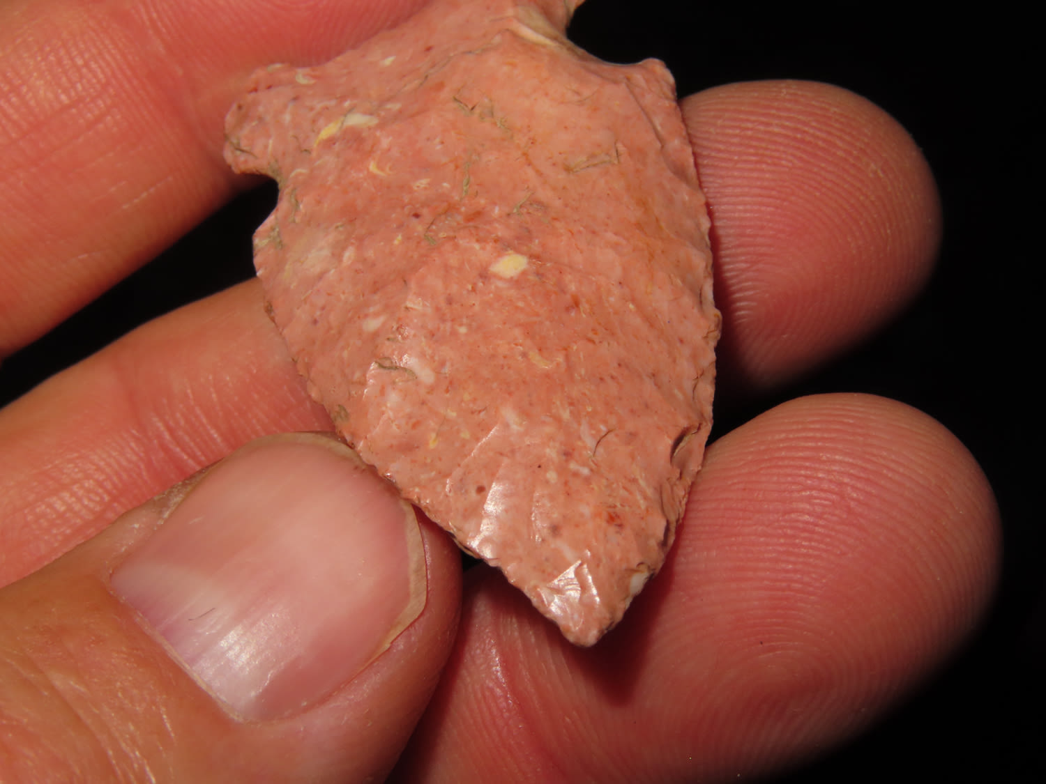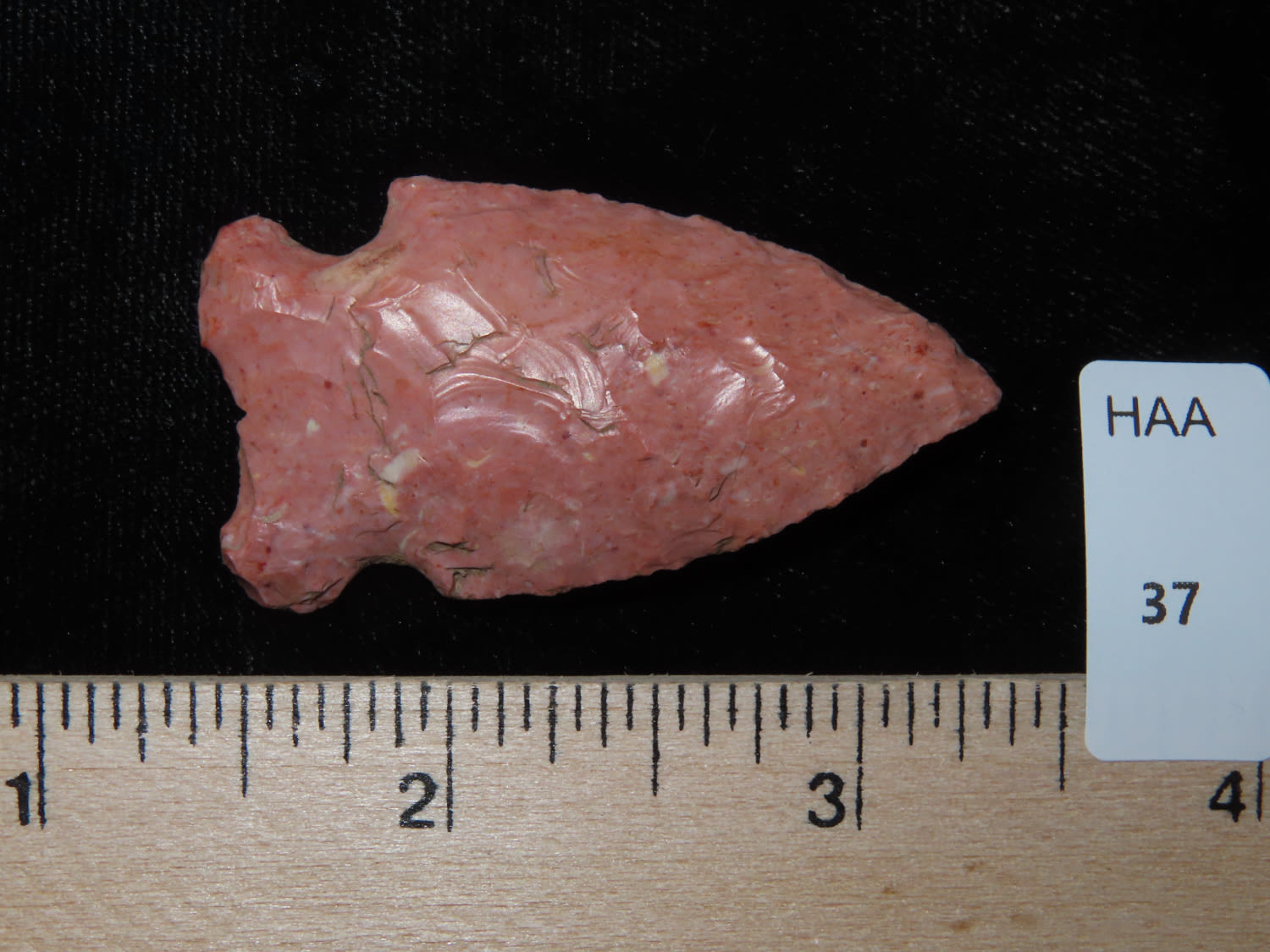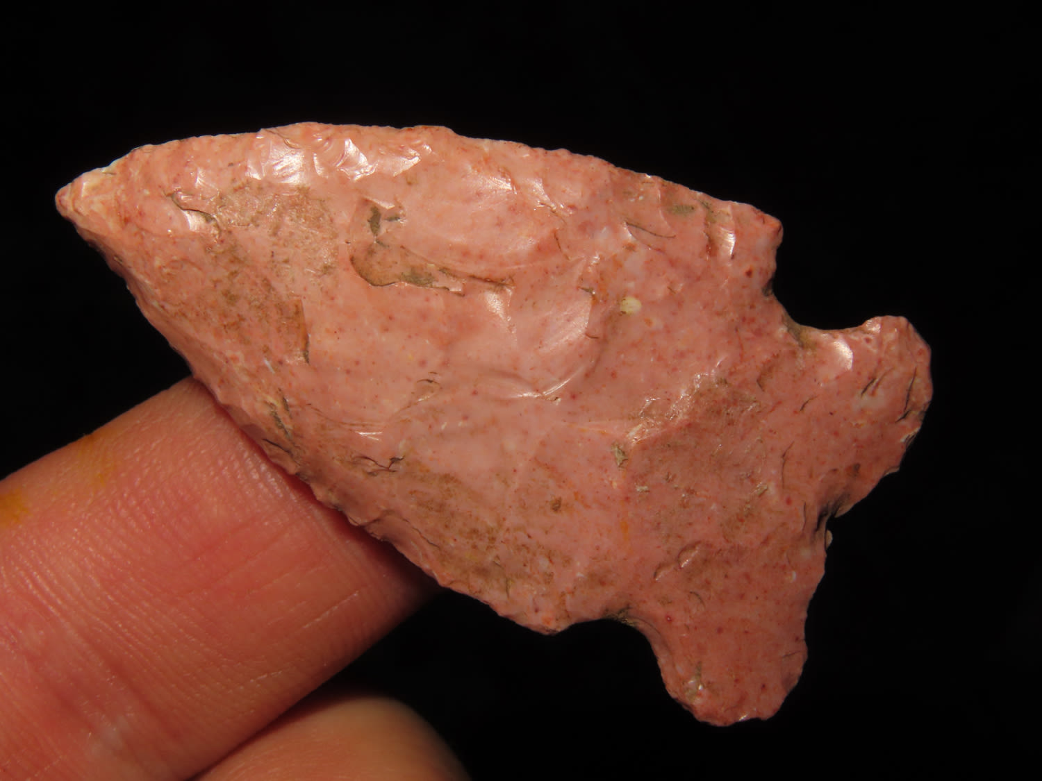 1.15/16″ Nicely Colored Raddiz, Adams Co IL, Ex Jake Vahle Coll. These are points out of Jake’s smalls frame which he found intriguing over the years.