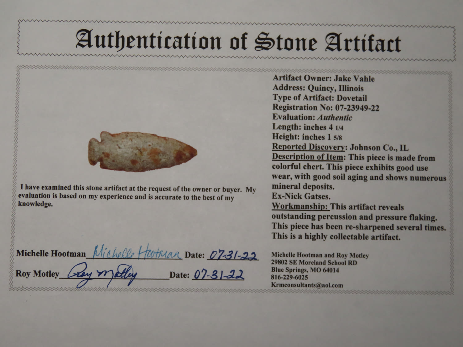 4 1/4″ Dovetail, Motley COA, found in Johnson Co., Illinois