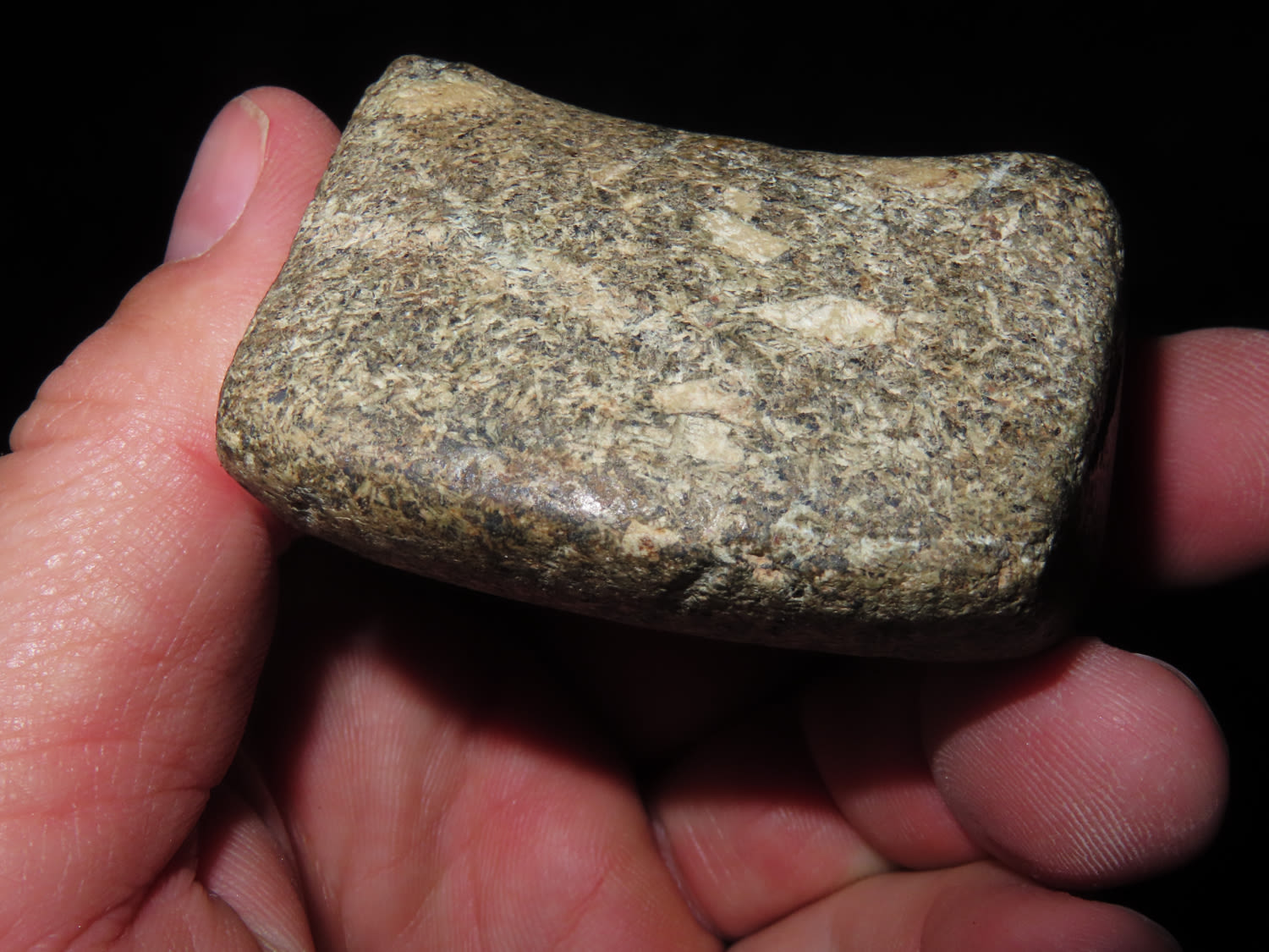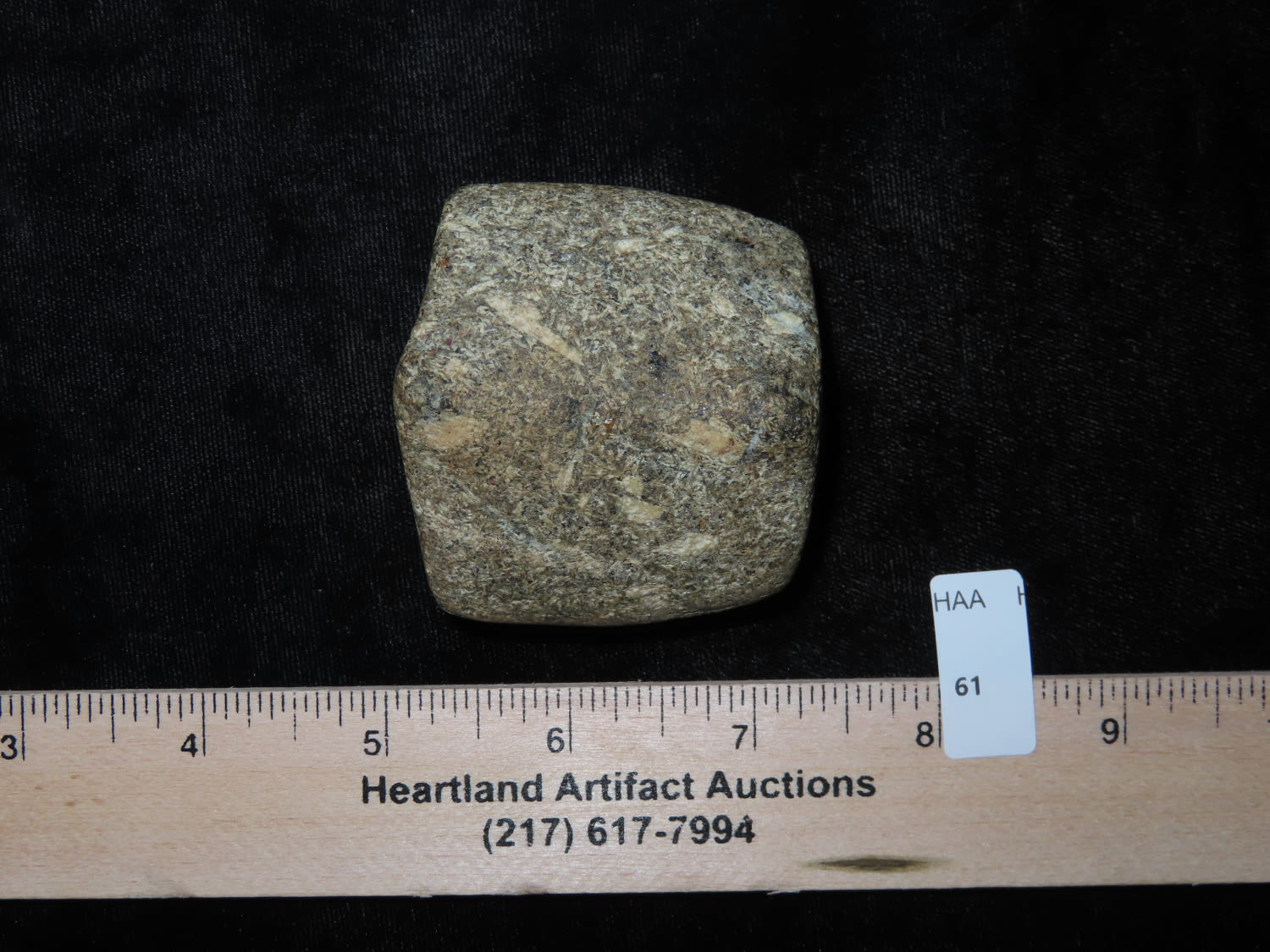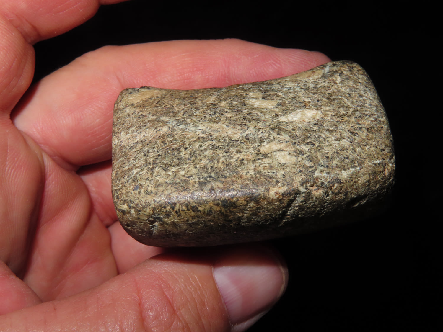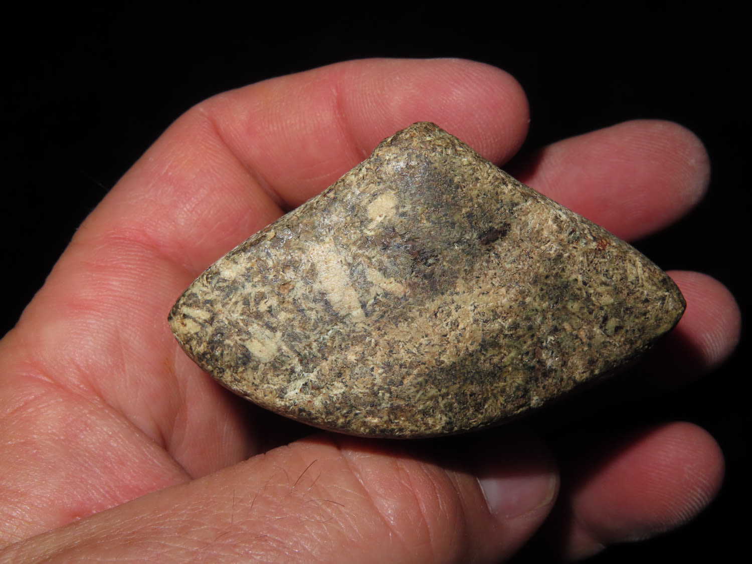 2″ Bannerstone. Saddle type, made from Porphyry, Ex Jake Vahle, Found in Southern Iowa.