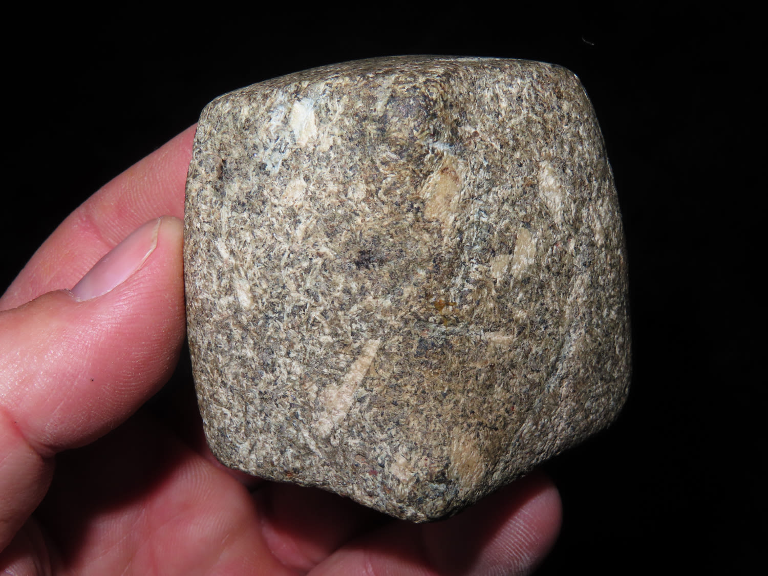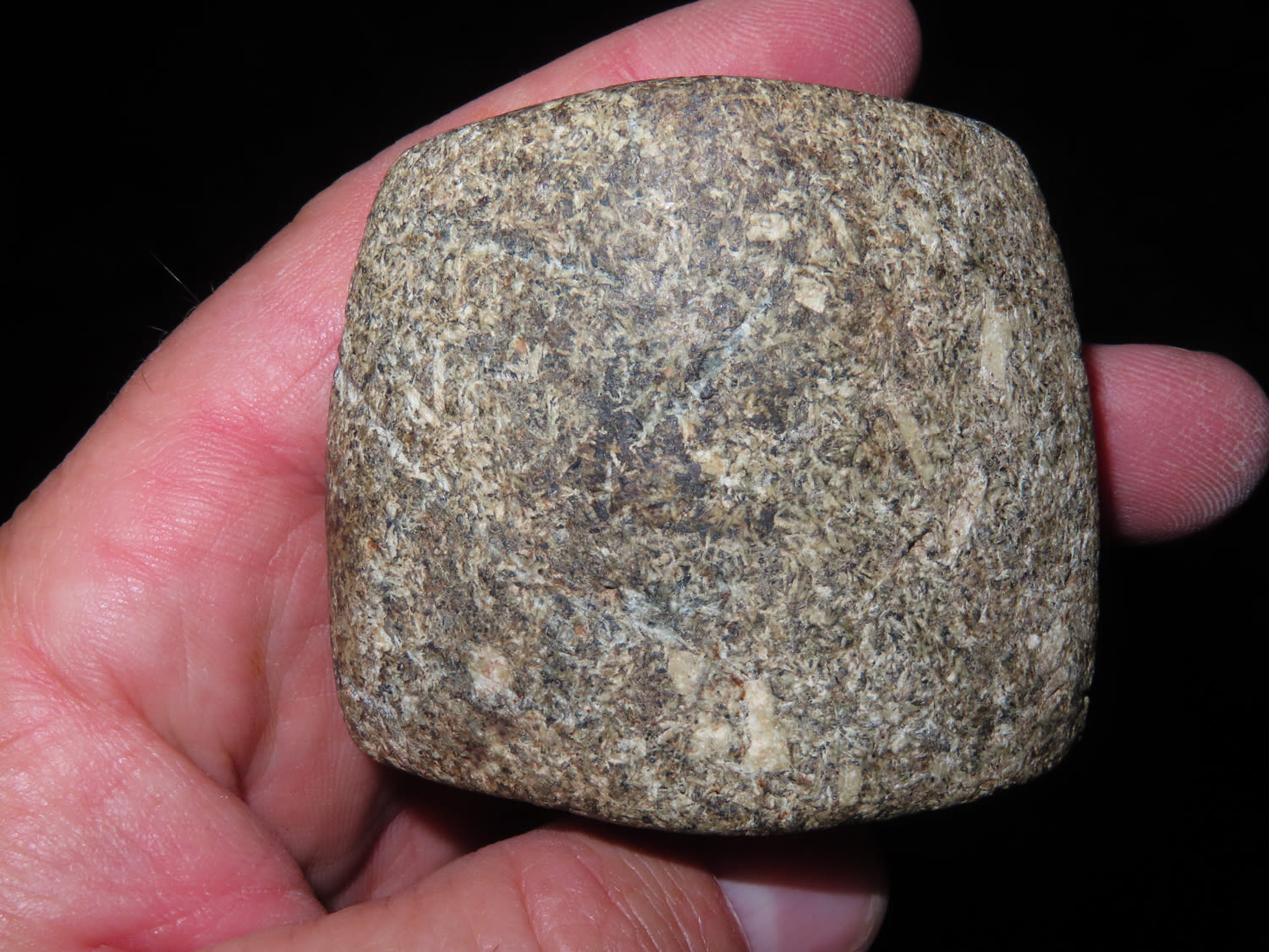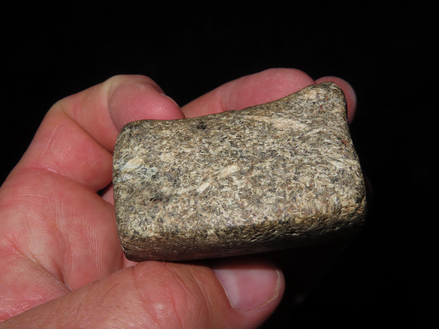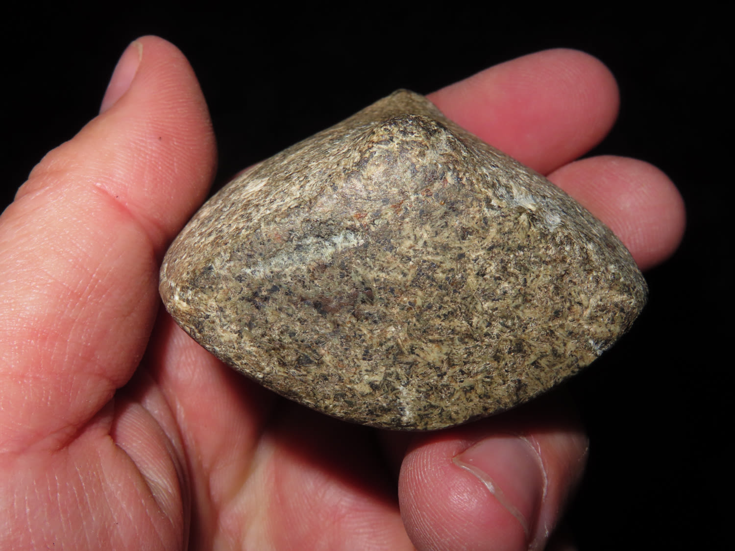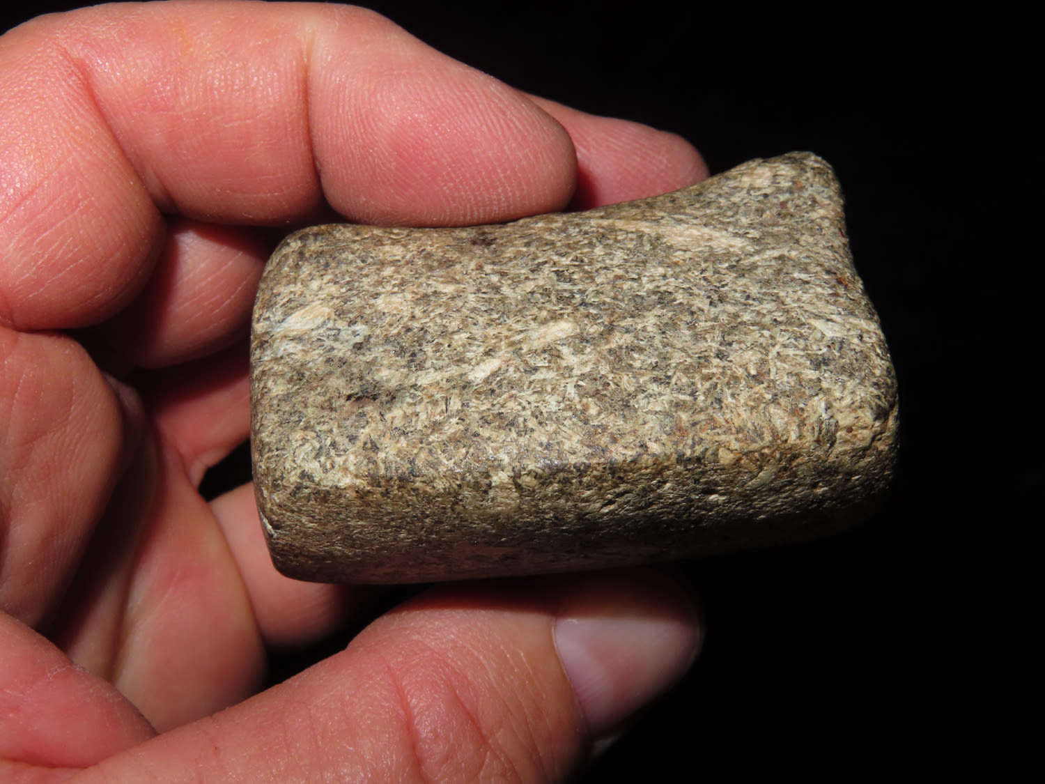 2″ Bannerstone. Saddle type, made from Porphyry, Ex Jake Vahle, Found in Southern Iowa.