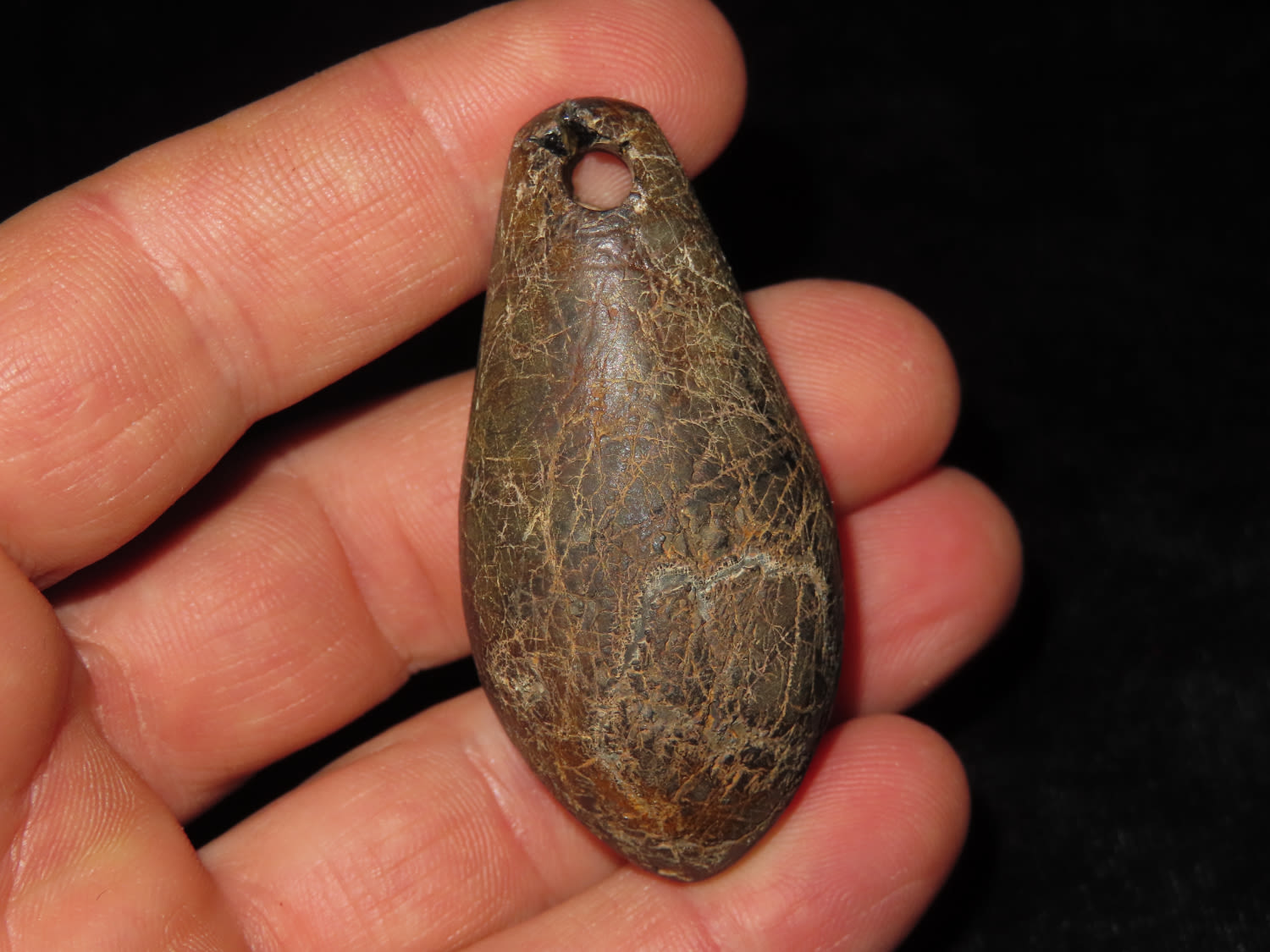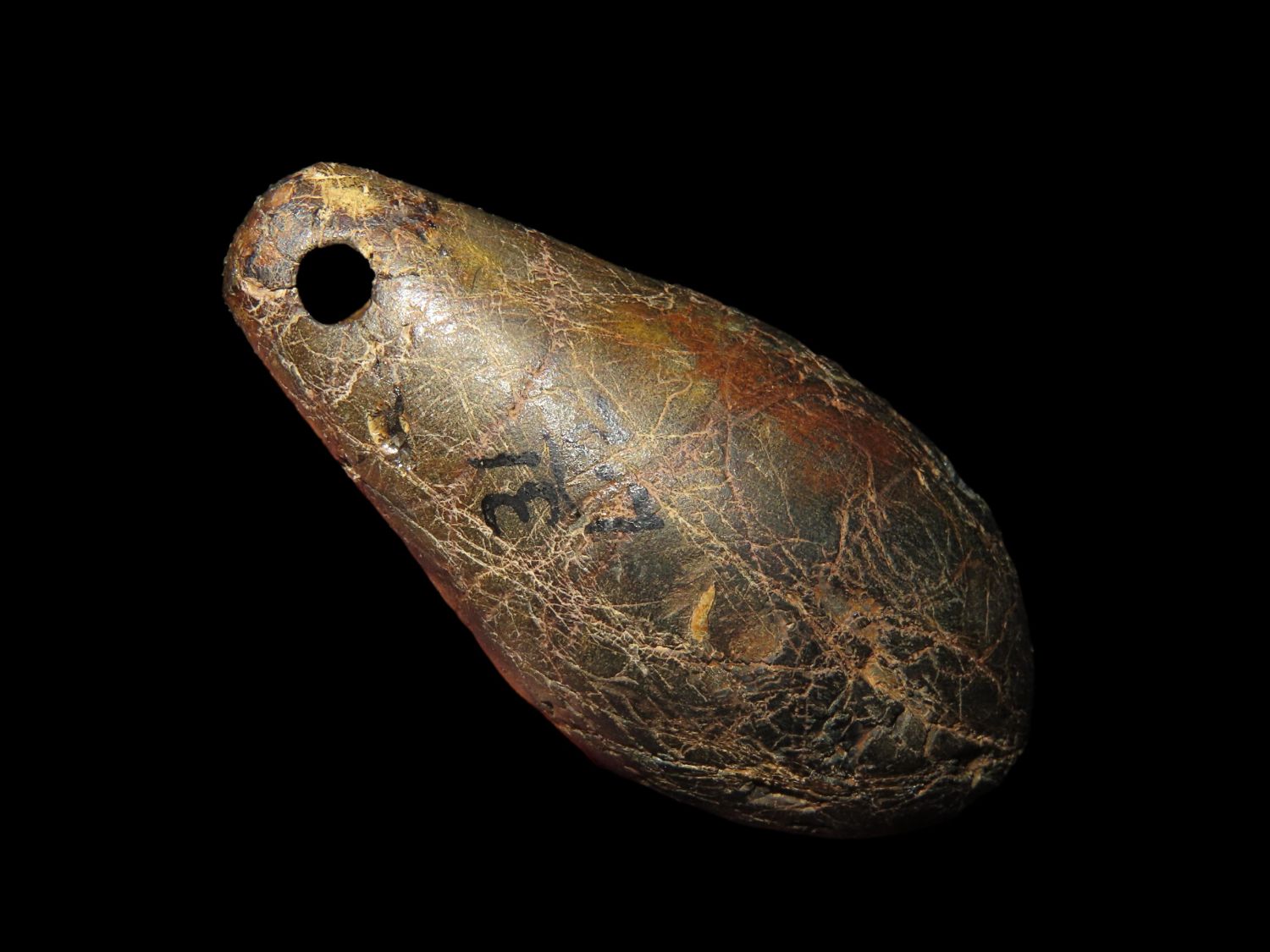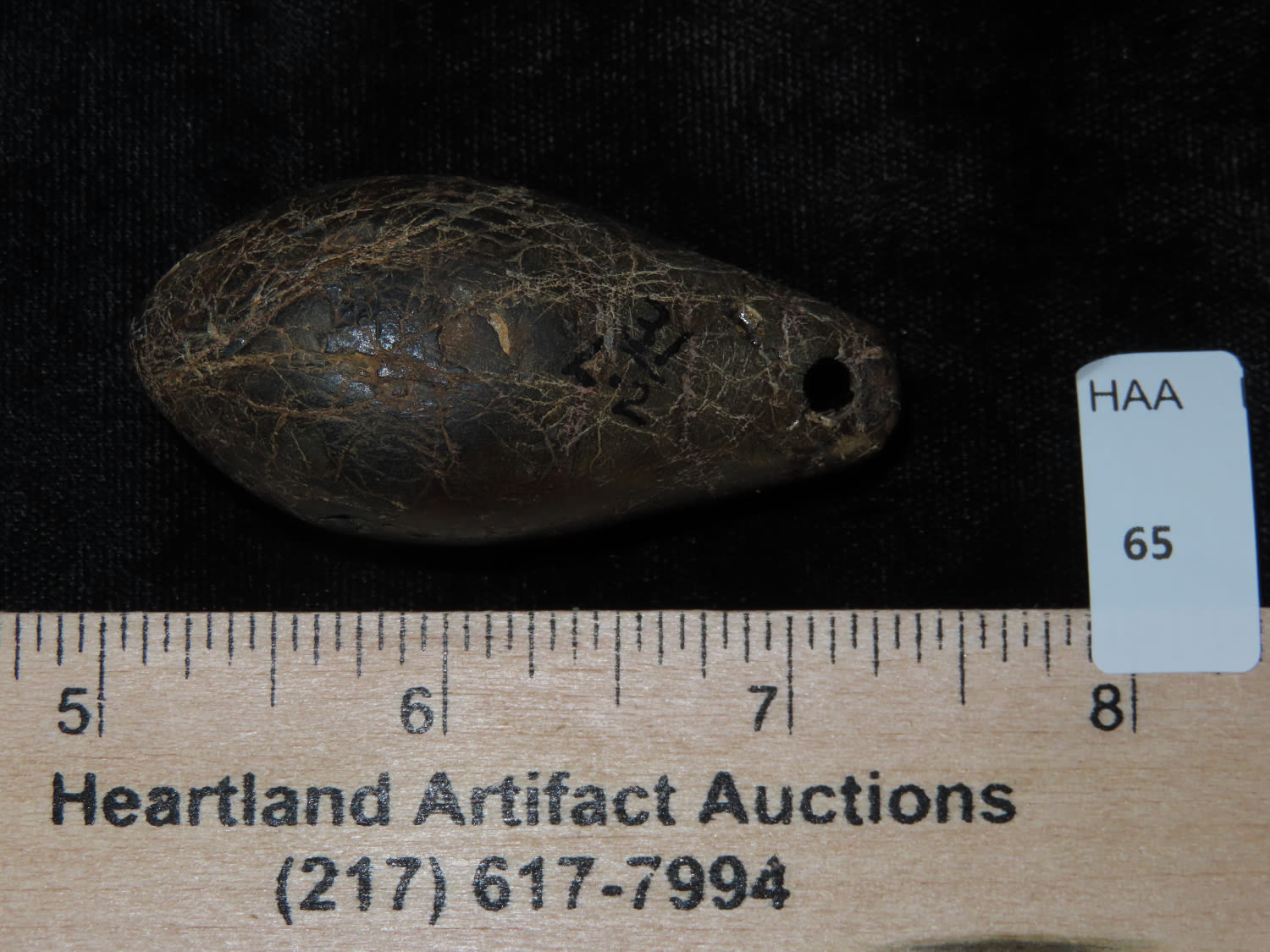 2.1/4″ Hematite Plummet, Missouri, Ex Rick Koening, Ex Jake Vahle. Broken and Glued near the hole.