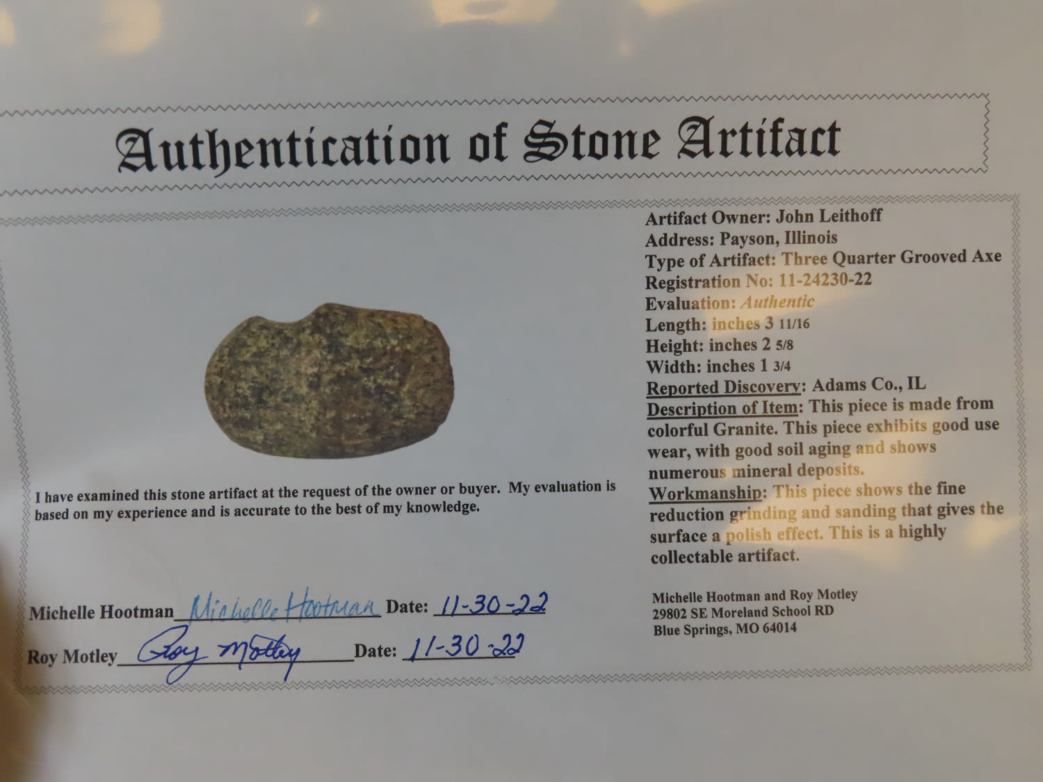 3 11/16″ 3/4″ Groove Axe, Motley COA, found in Adams Co., Illinois, Ex John Leithoff Collection