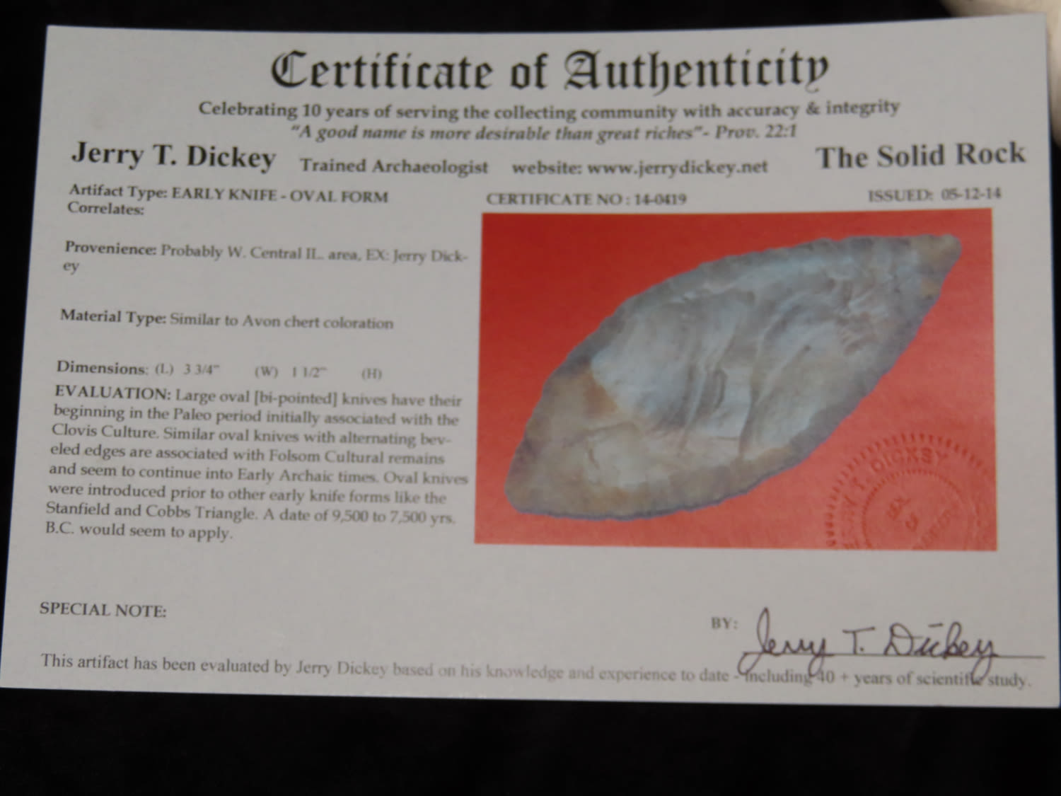3 3/4″ Early Ovoid Knife, Dickey COA, found in West Central Illinois, Ex Jerry Dickey Collection