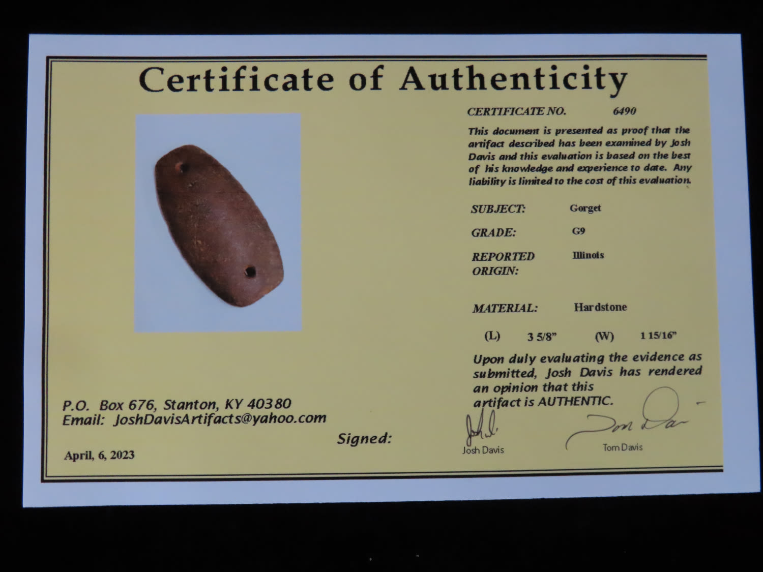3 5/8″ Hardstone Gorget, 2x COA- Motley/Davis, found in Illinois