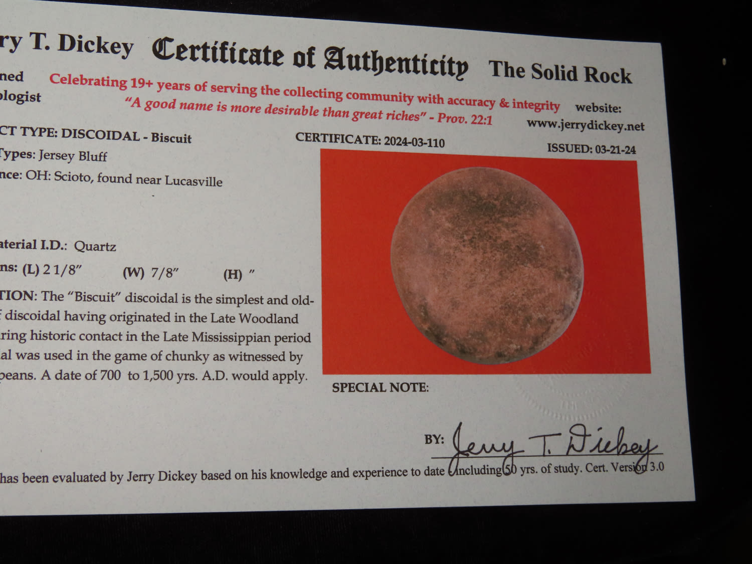 2 1/8″ Biscuit Discoidal, Dickey COA, found near Lucasville, Scioto Co., Ohio