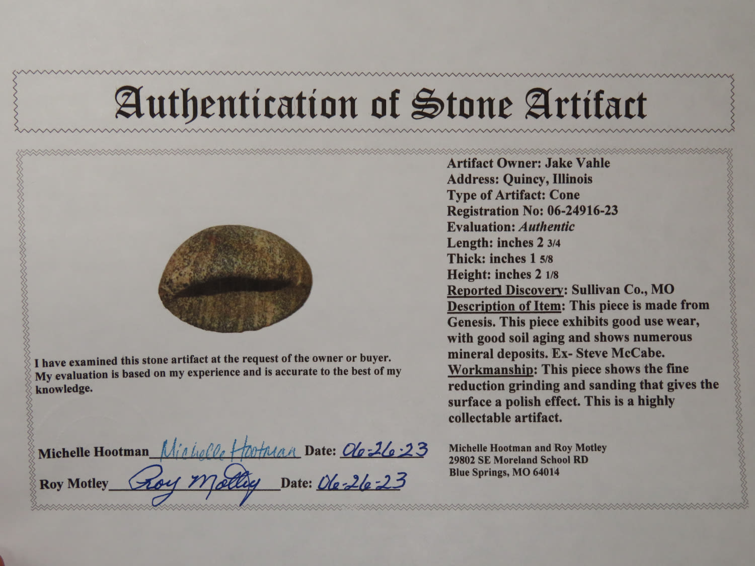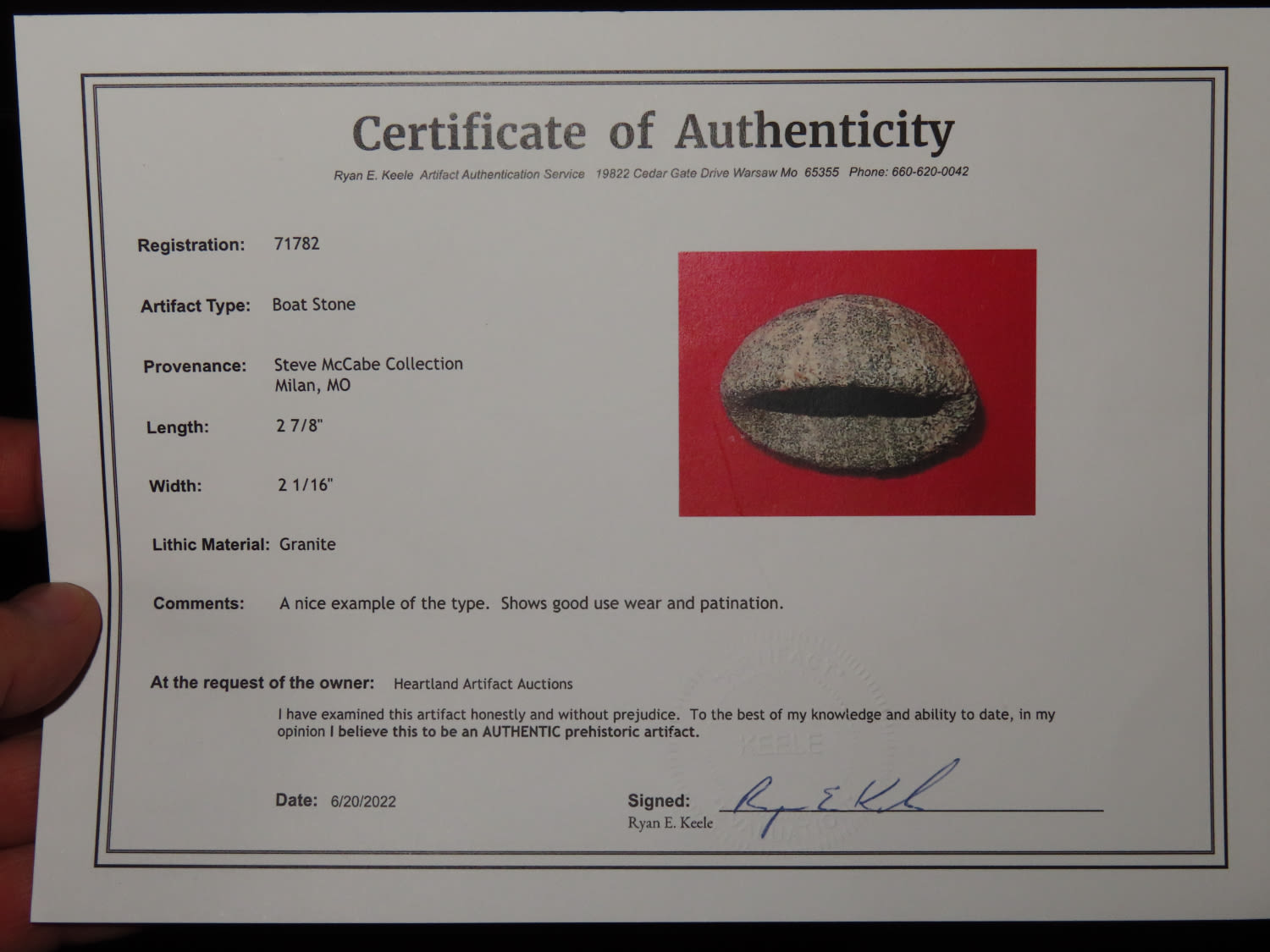 2 7/8″ Granite Boat Stone/Cone , 2xCOA- Motley/Keele, Ex Steve McCabe, Sullivan Co., Missouri