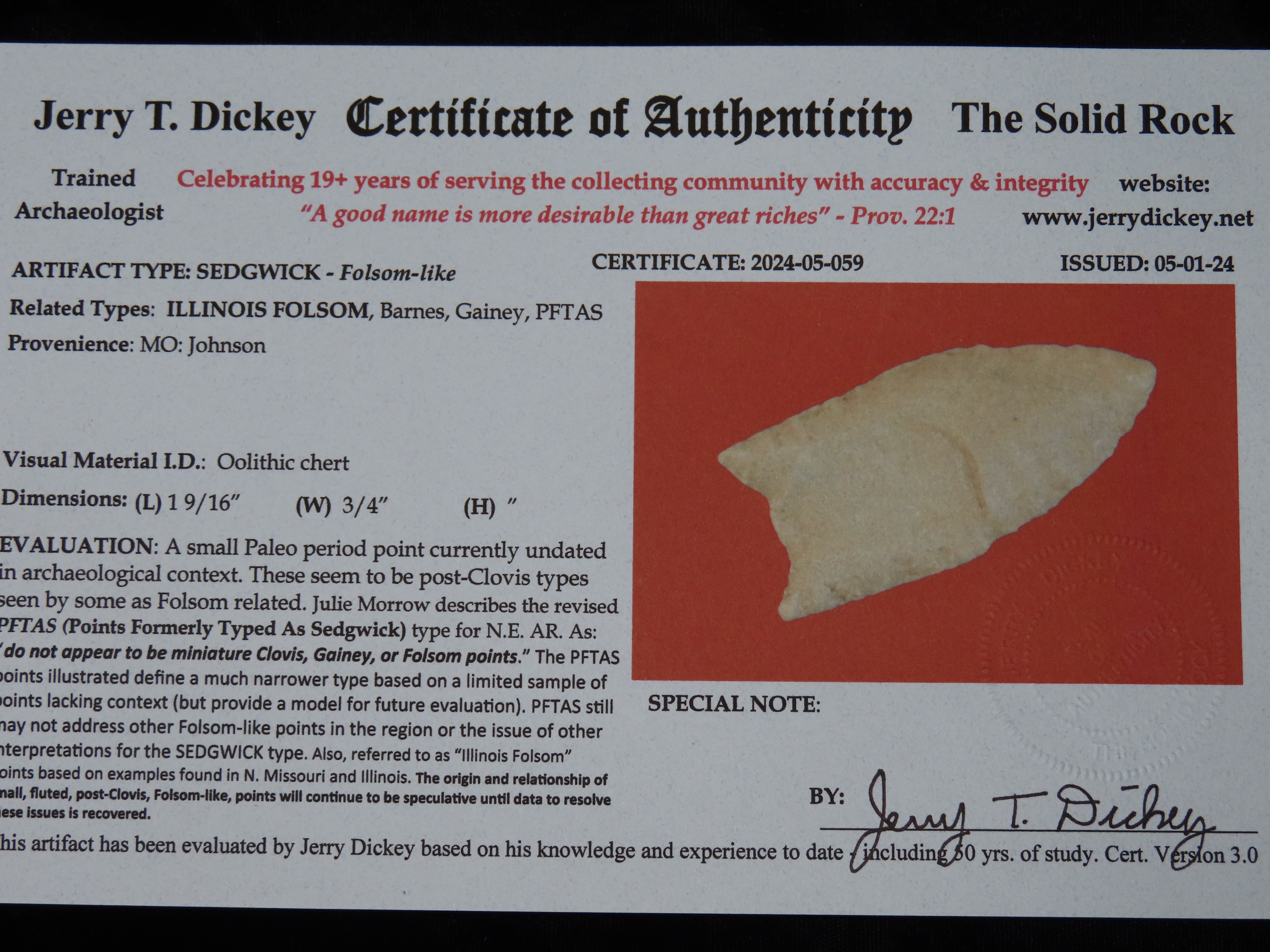 1 9/16″ Sedgewick, Dickey COA, found in Johnson Co., Missouri