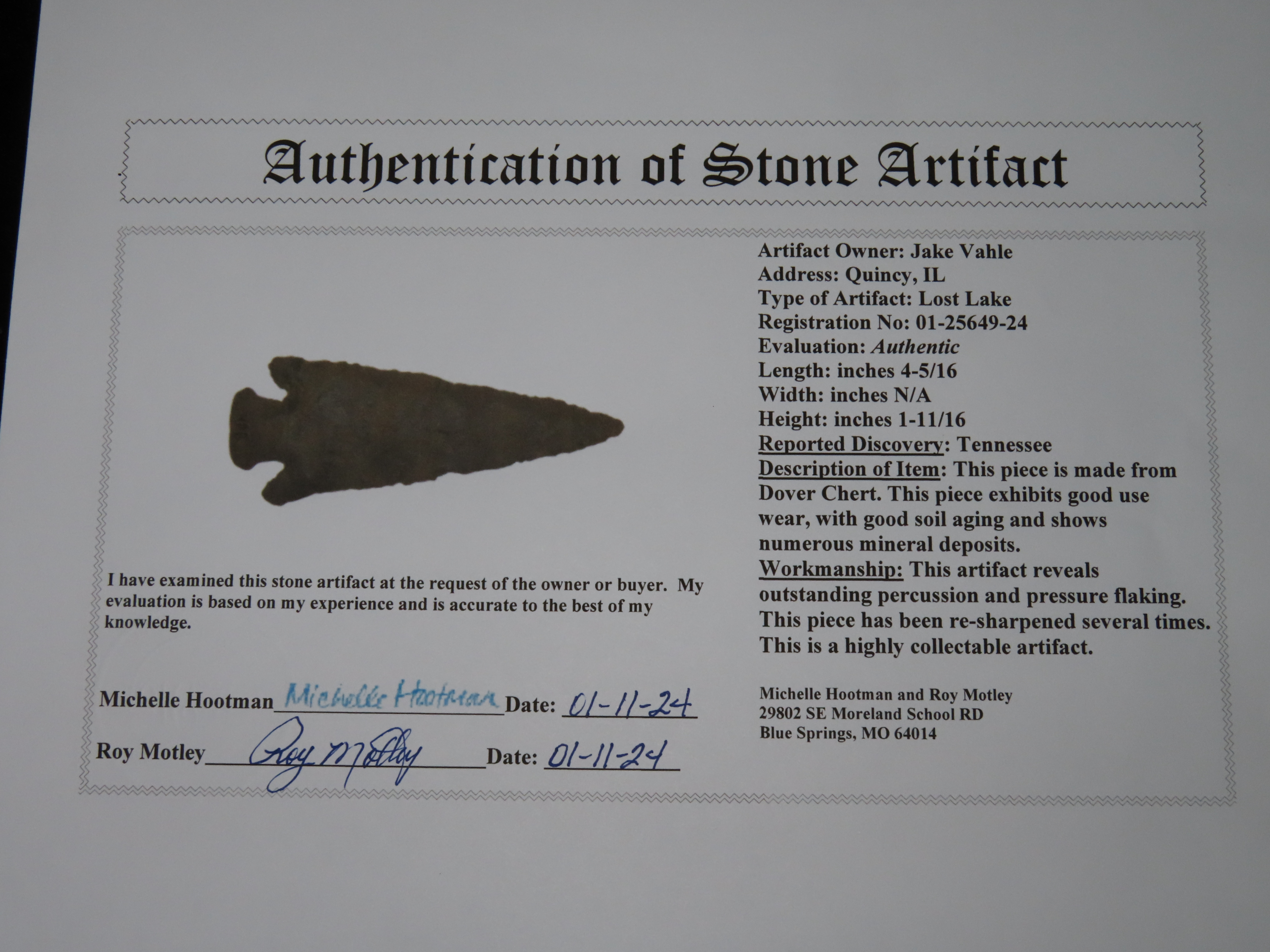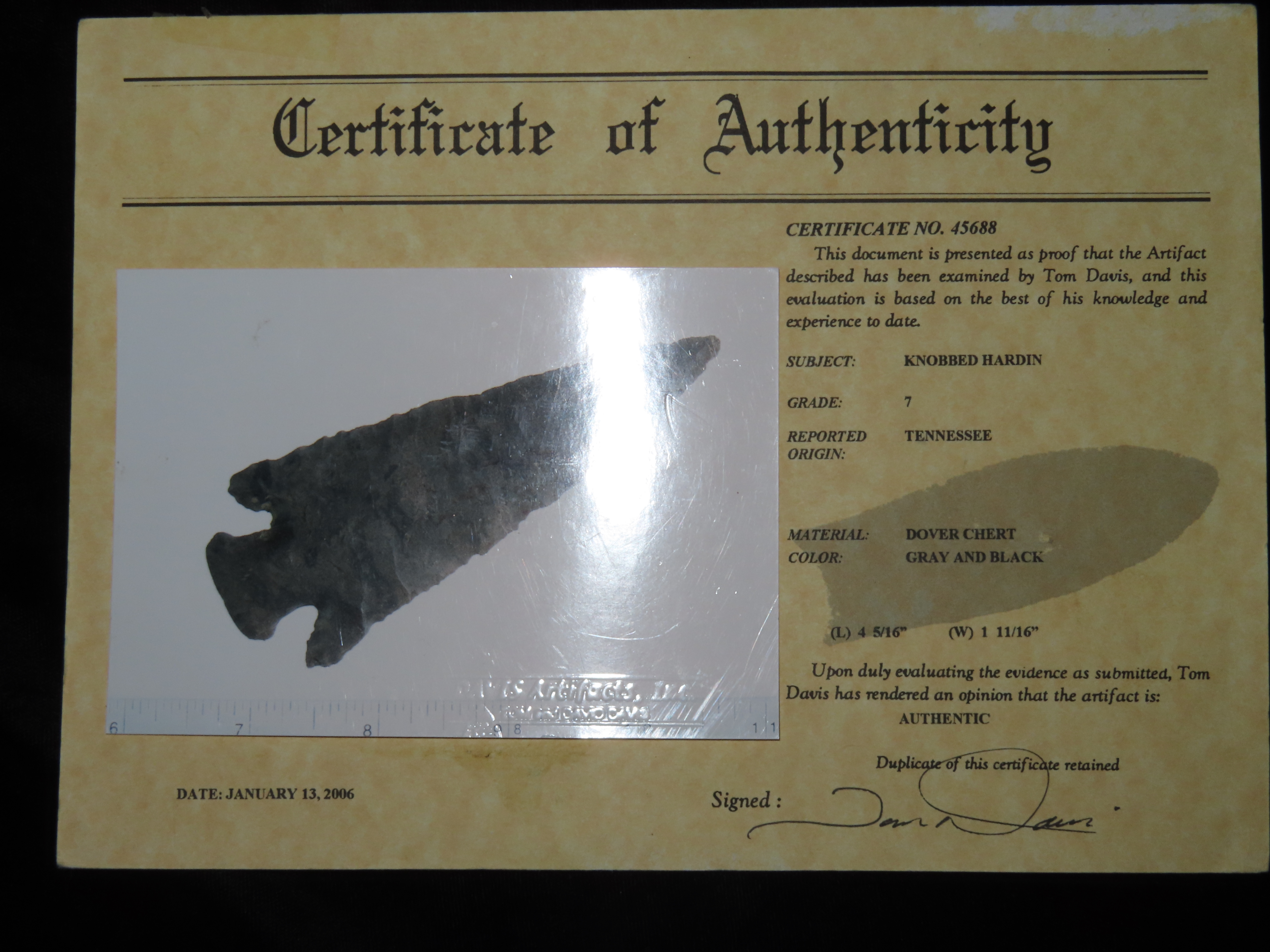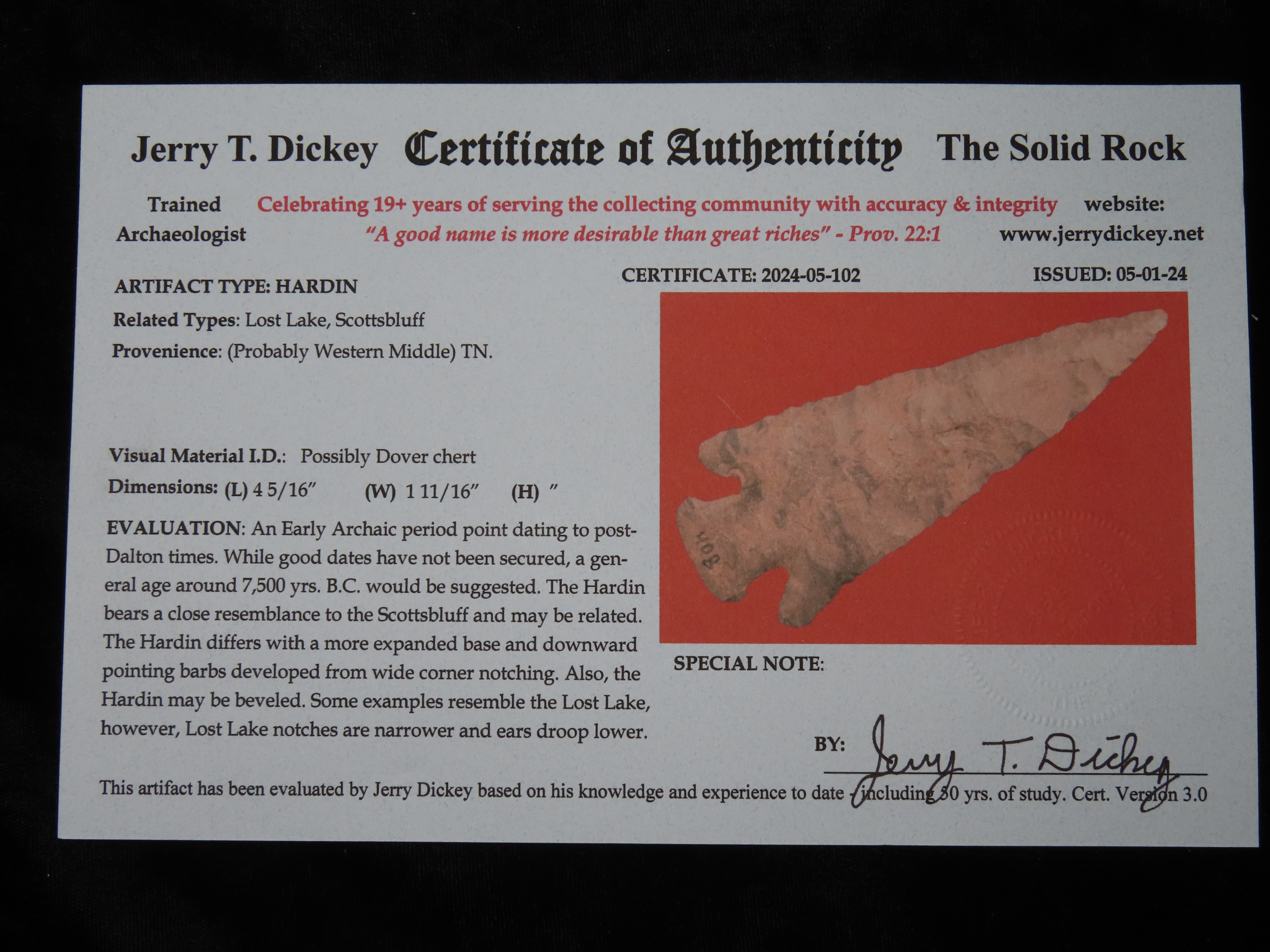 4 5/8″ Hardin, 2xCOA-Dickey/Motley/Davis, found in Tennessee, Ex Jake Vahle Collection, Quincy, Illinois