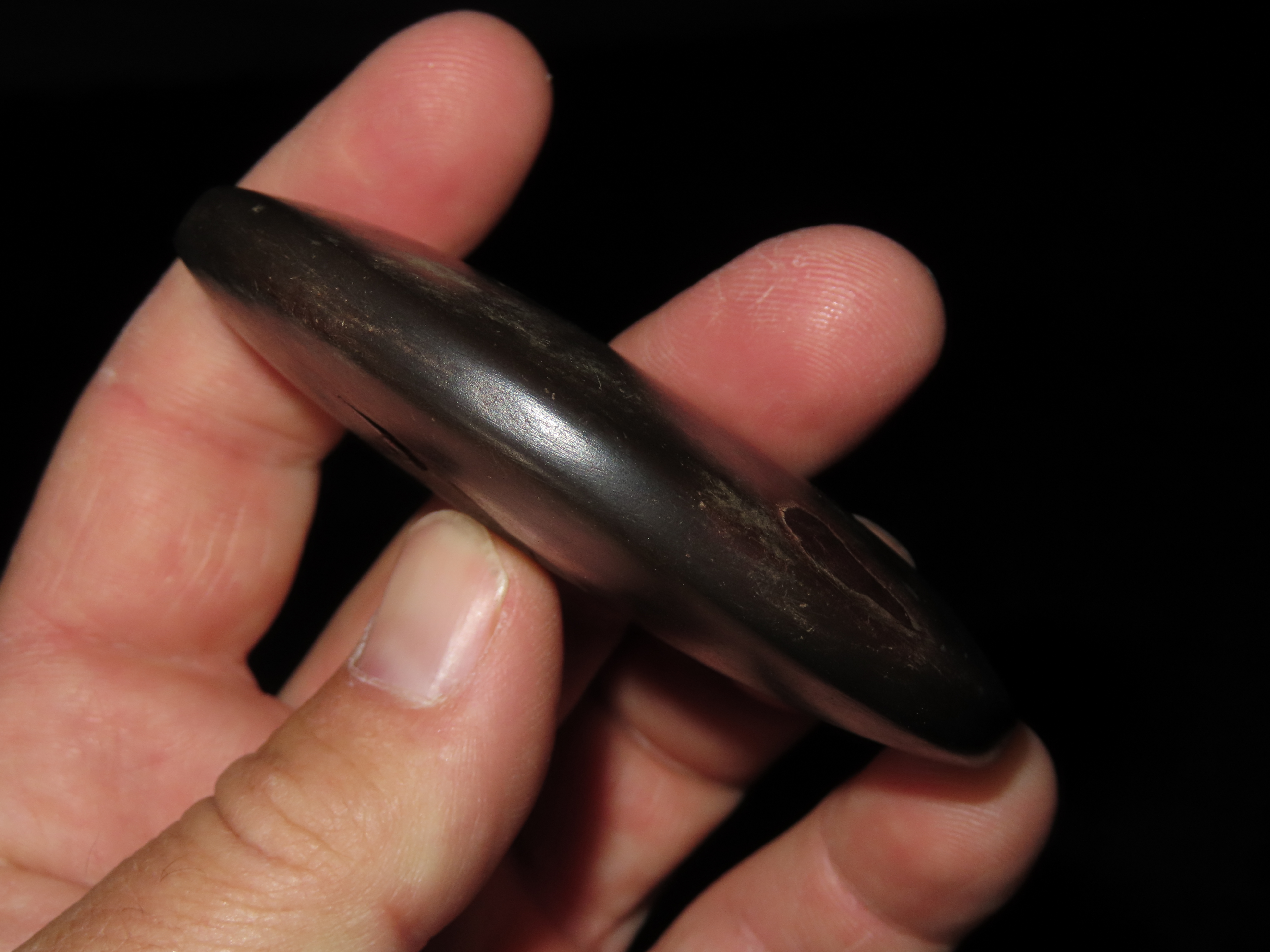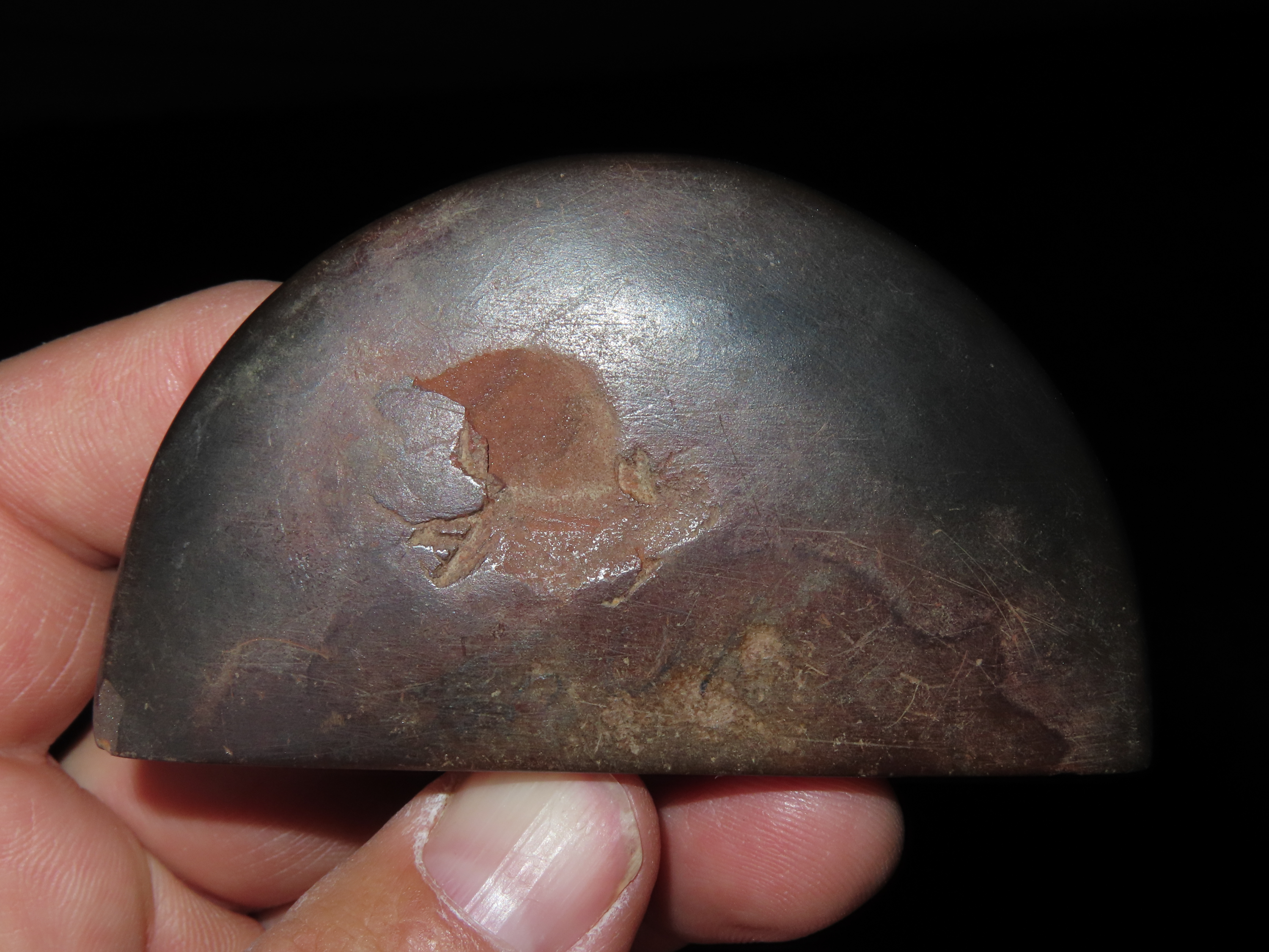 3 3/16" Hematite Boatstone, 3xCOA-Dickey/Davis/Motley, found in Arkansas, Ex Jake Vahle Collection