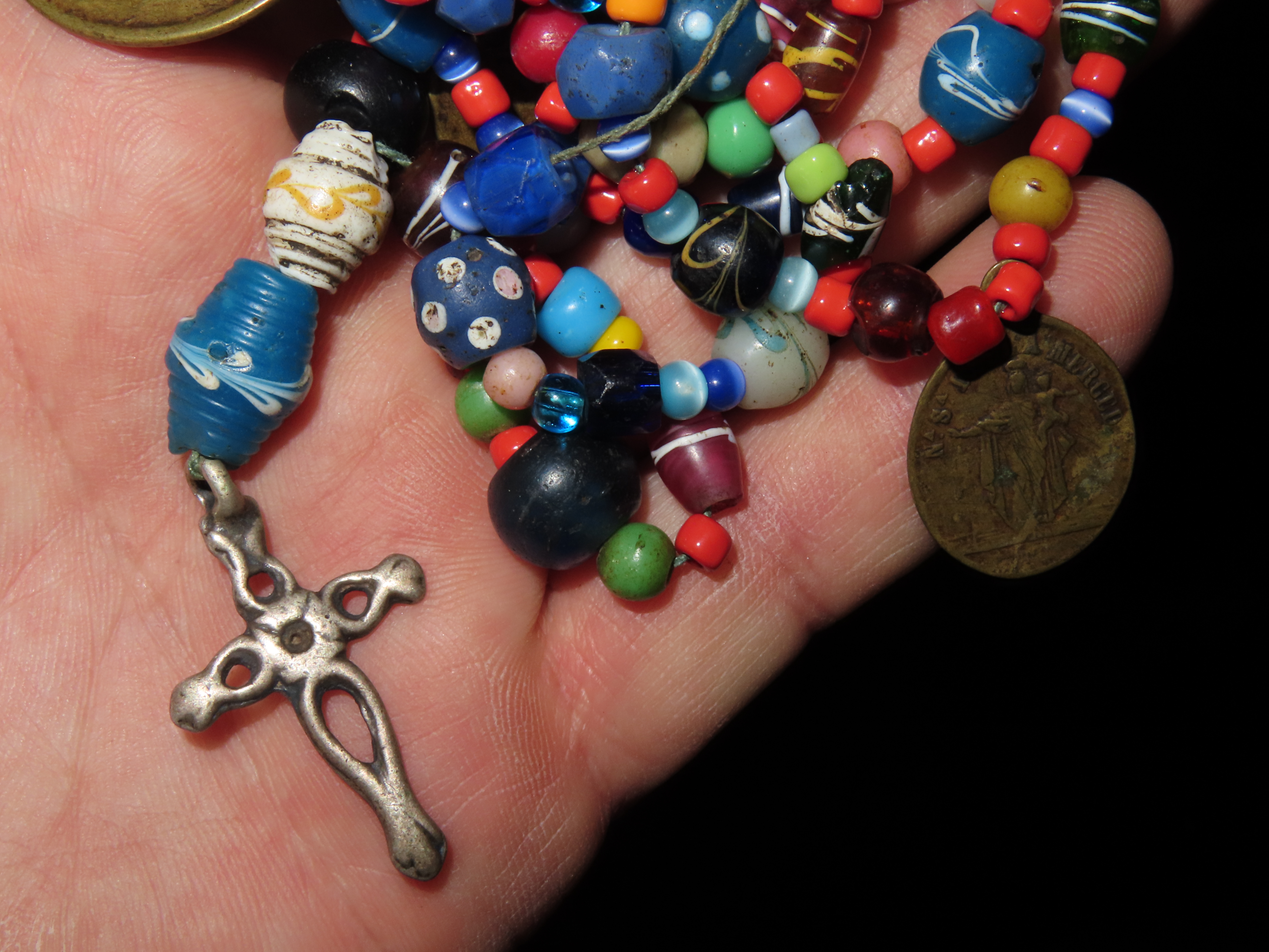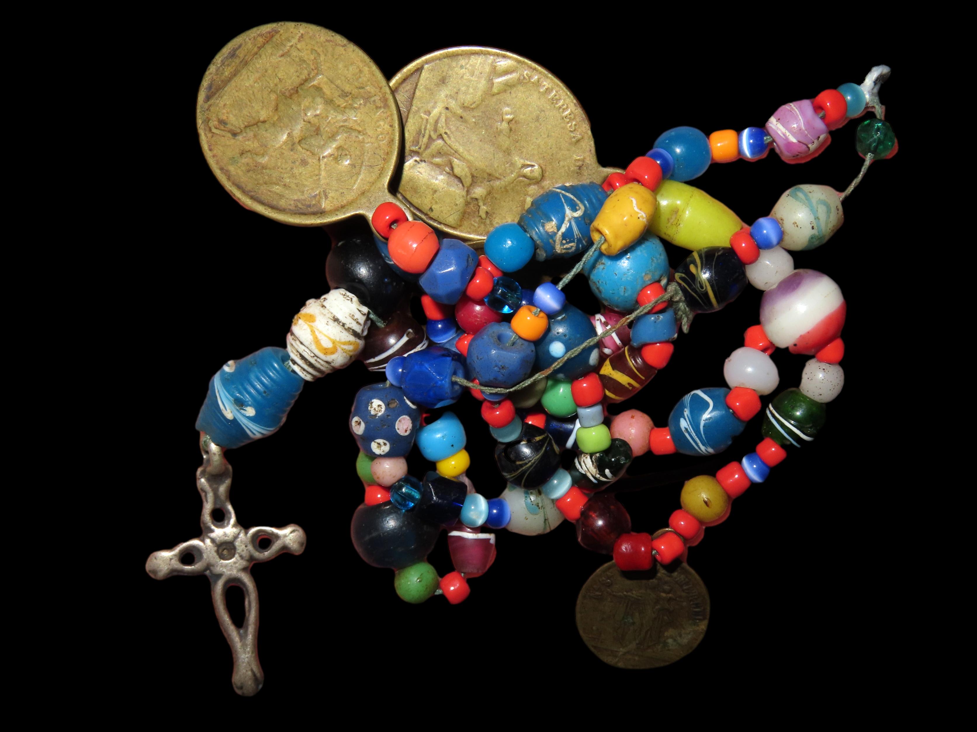 14″ Strand of Trade Beads, adorned with Religious Medals