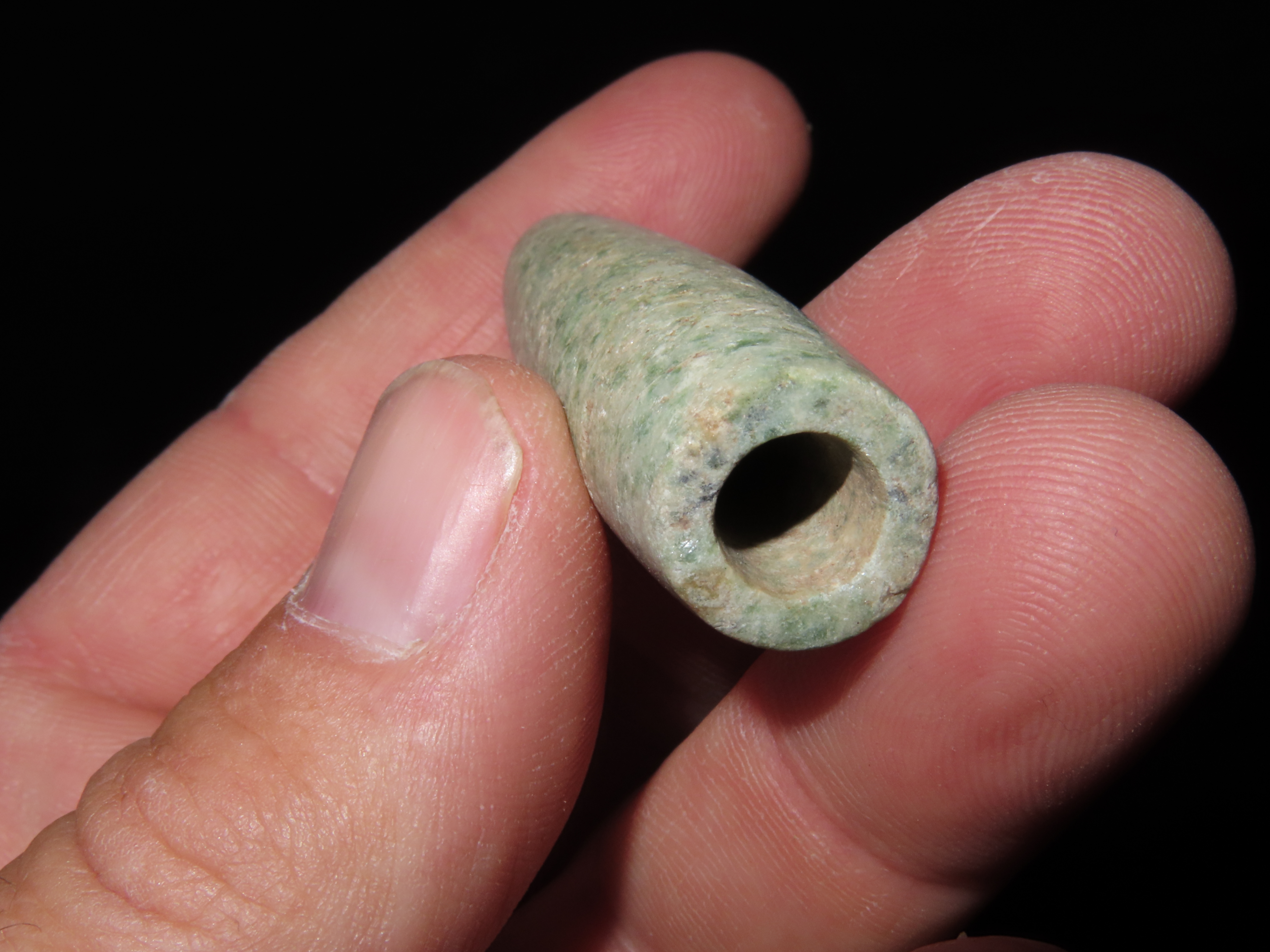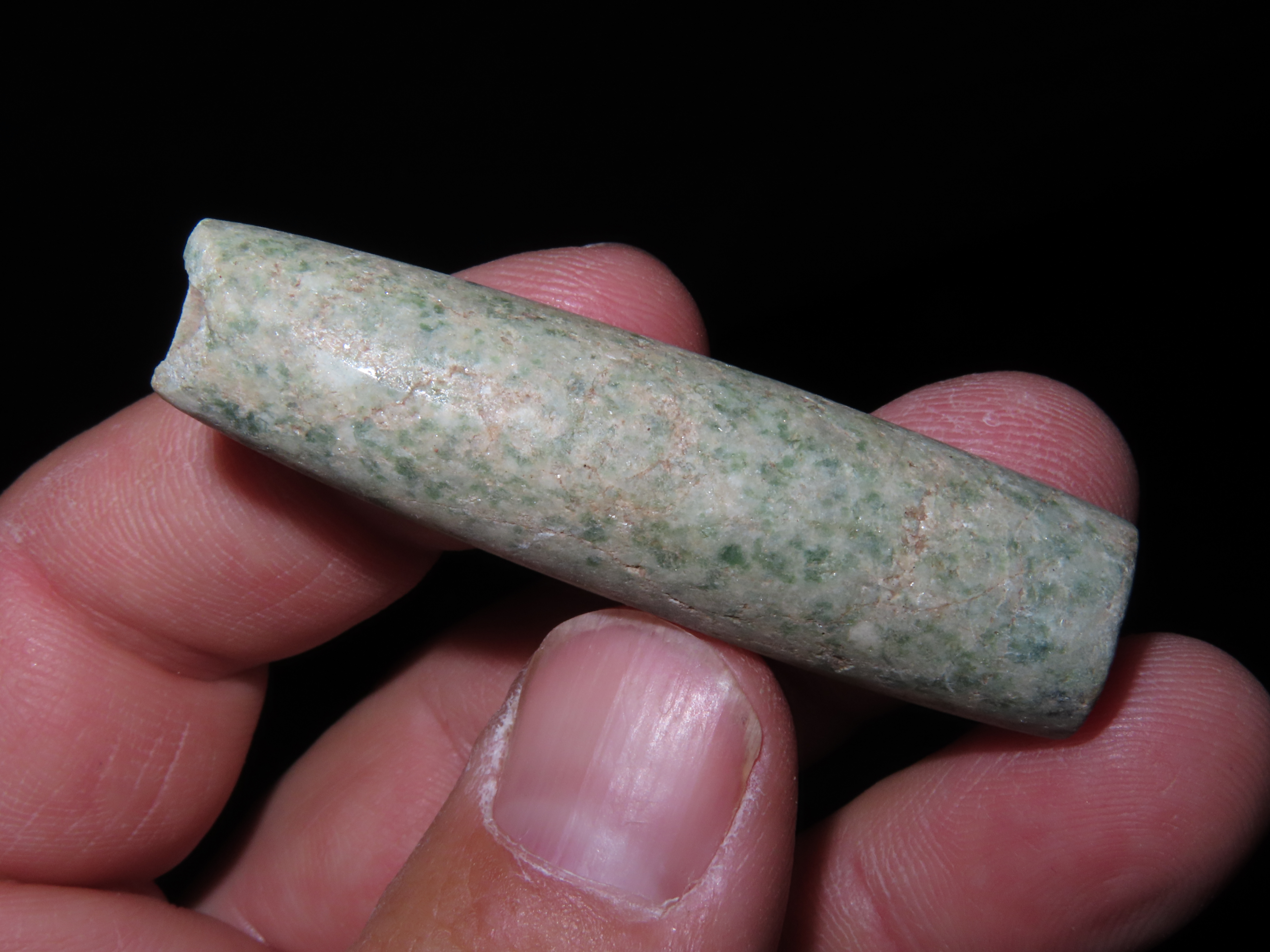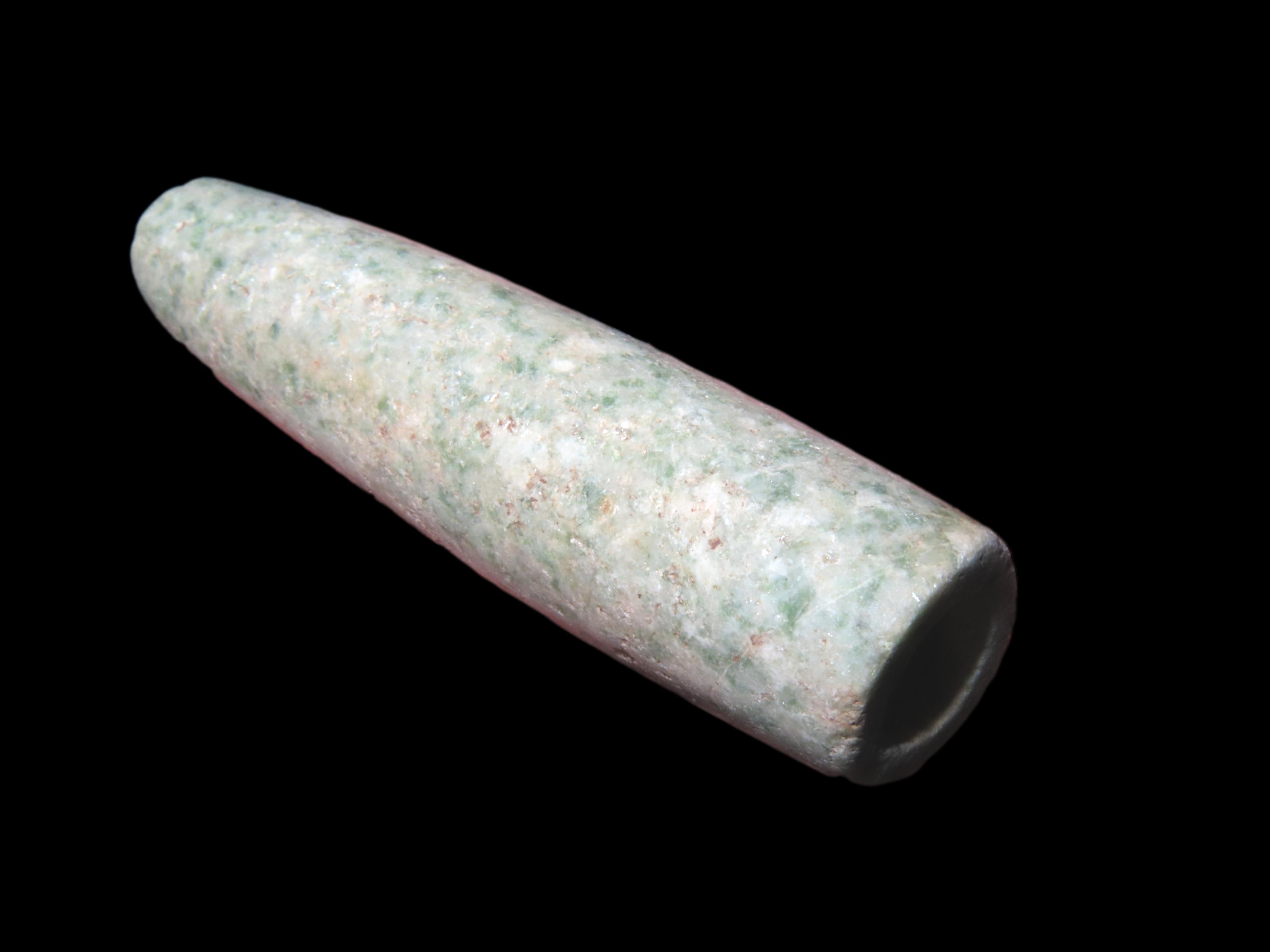 2 1/8″ nx 1/2″ Pre-Colombian Jade Bead, found in South America