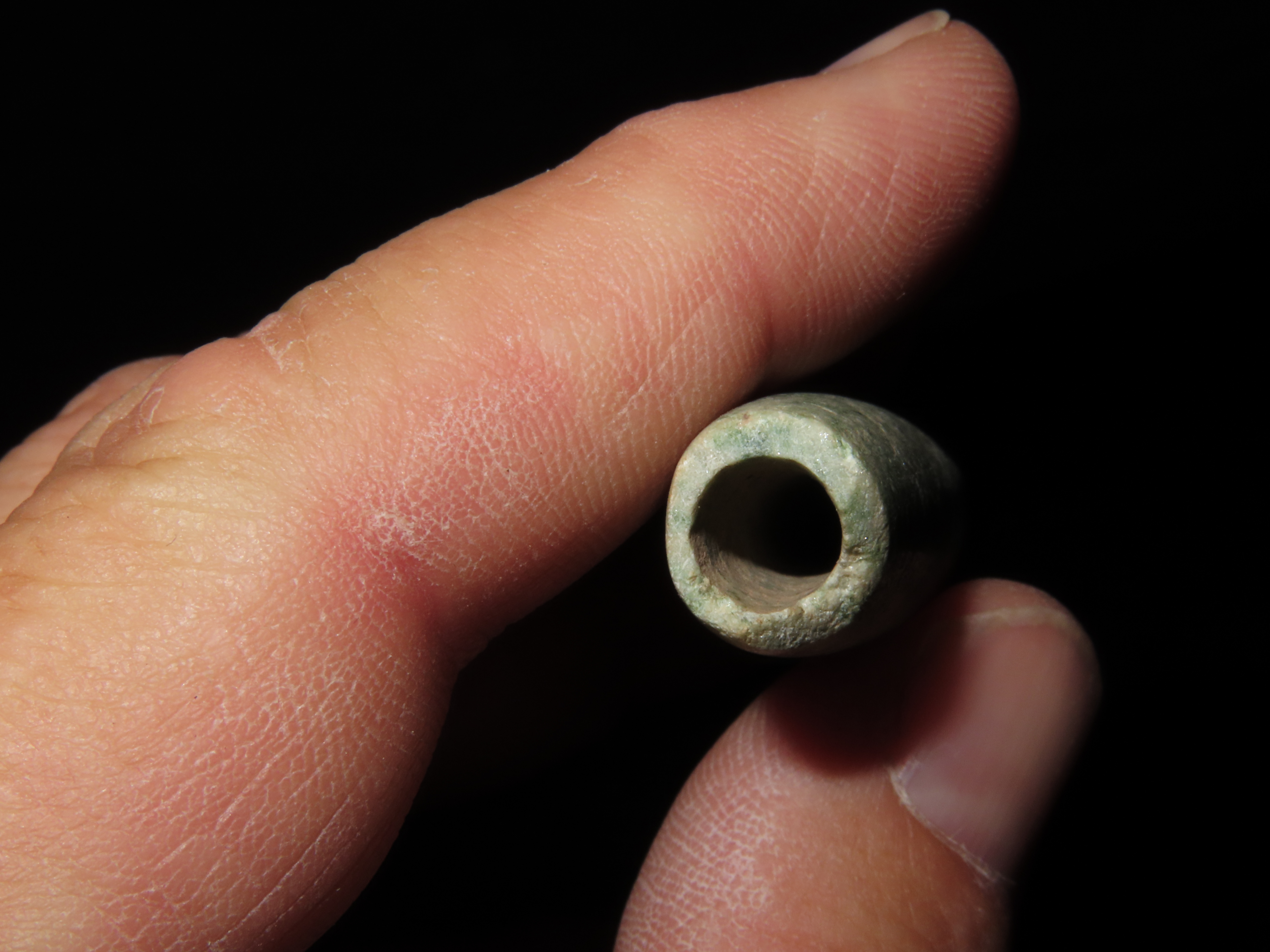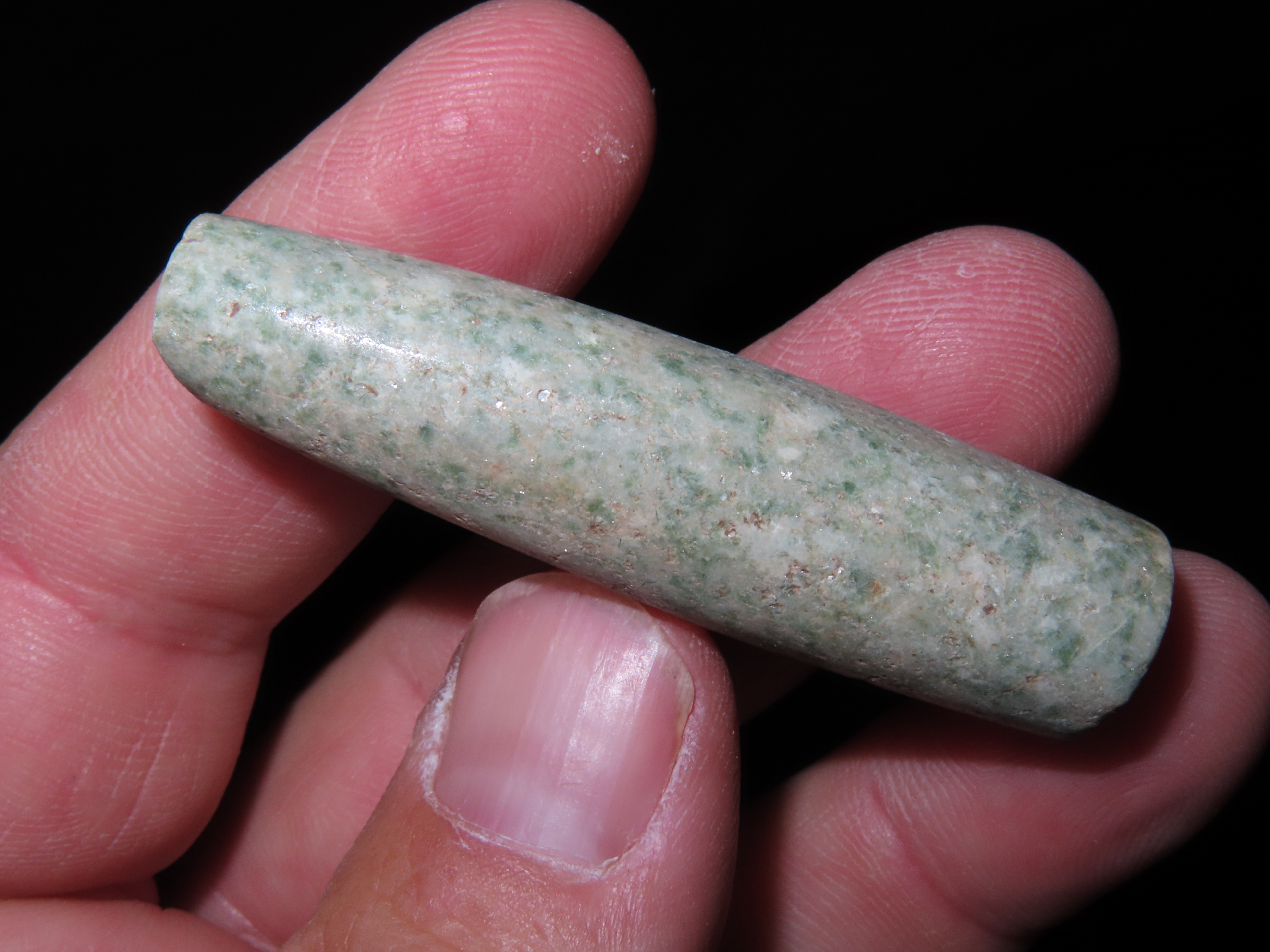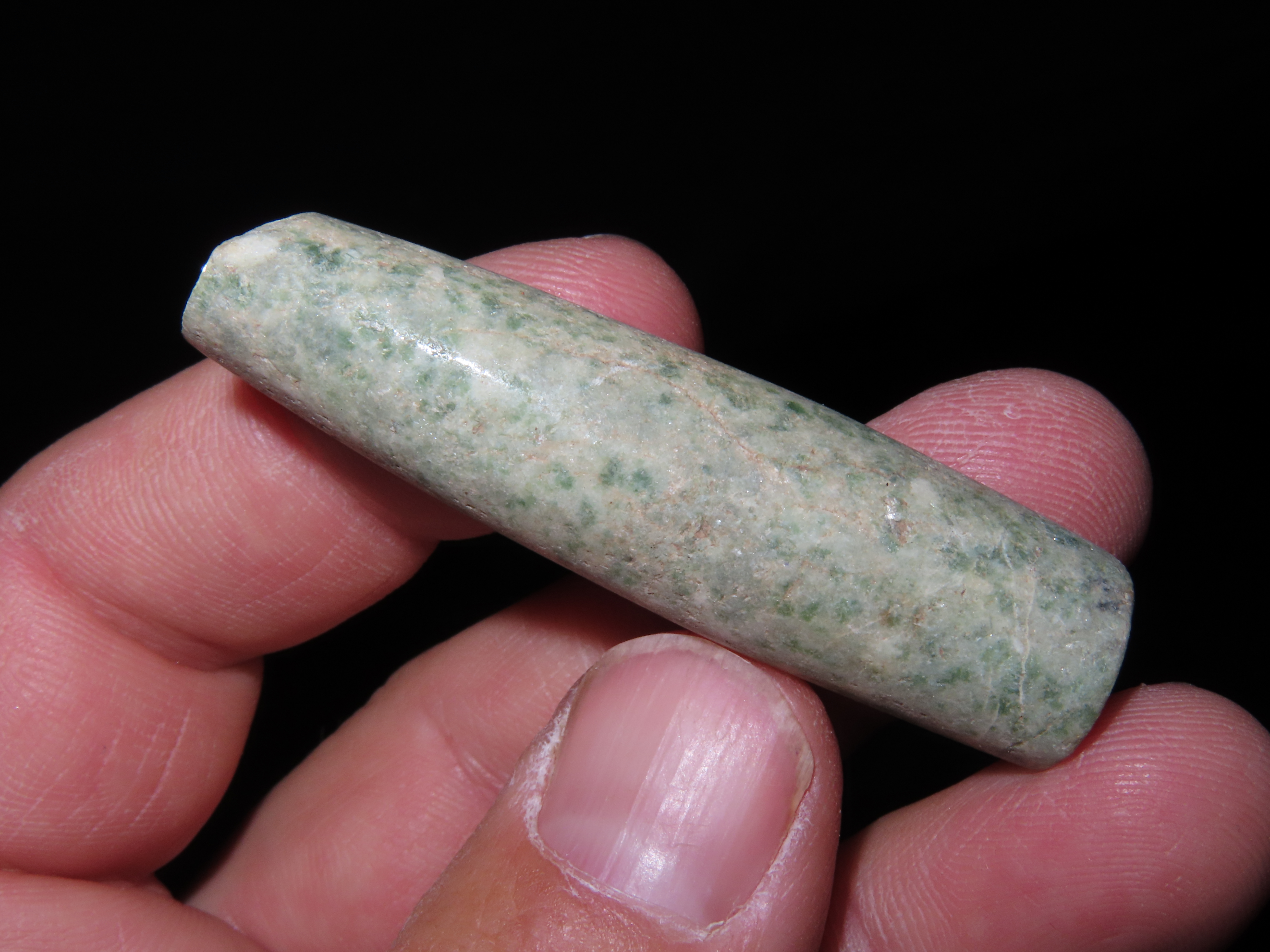 2 1/8″ nx 1/2″ Pre-Colombian Jade Bead, found in South America