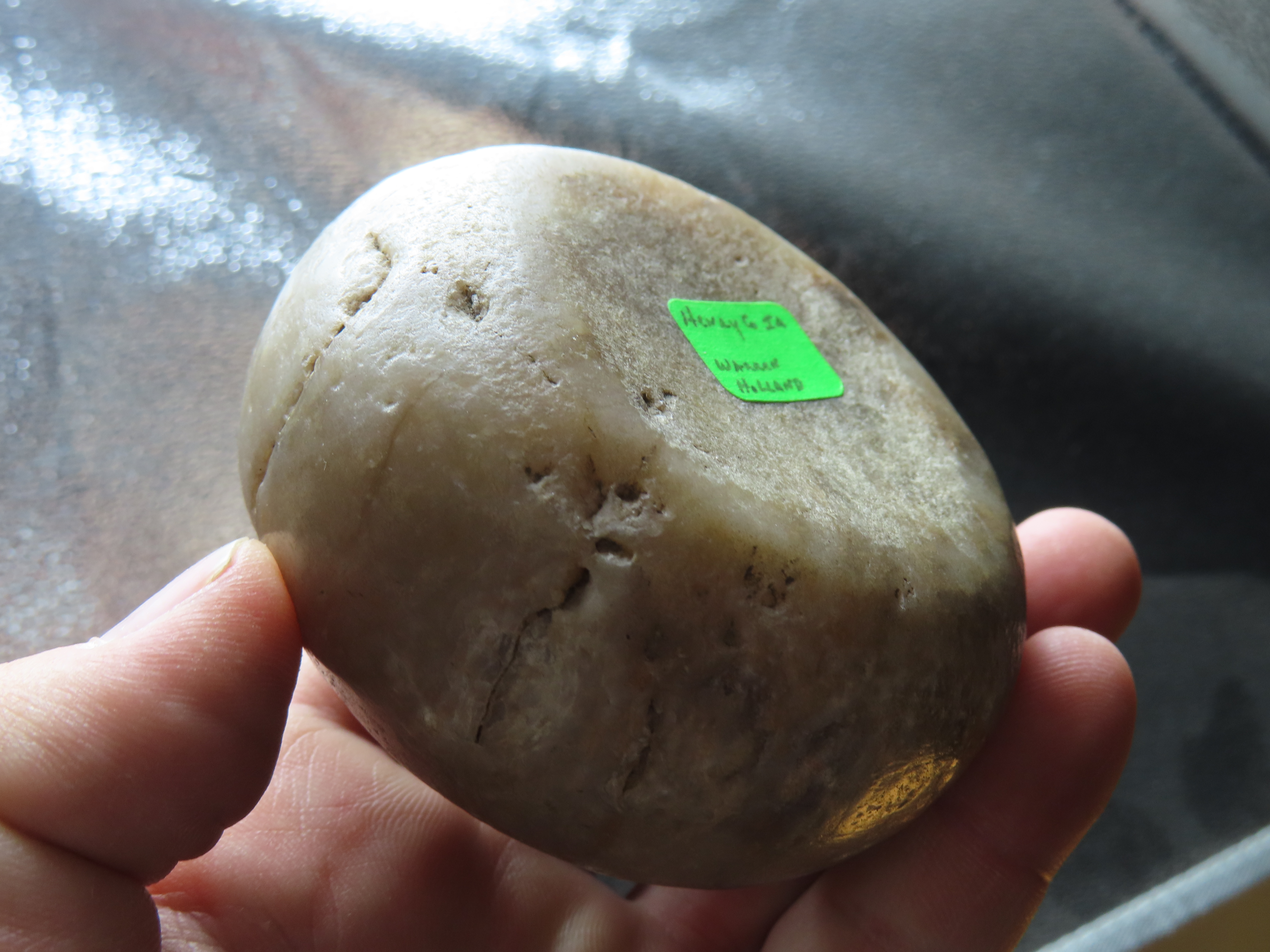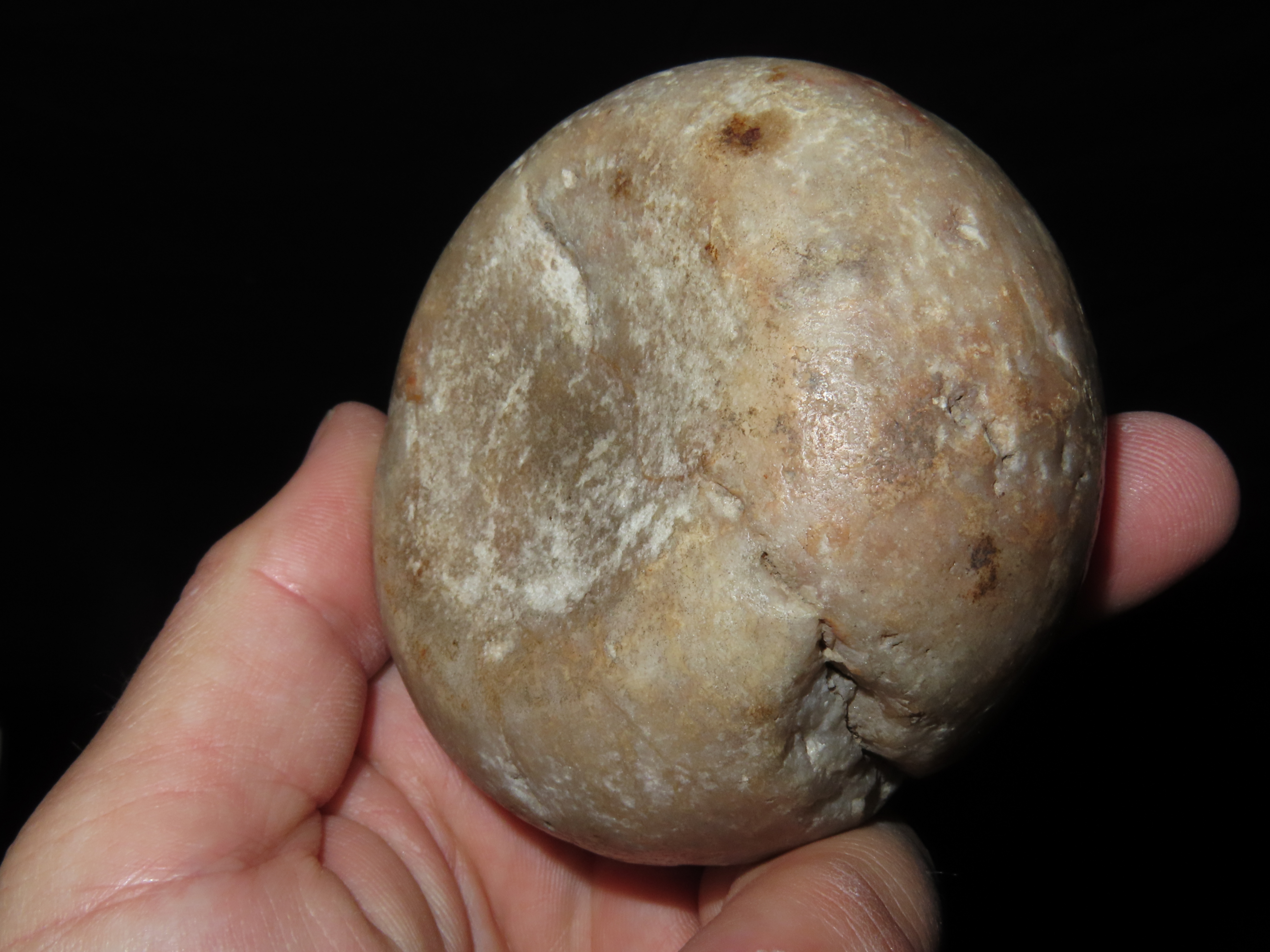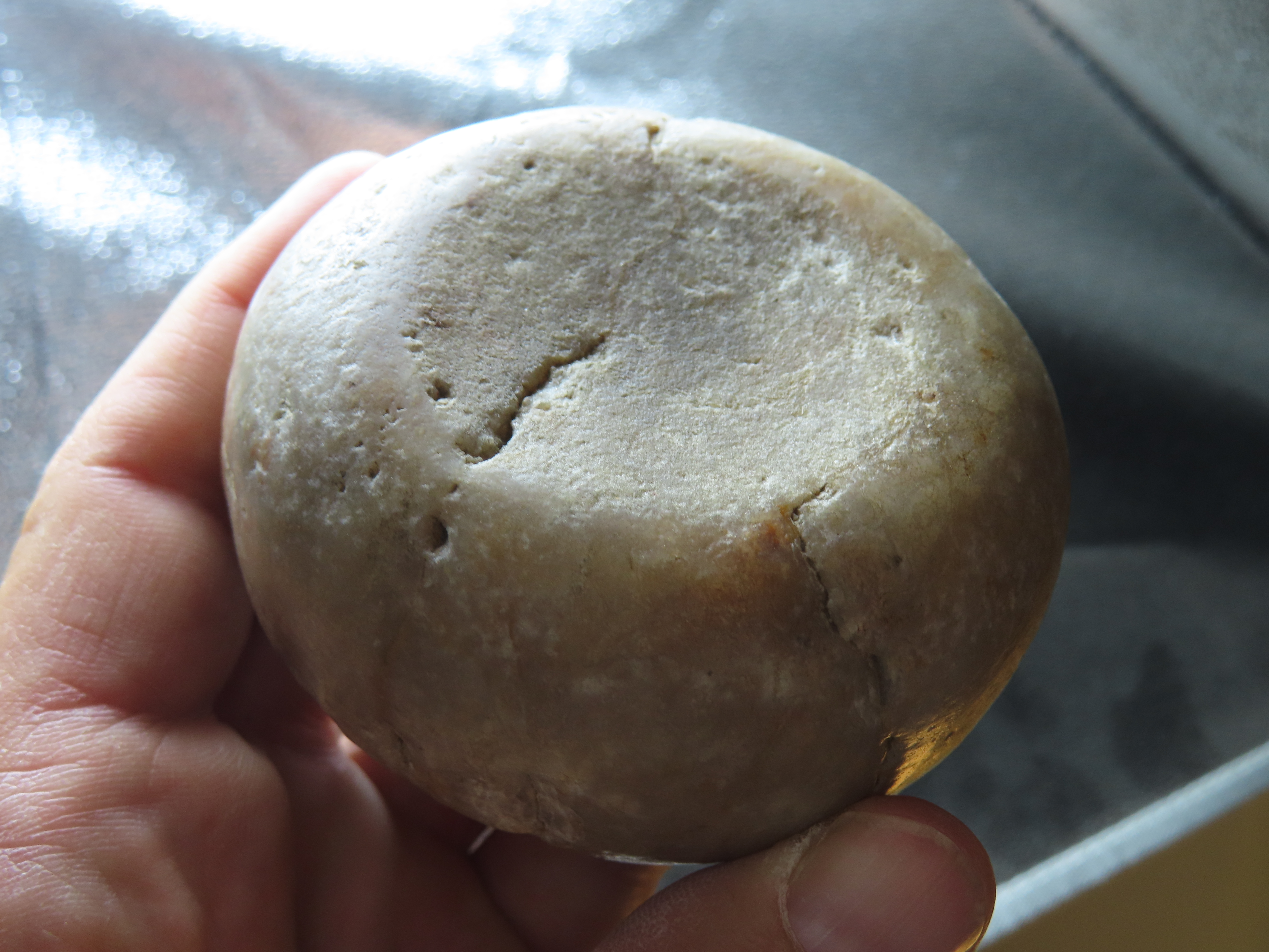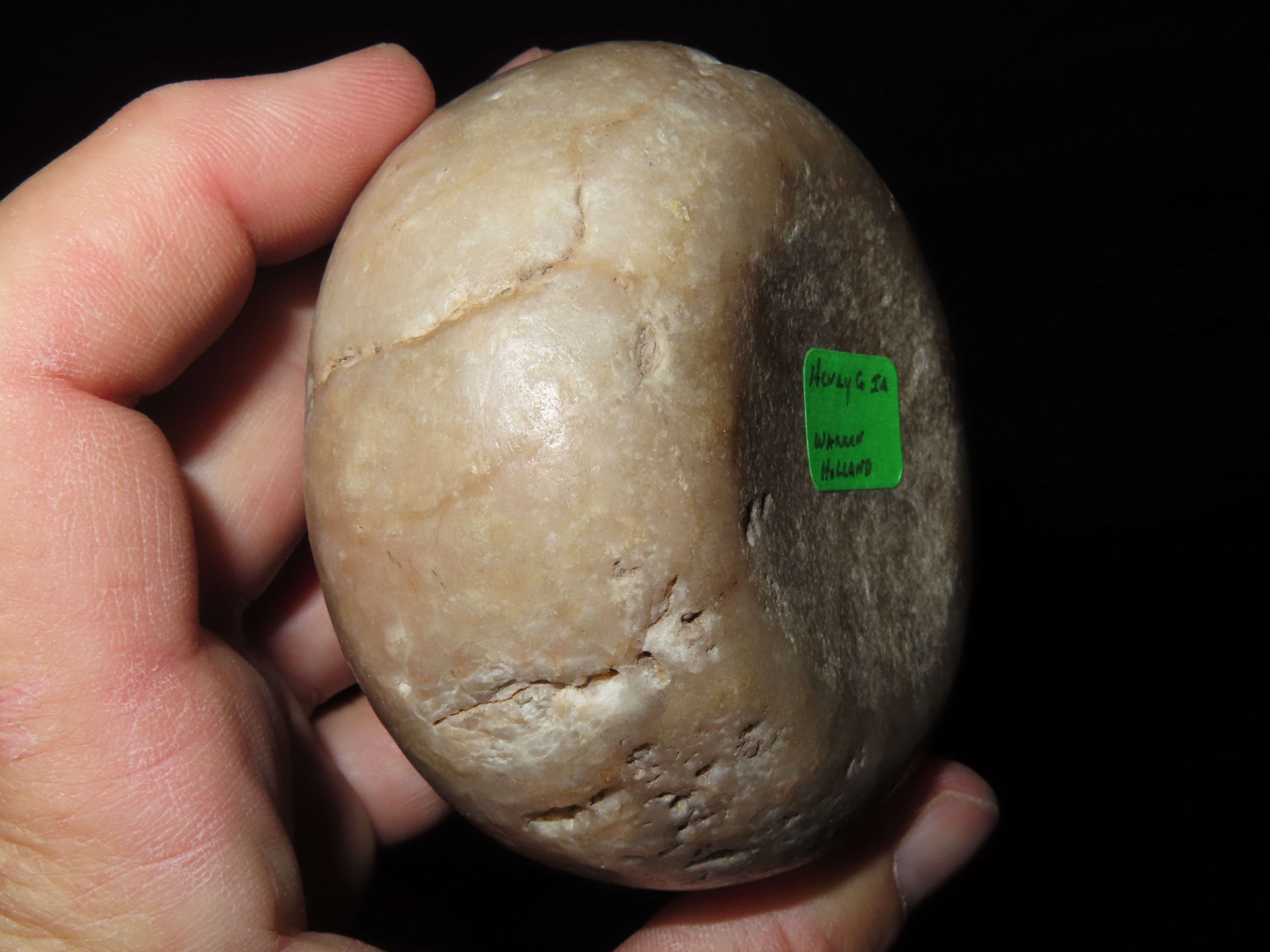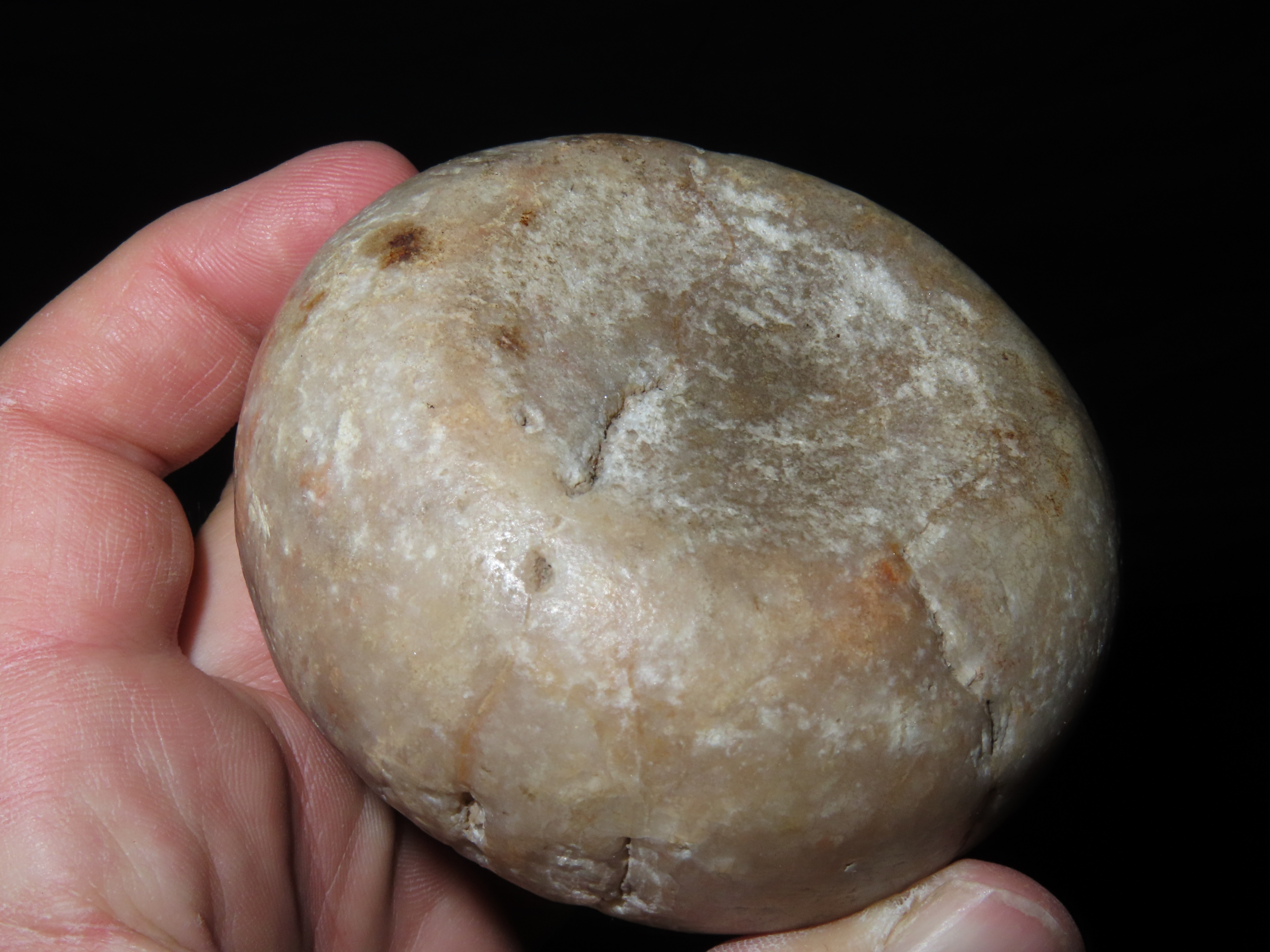3 1/8″ Jersey Bluff Discoidal, Motley COA, found in Henry Co., Iowa, Ex Jake Vahle Collection