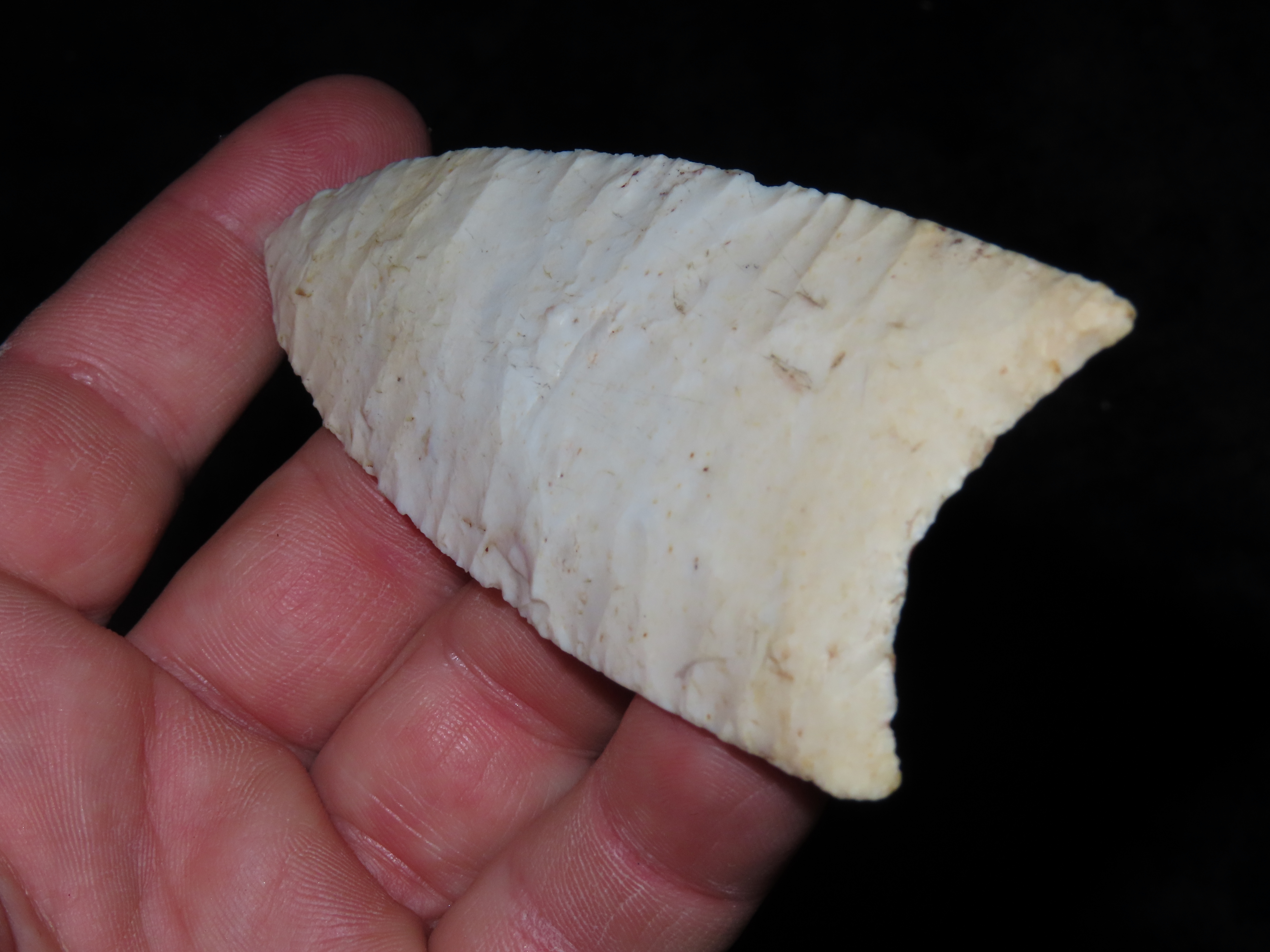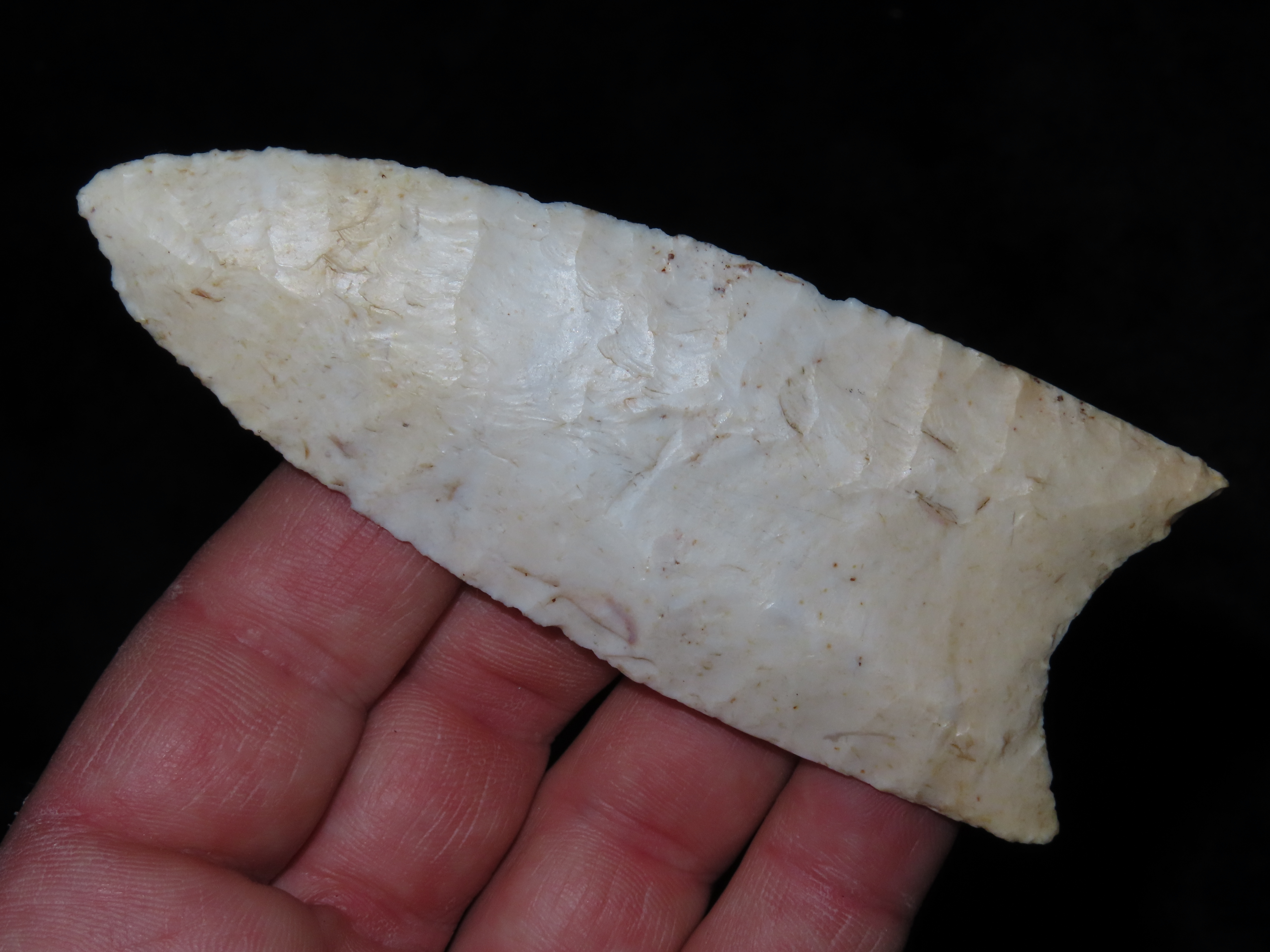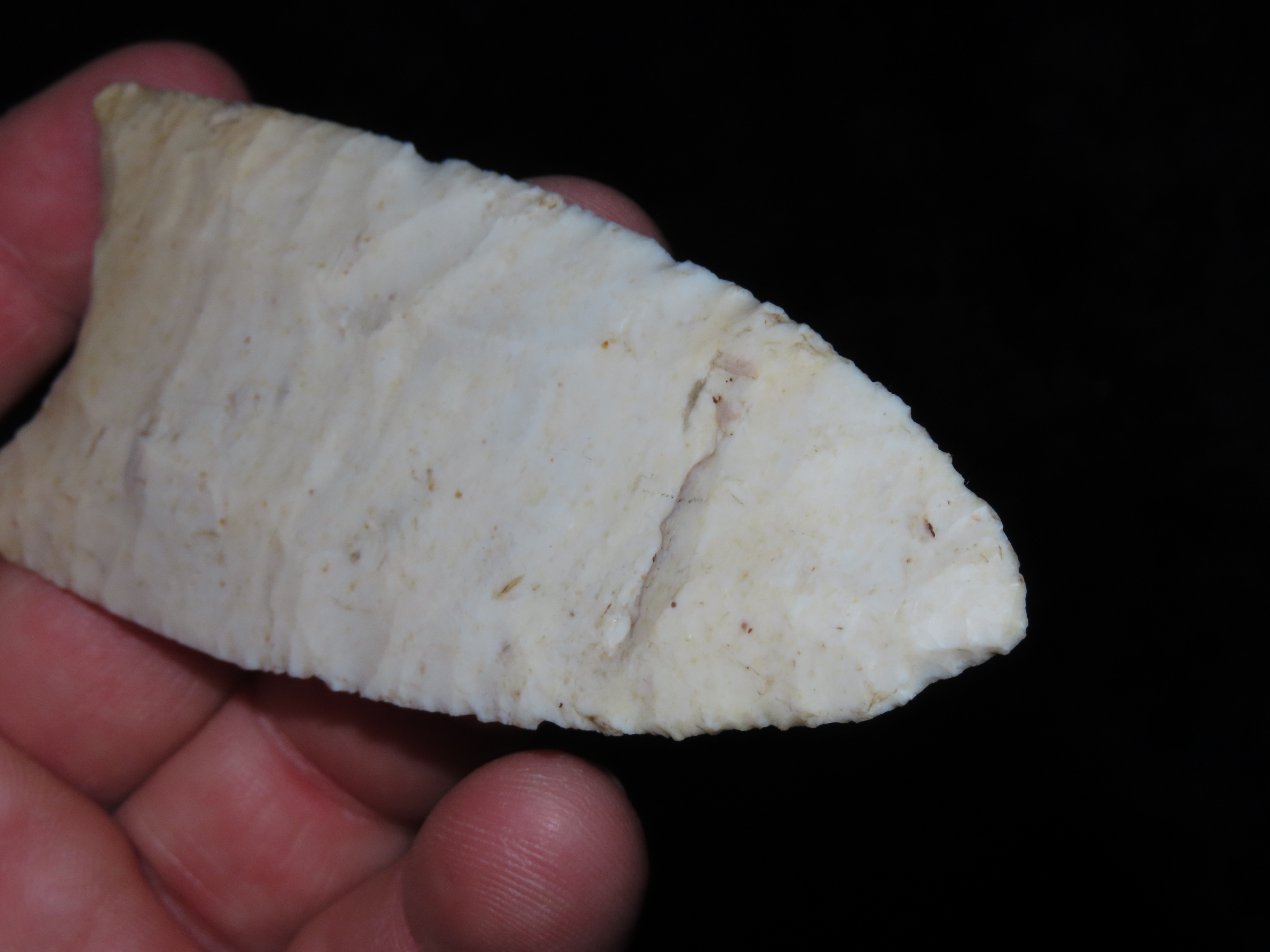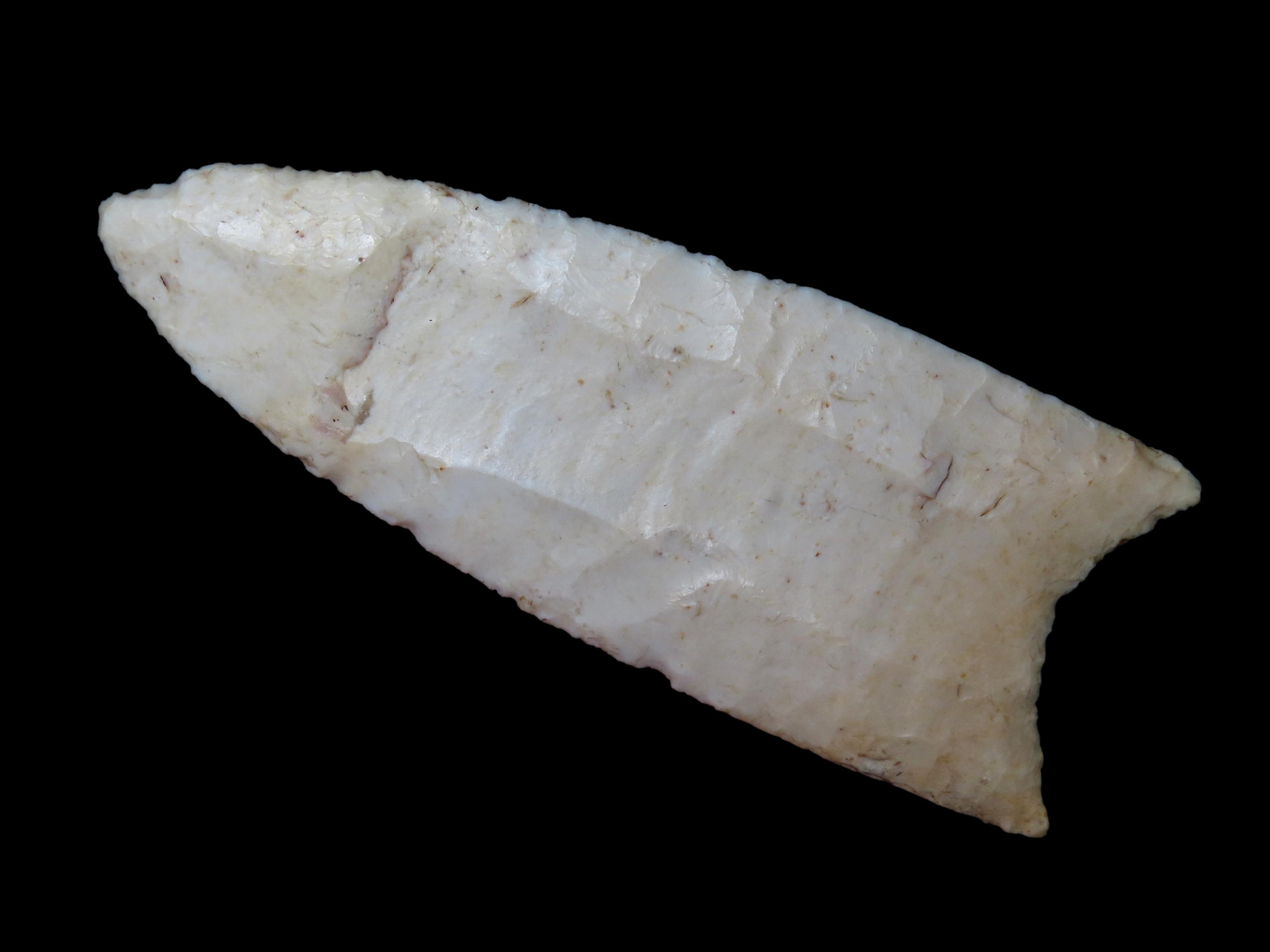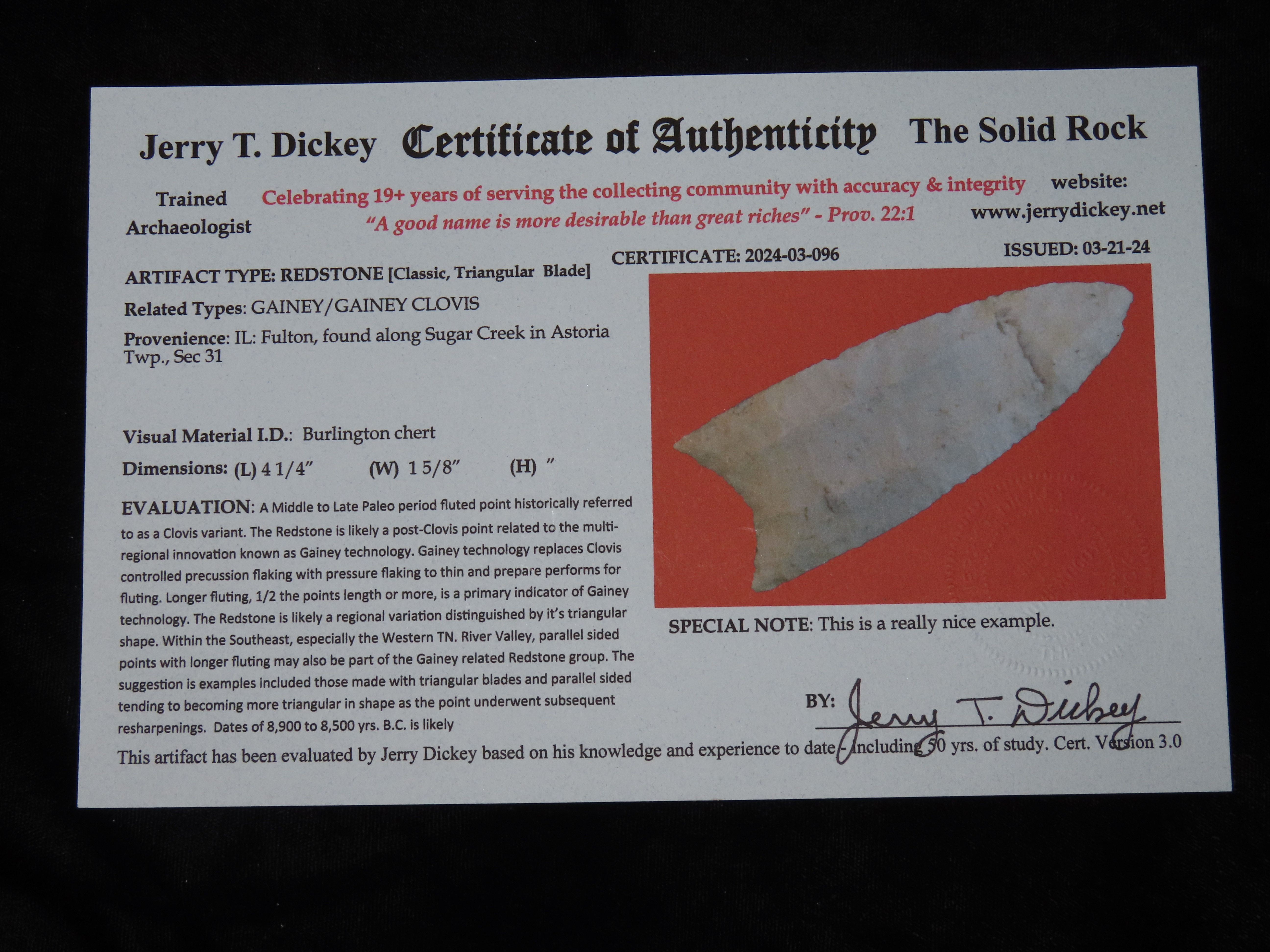 4 1/4″ Redstone, Dickey COA, Amazing Fluting, found in Fulton Co., Illinois along the Sugar Creek