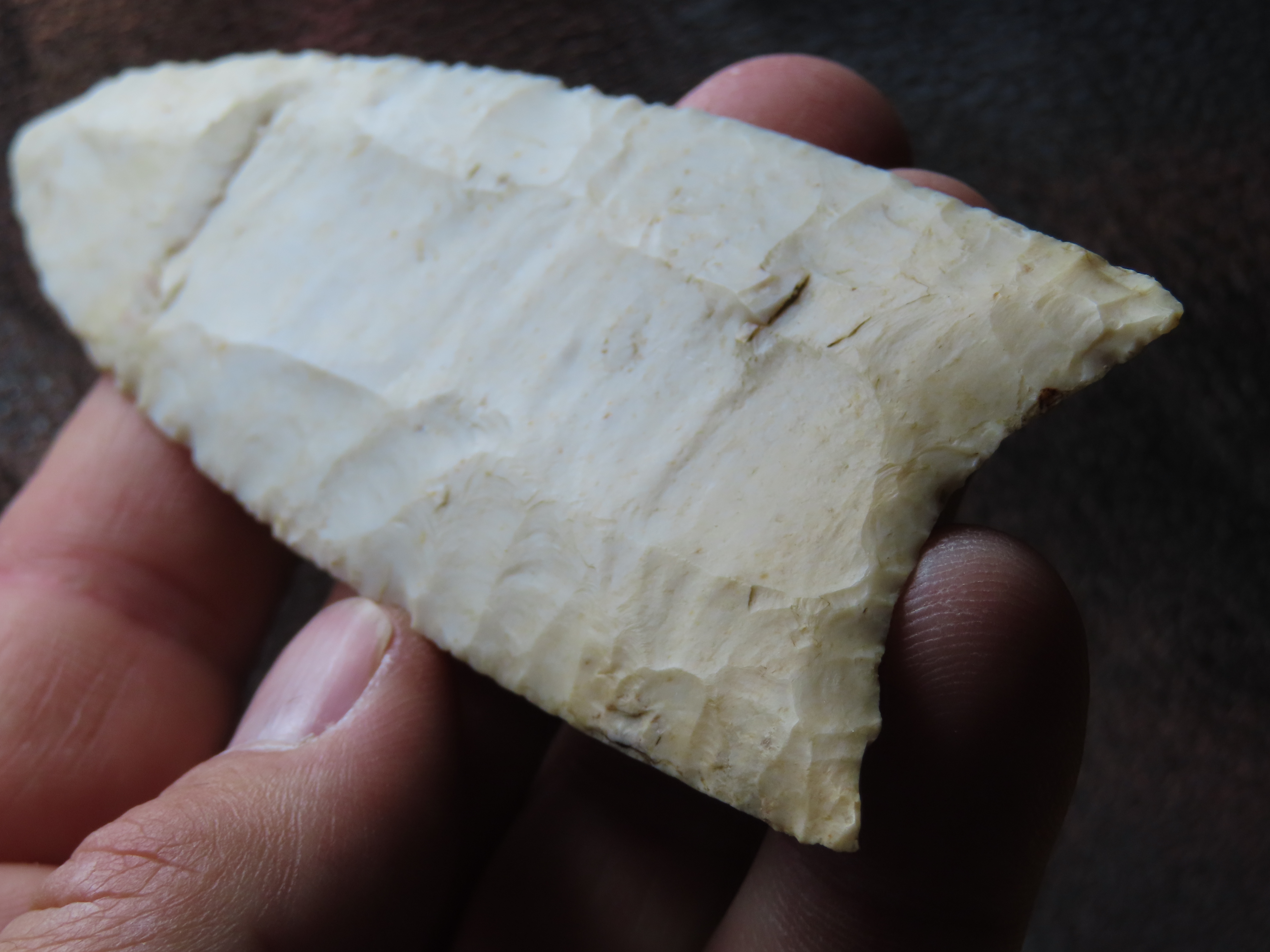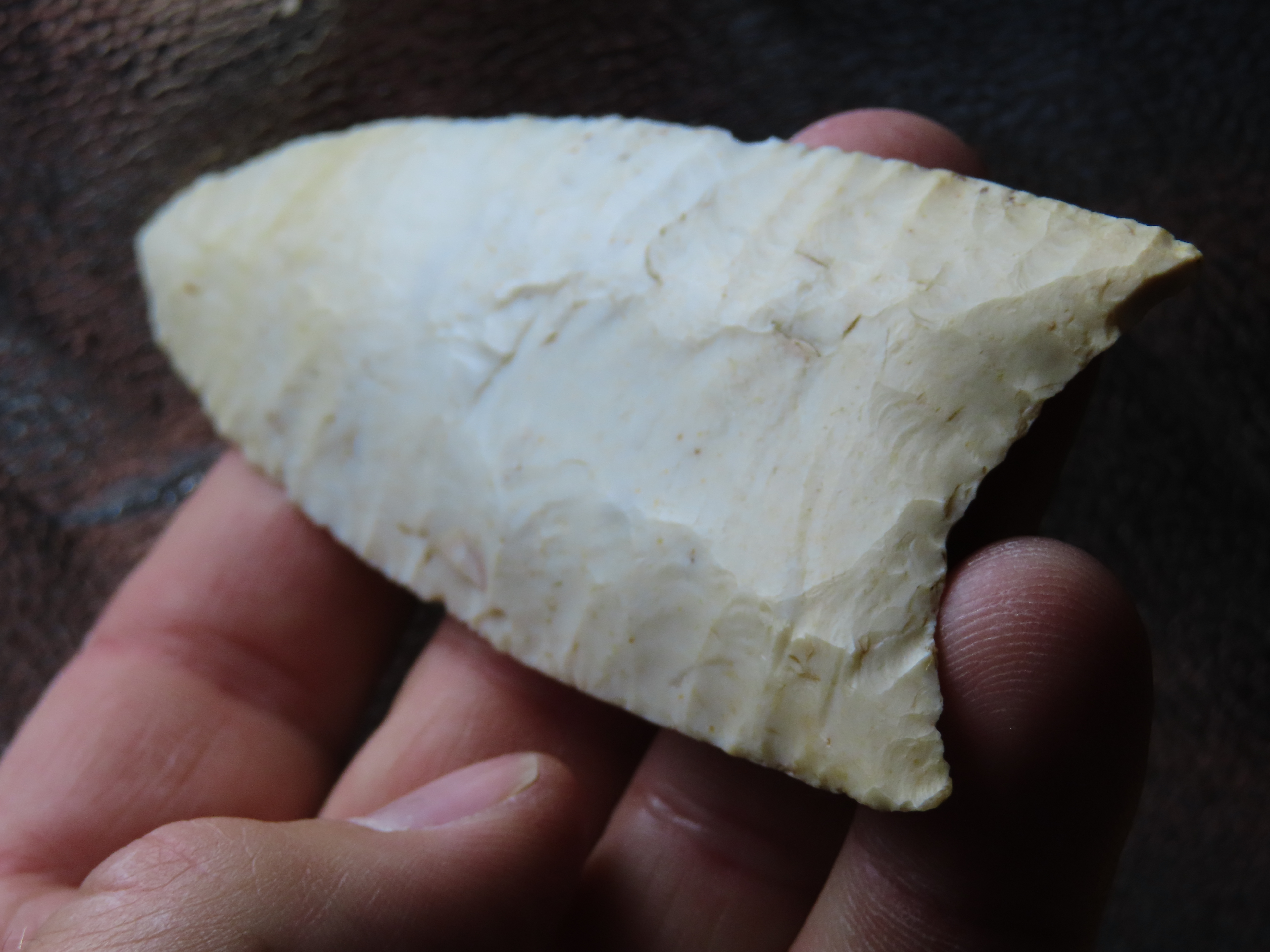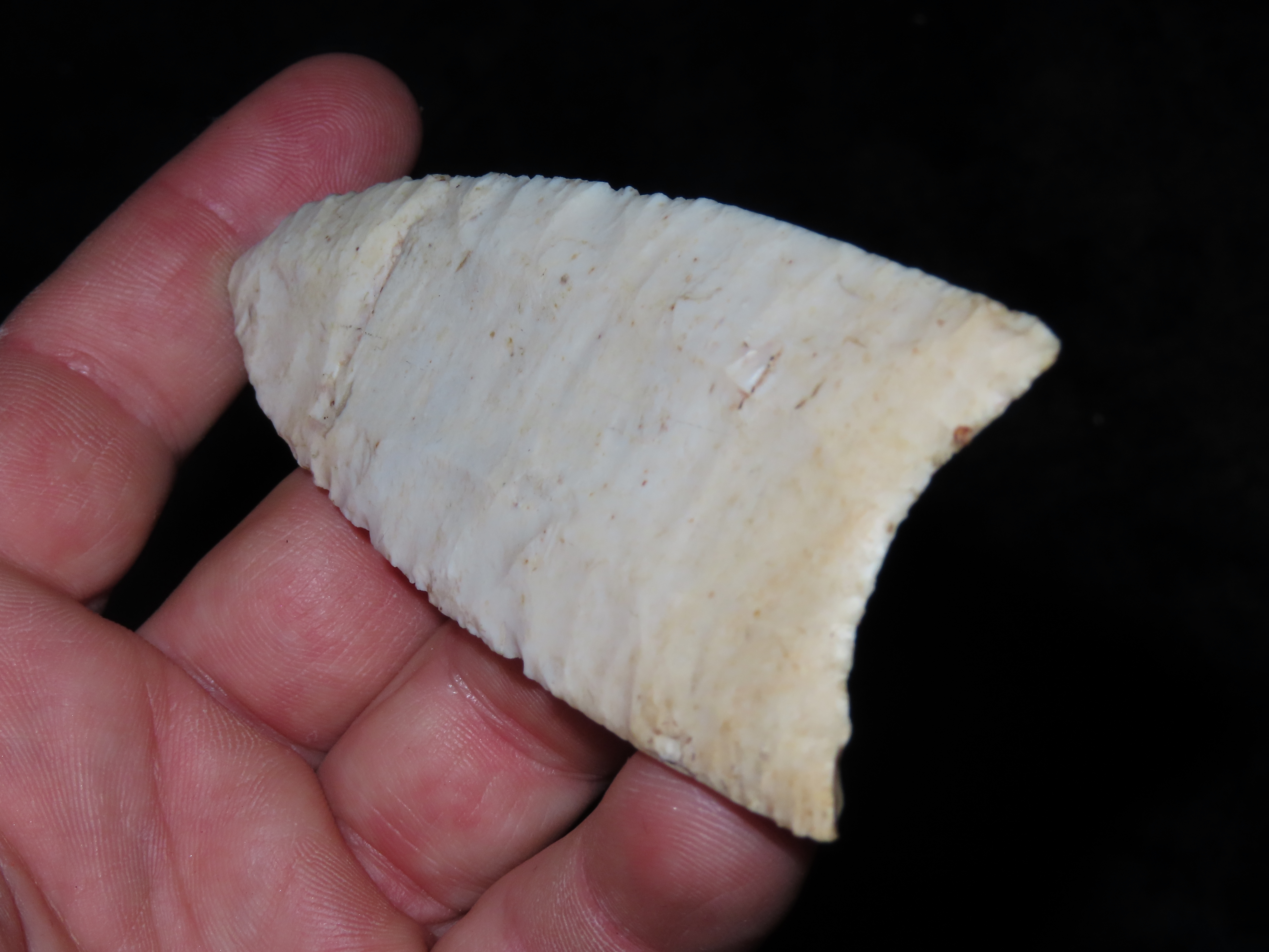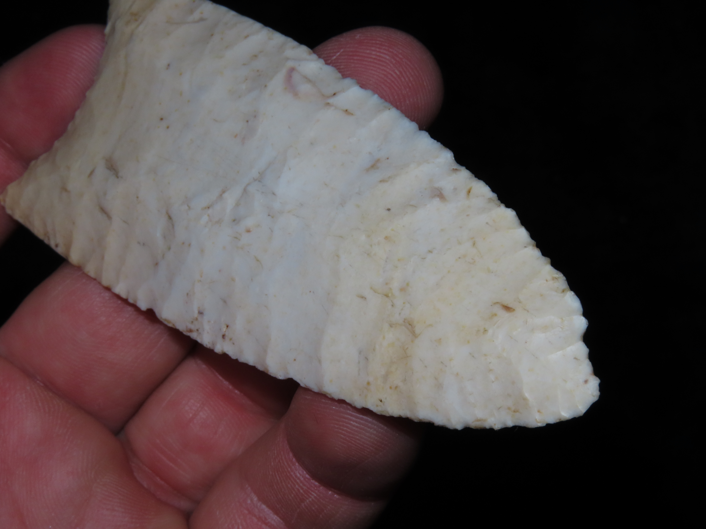 4 1/4″ Redstone, Dickey COA, Amazing Fluting, found in Fulton Co., Illinois along the Sugar Creek