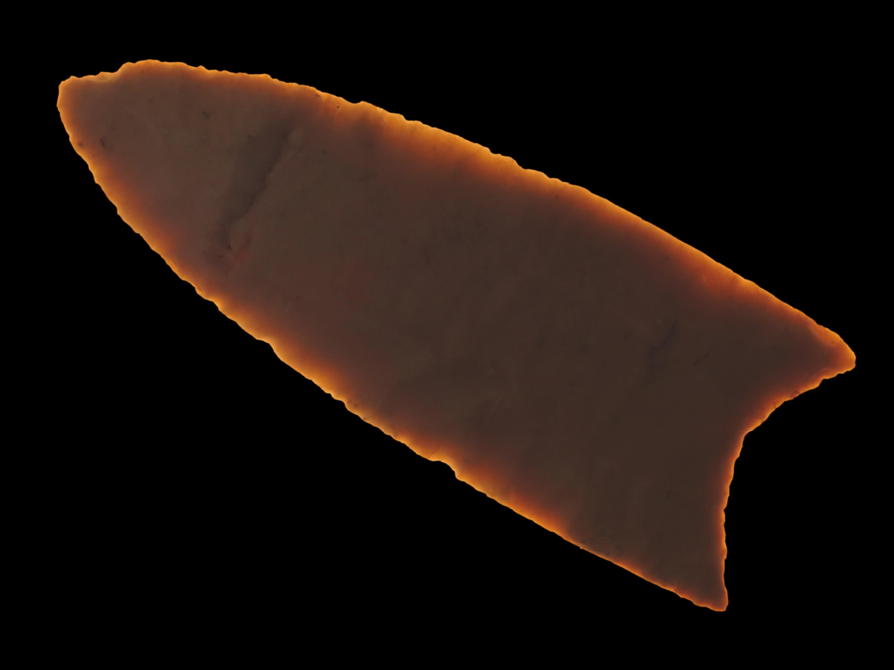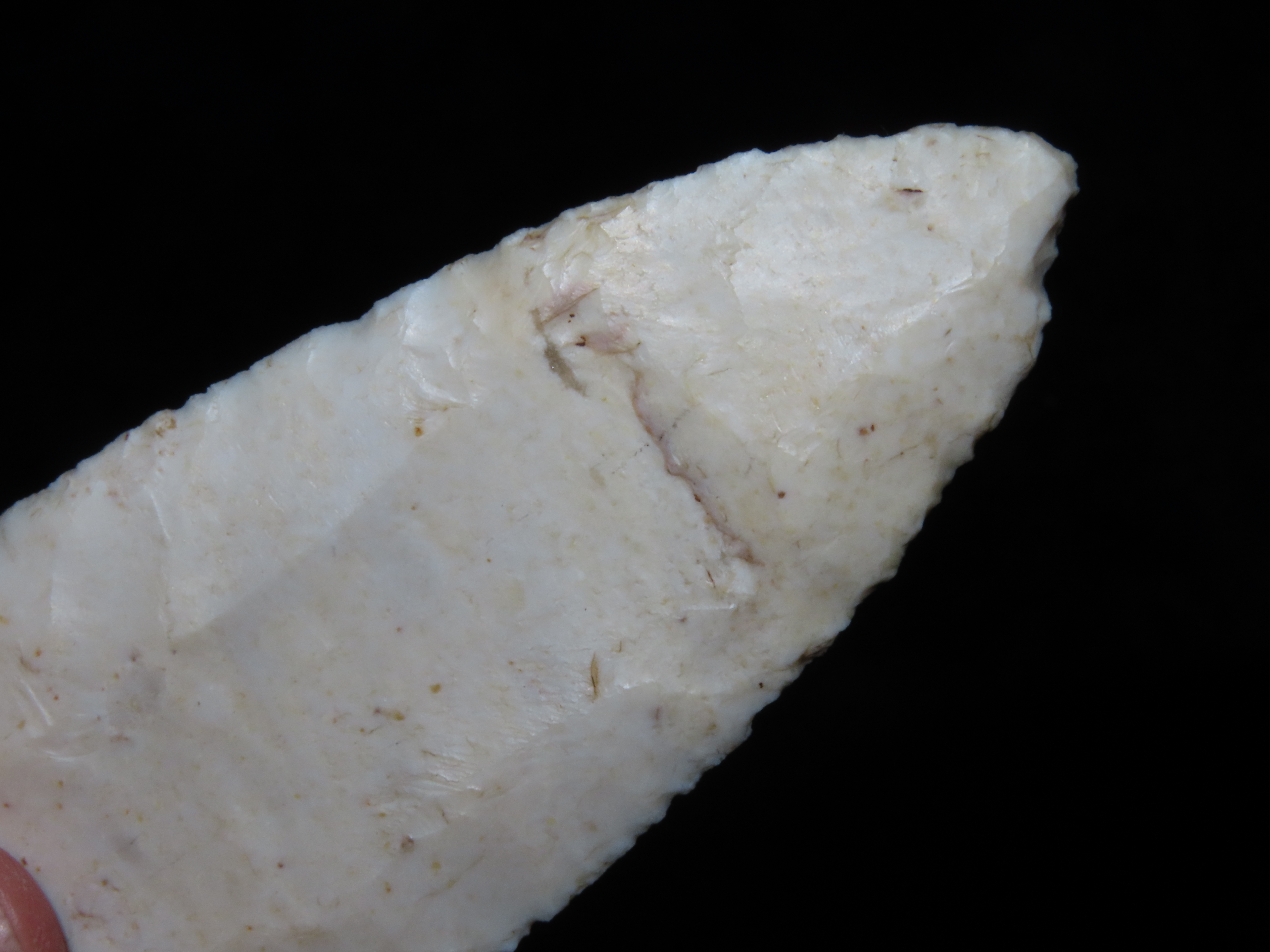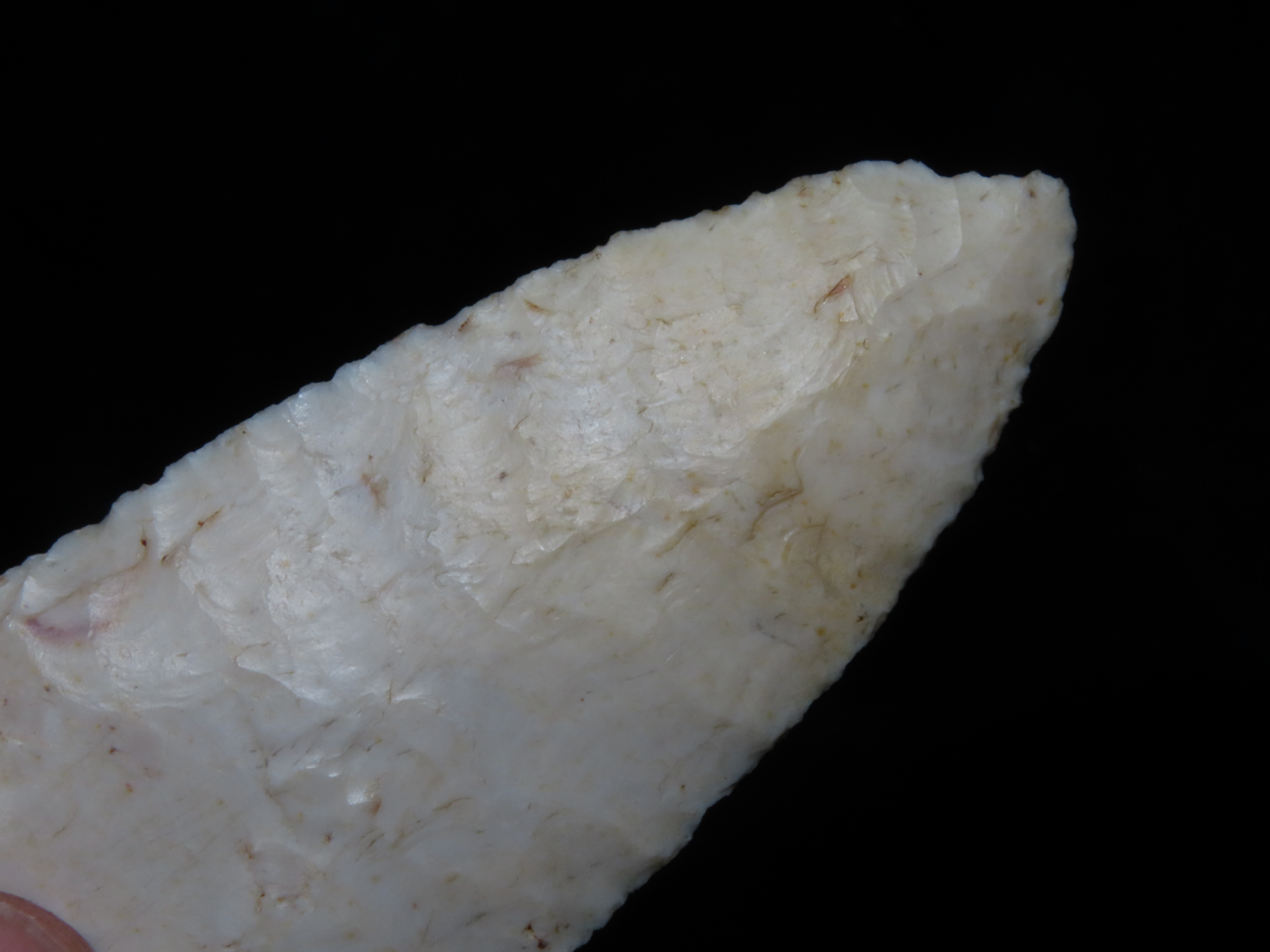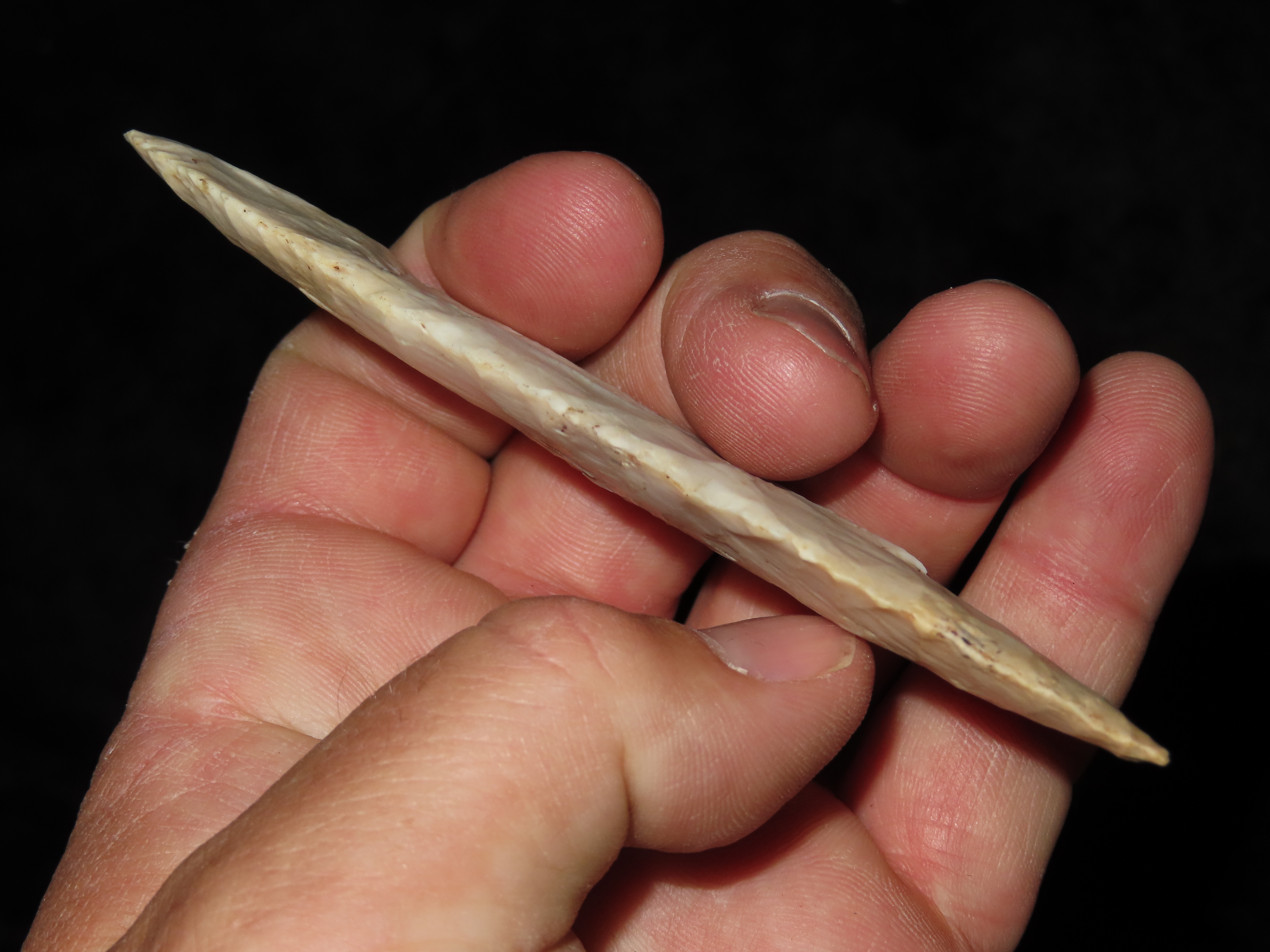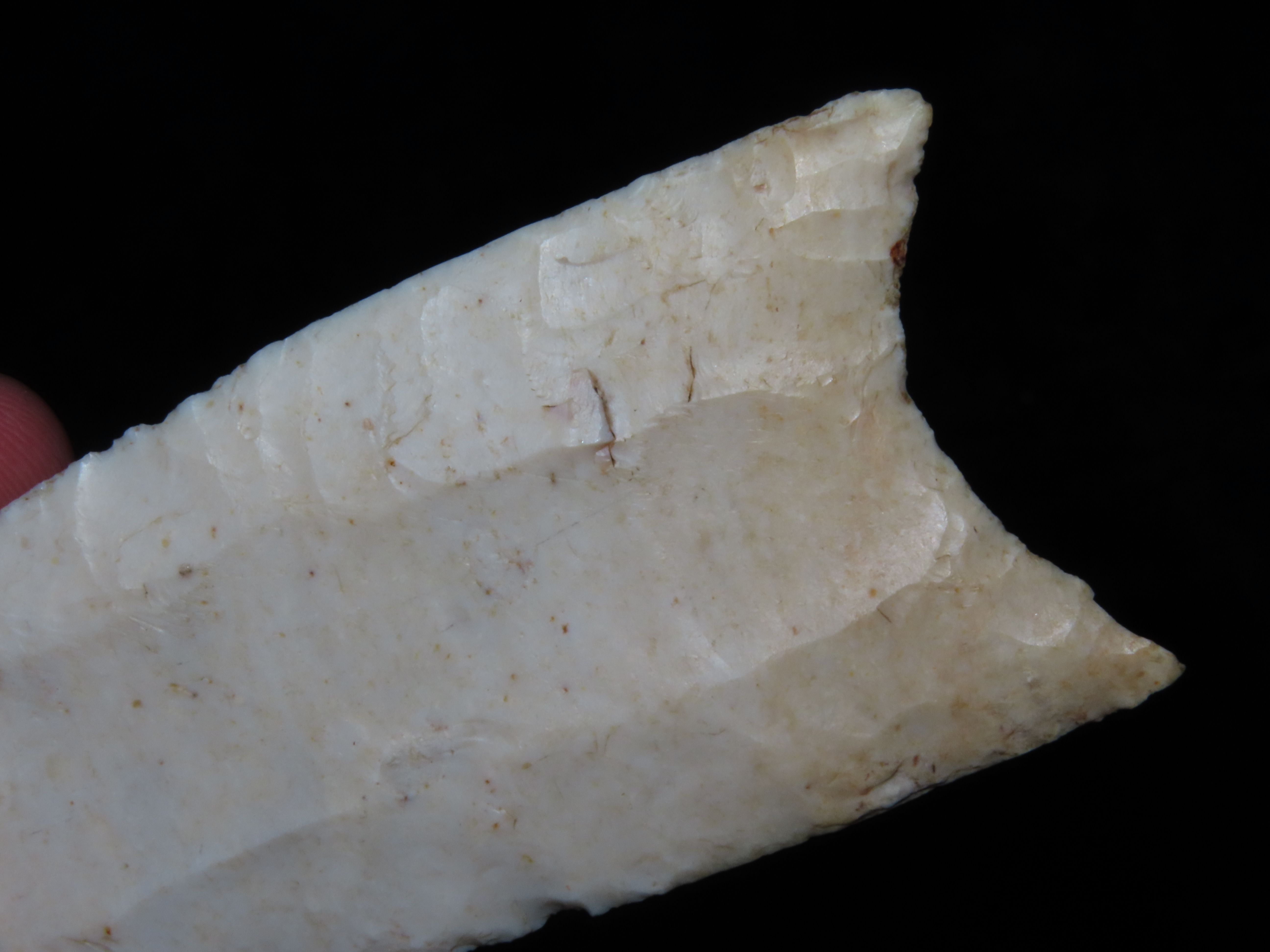 4 1/4″ Redstone, Dickey COA, Amazing Fluting, found in Fulton Co., Illinois along the Sugar Creek