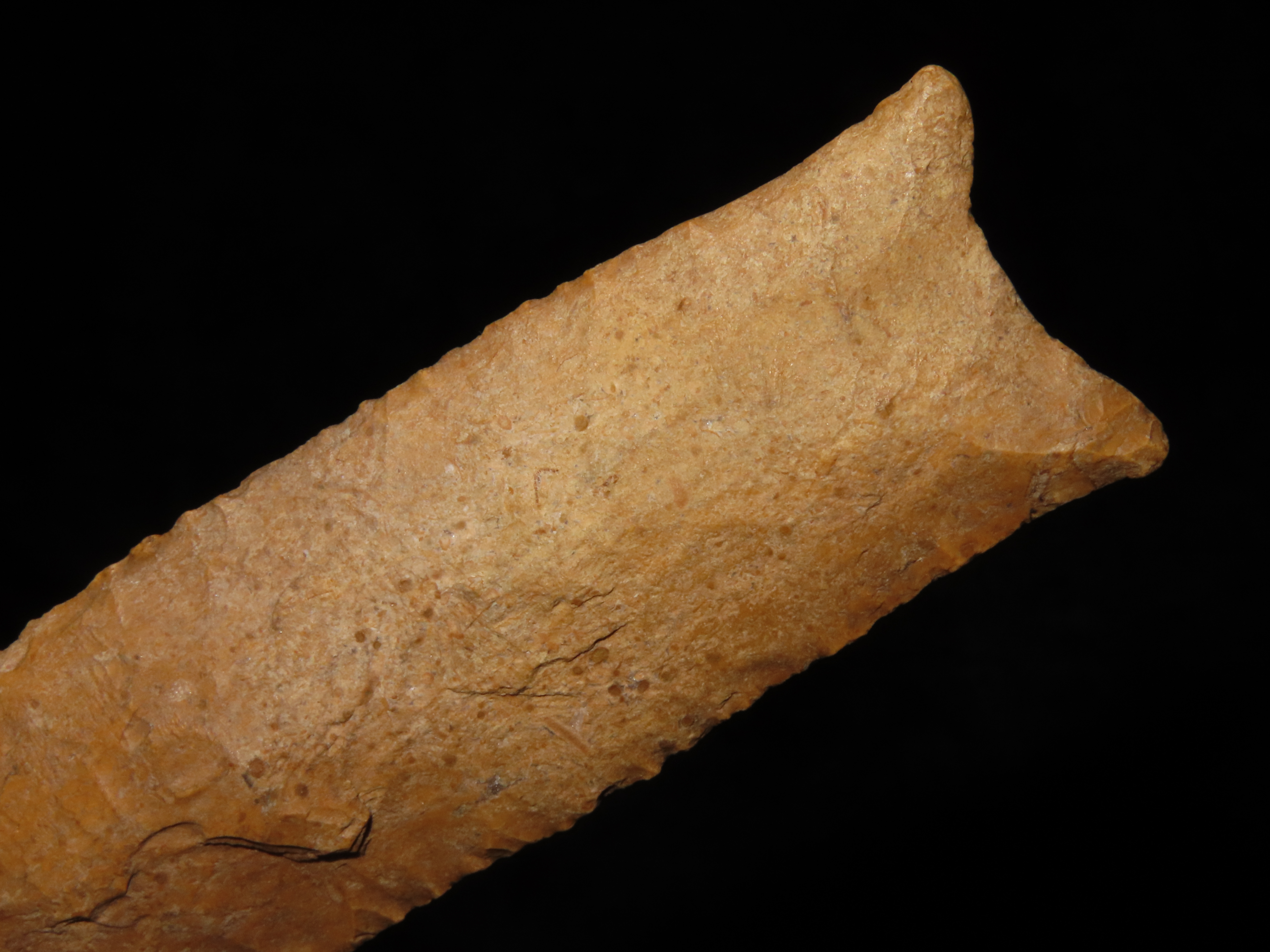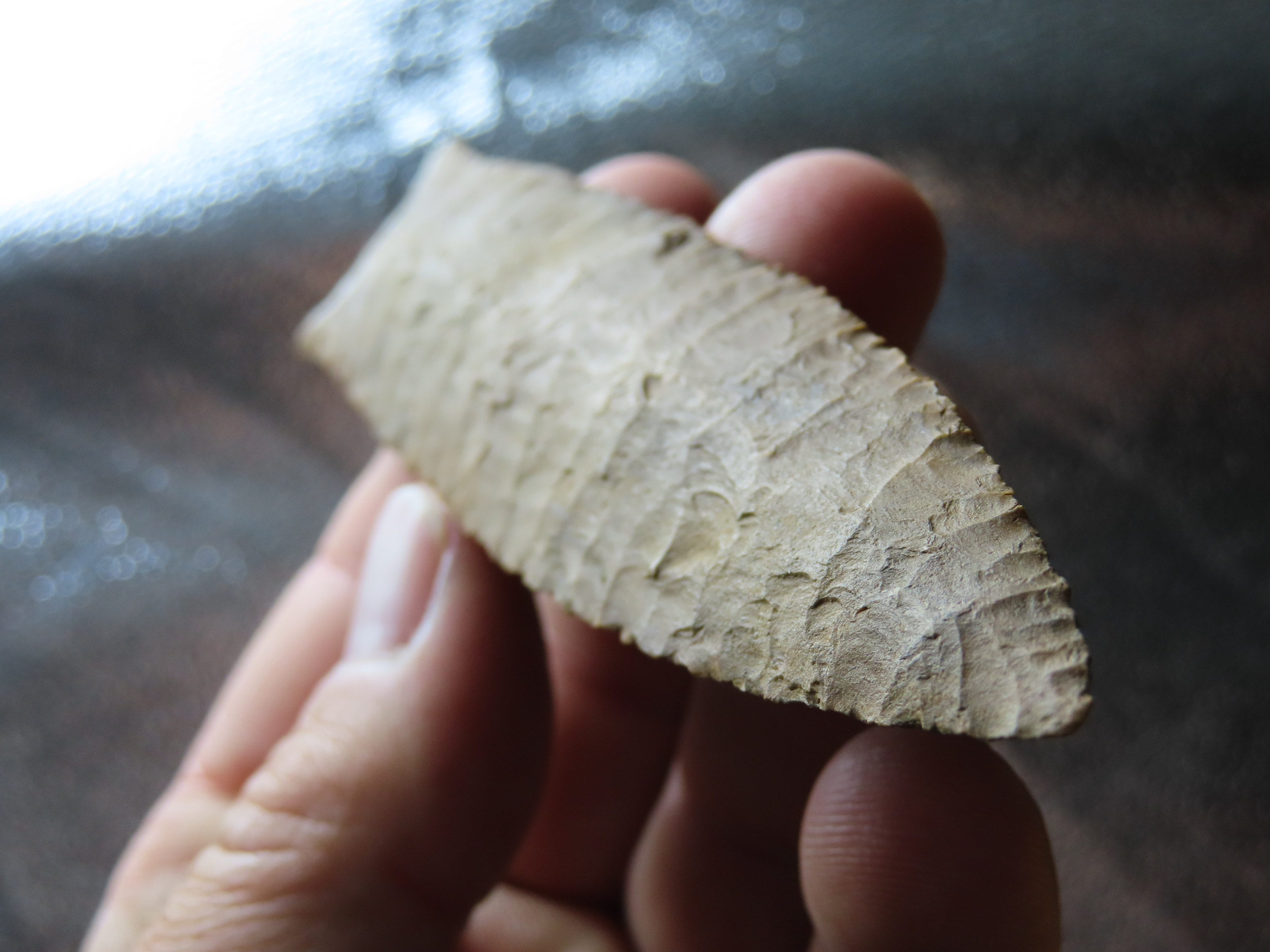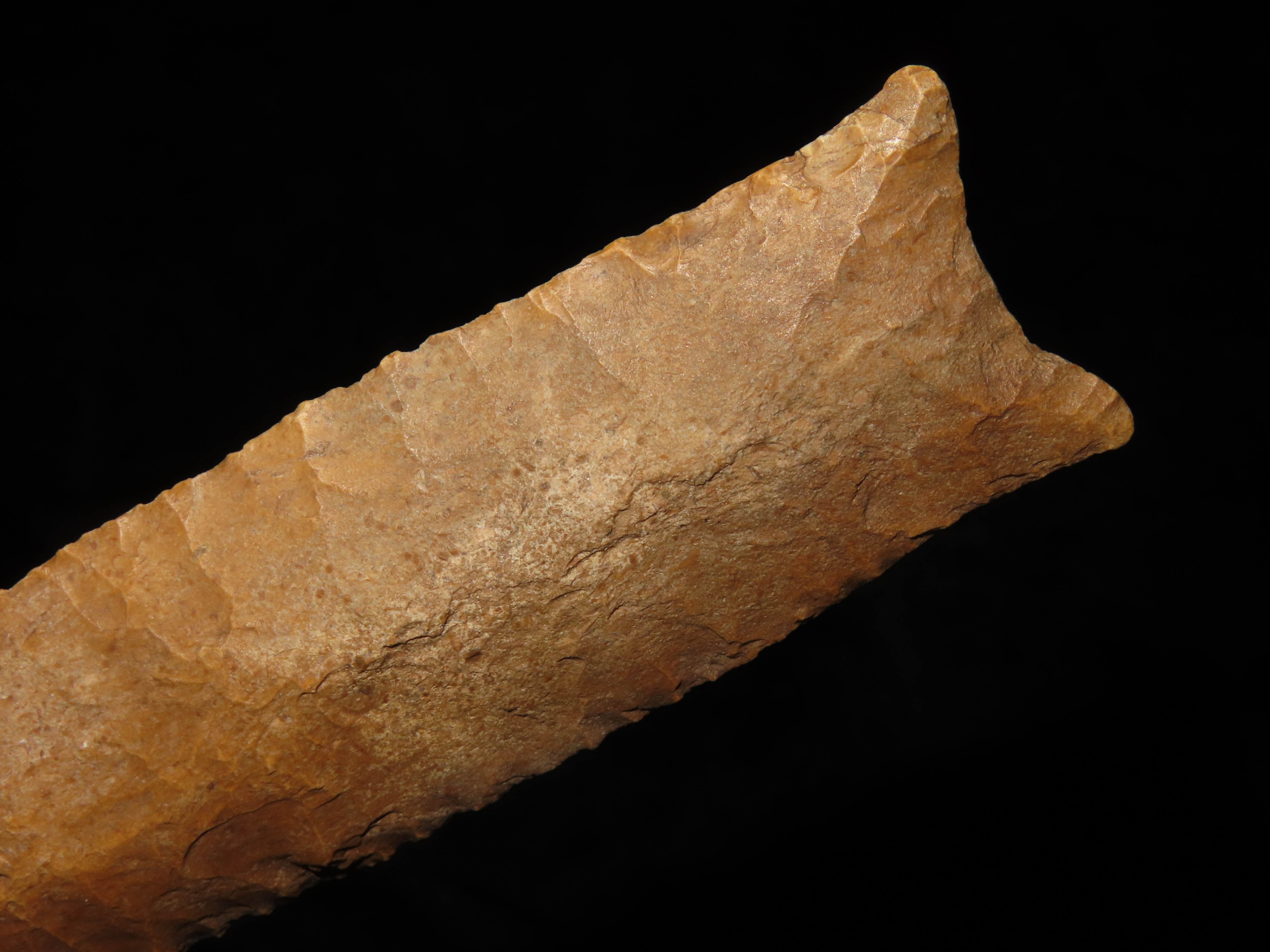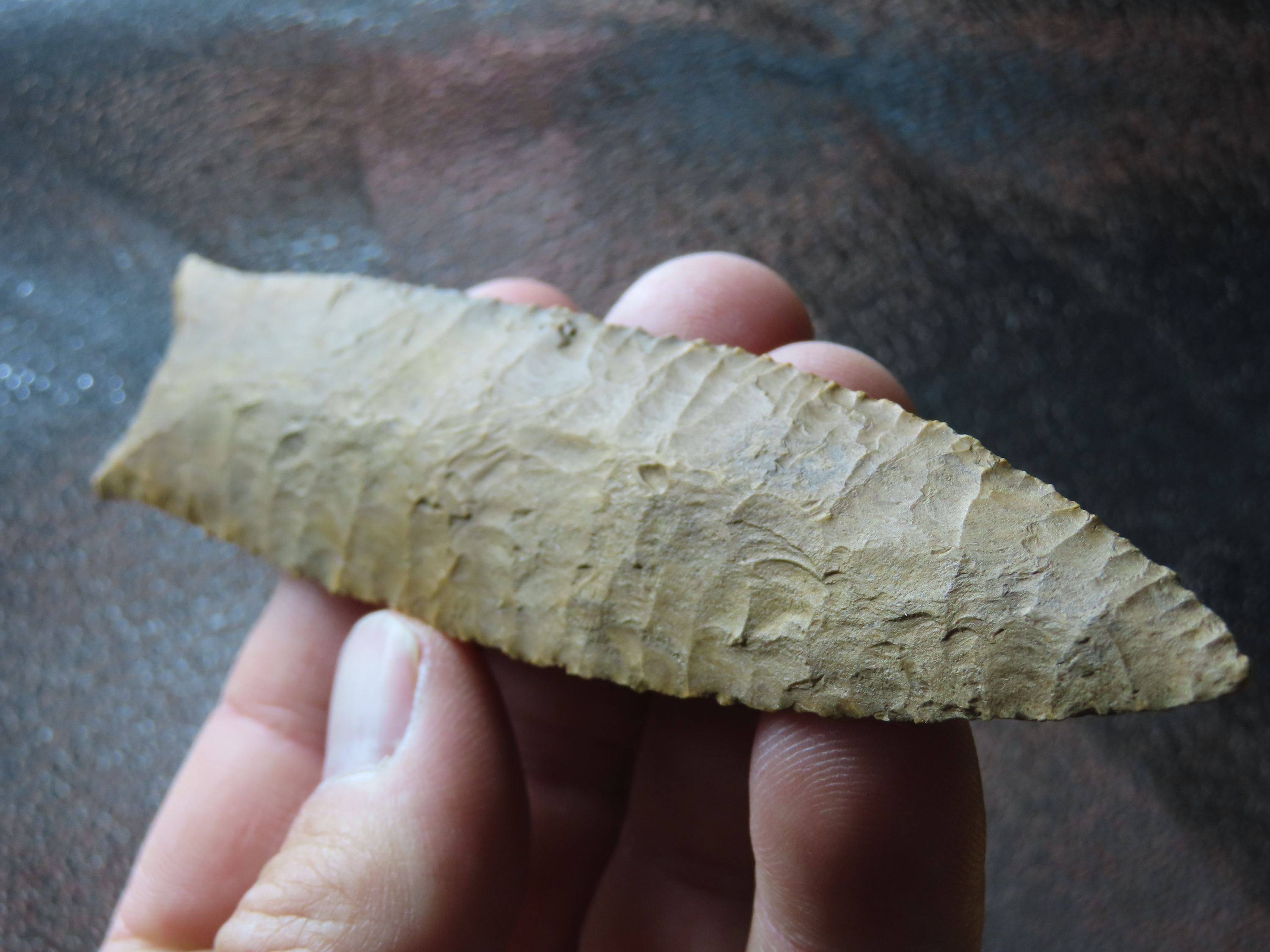 4 7/8″ Pike County Dalton, 2xCOA-Stermer/Dickey, found in Monroe Co., Illinois, Outstanding Creek Stained Chert material, Exceptional Flaking throughout. Ex Jake Vahle Collection, Quincy, Illinois