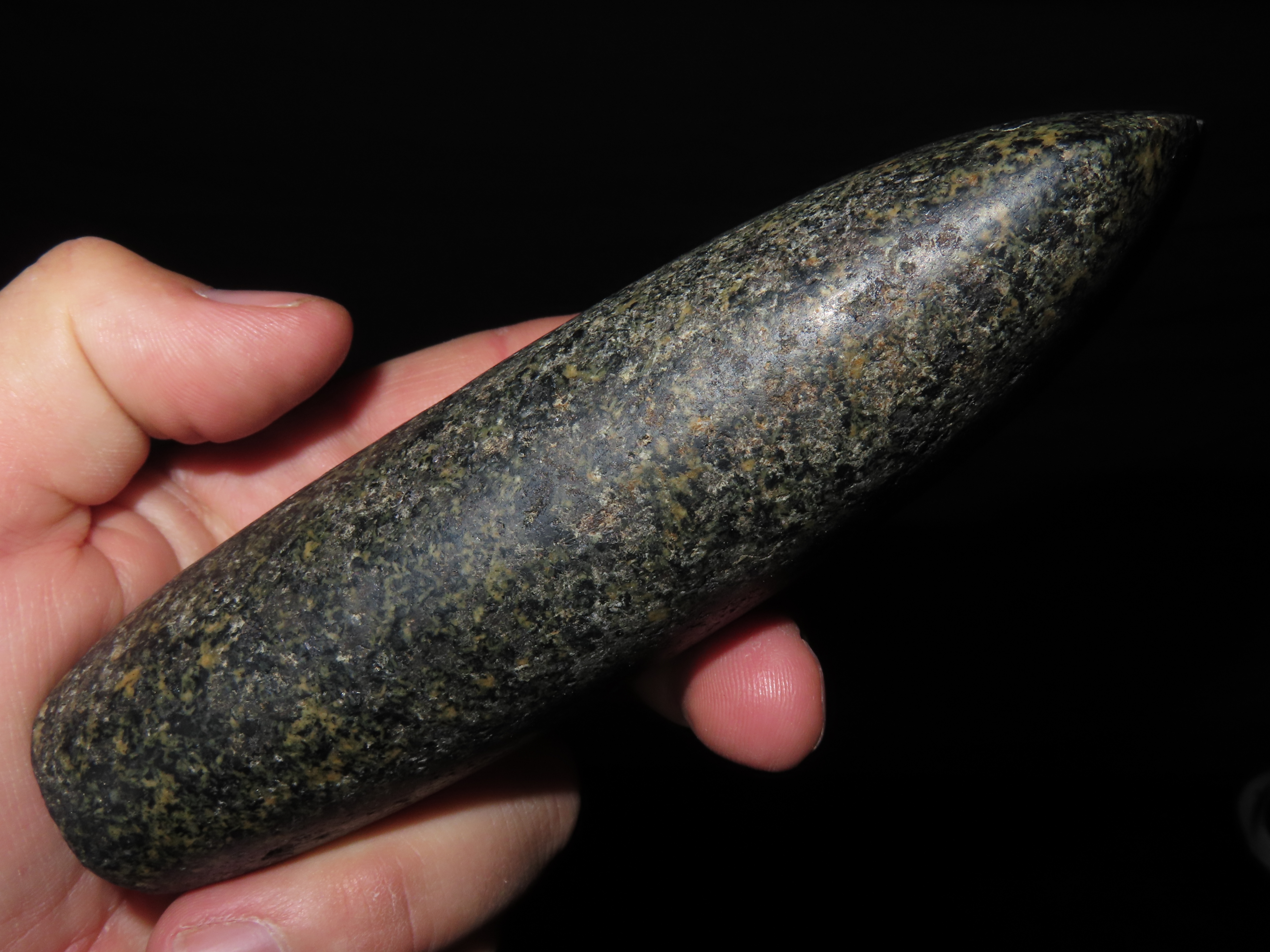 5 1/2″ Granite Flared Bit Celt, 2xCOA-Dickey/Motley, found in Adams Co., Illinois, purchased from original finder in 2021, Ex Jake Vahle Collection, Quincy, Illinois