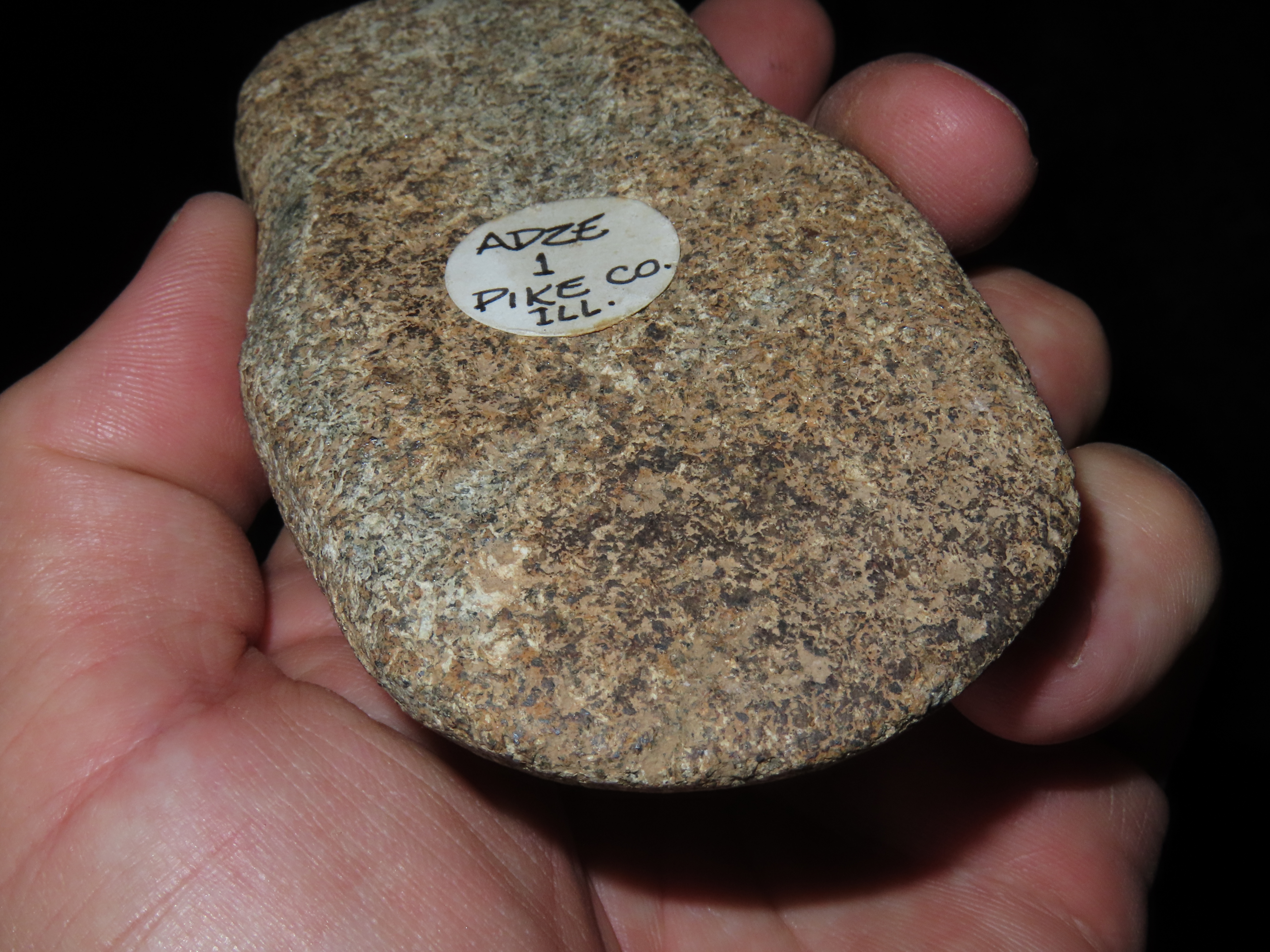 4.1/2″ Hardstone Humped Back Adze, Found by John Steinbaker in Pike County Illinois, Ex Tyson Steinbaker / Jake Vahle