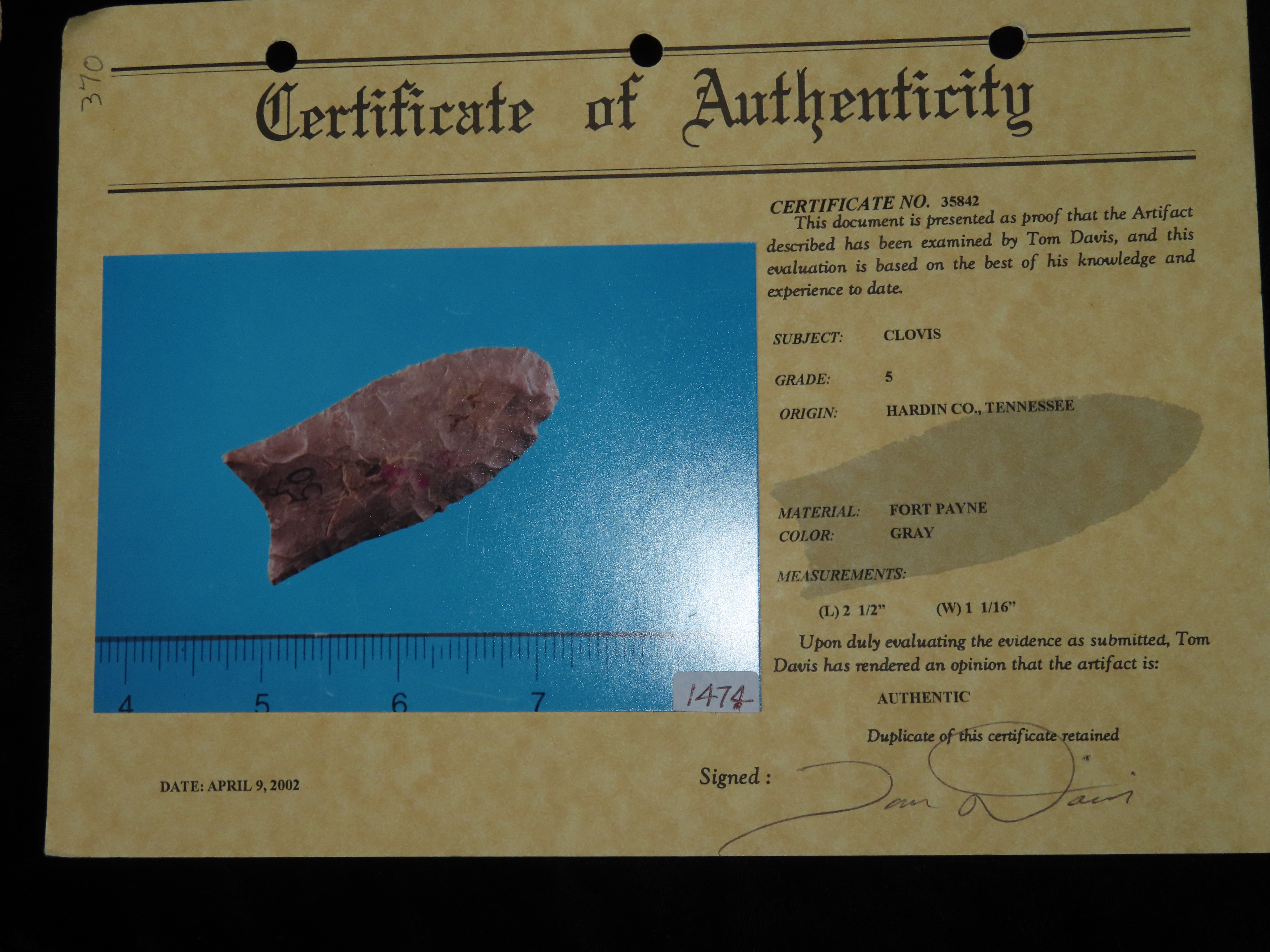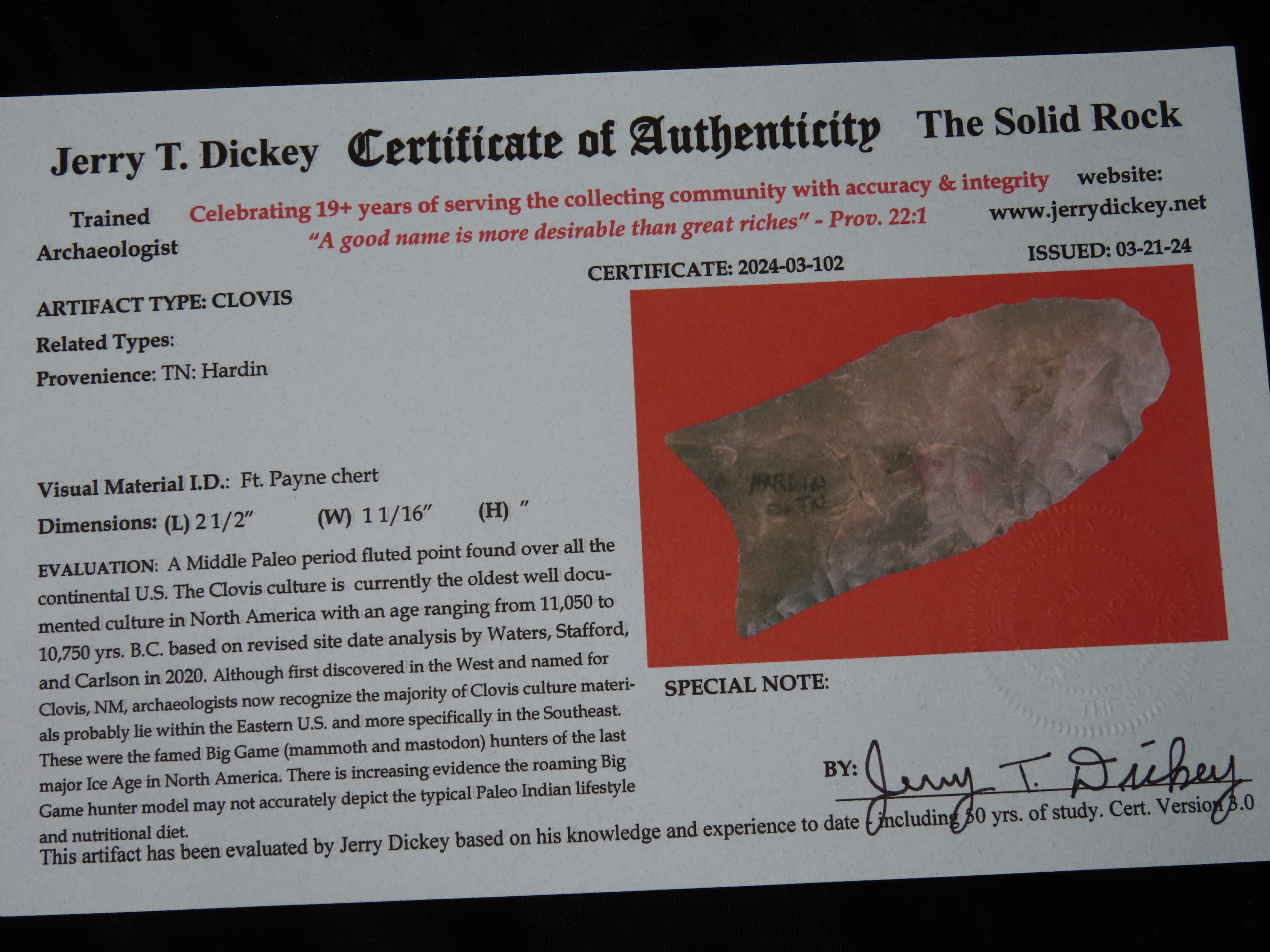 2.1/2″ Fluted Clovis, 2x COA, Dickey / Davis, Hardin CO Tenn.