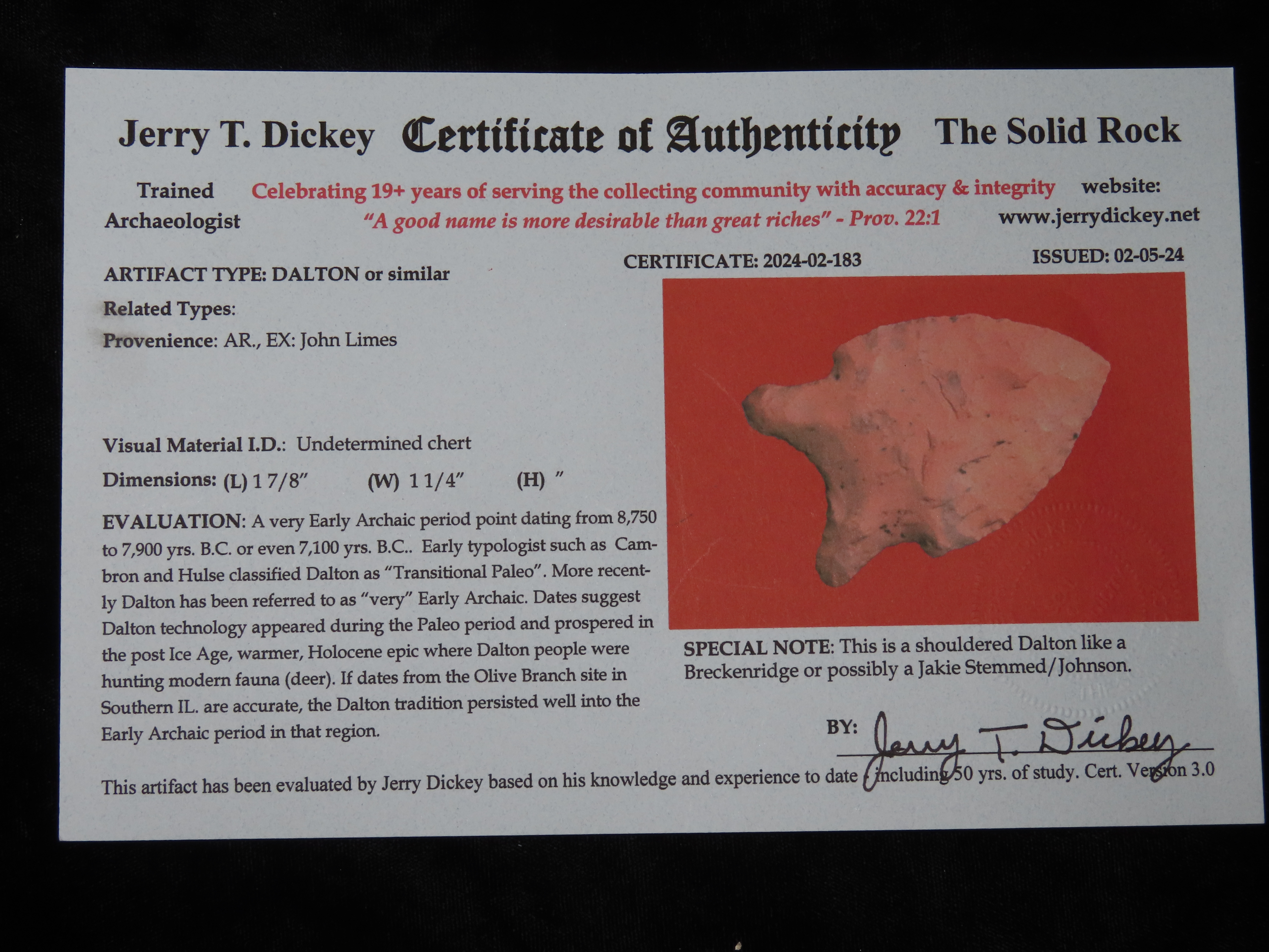 1.7/8″ Dalton, Dickey COA, Outsatnding Colors, Likely Arkansas, Ex John Limes.
