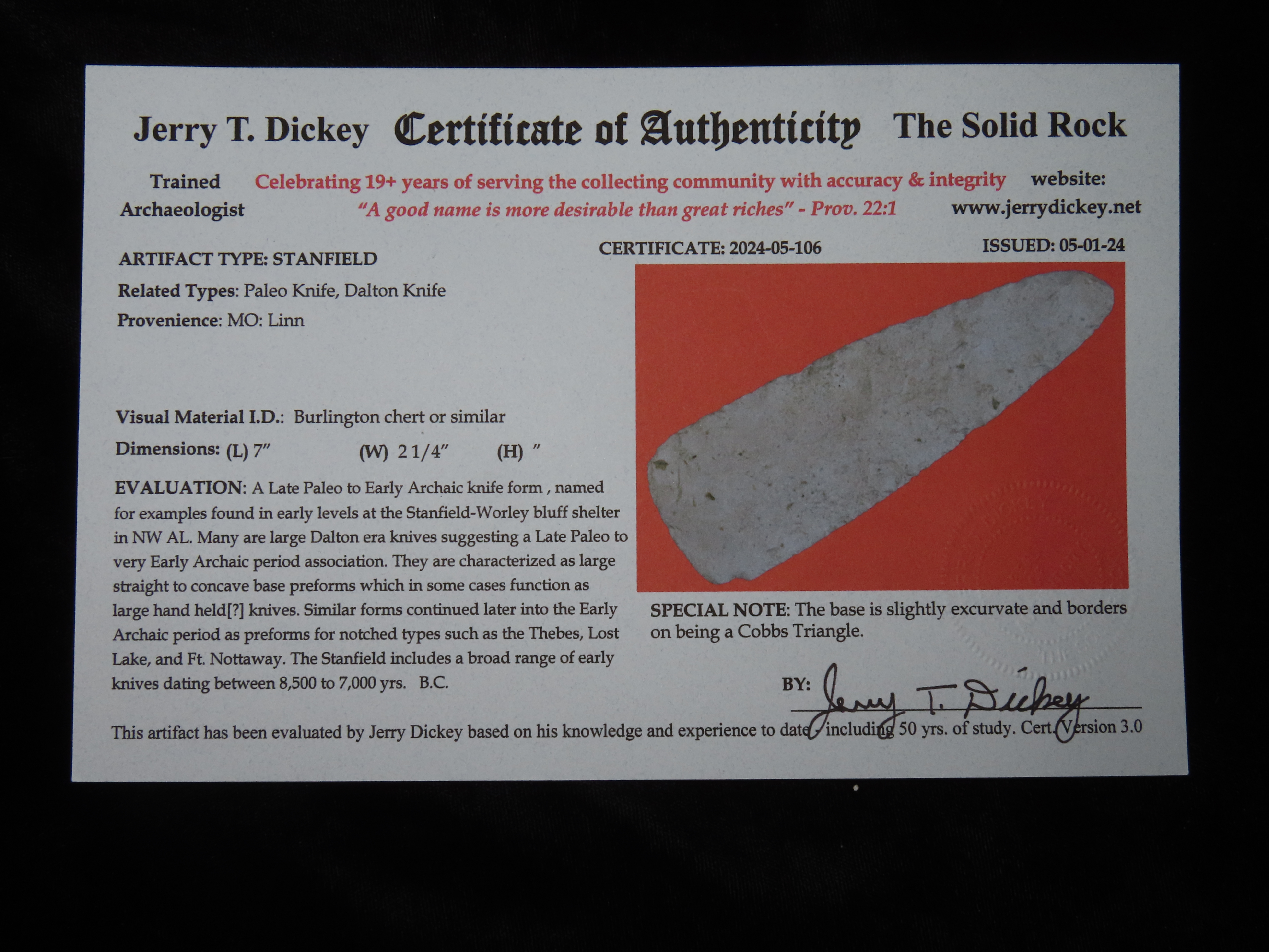7" Stanfield COA, 2x COA Dickey / Motley, Linn CO MO Ex Jake Vahle