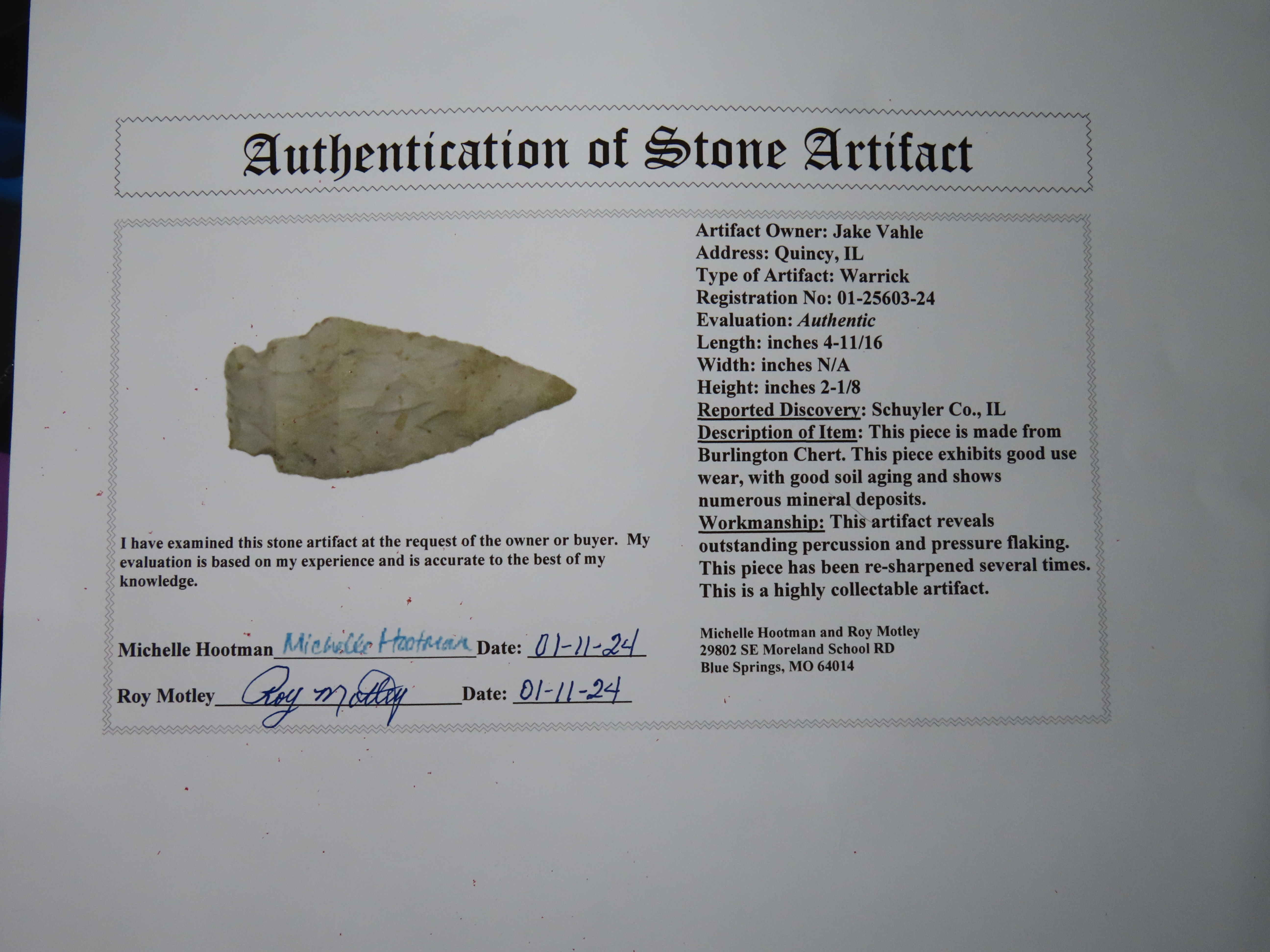 4.11/16″ Warrick, Motley COA, Schuyler CO IL