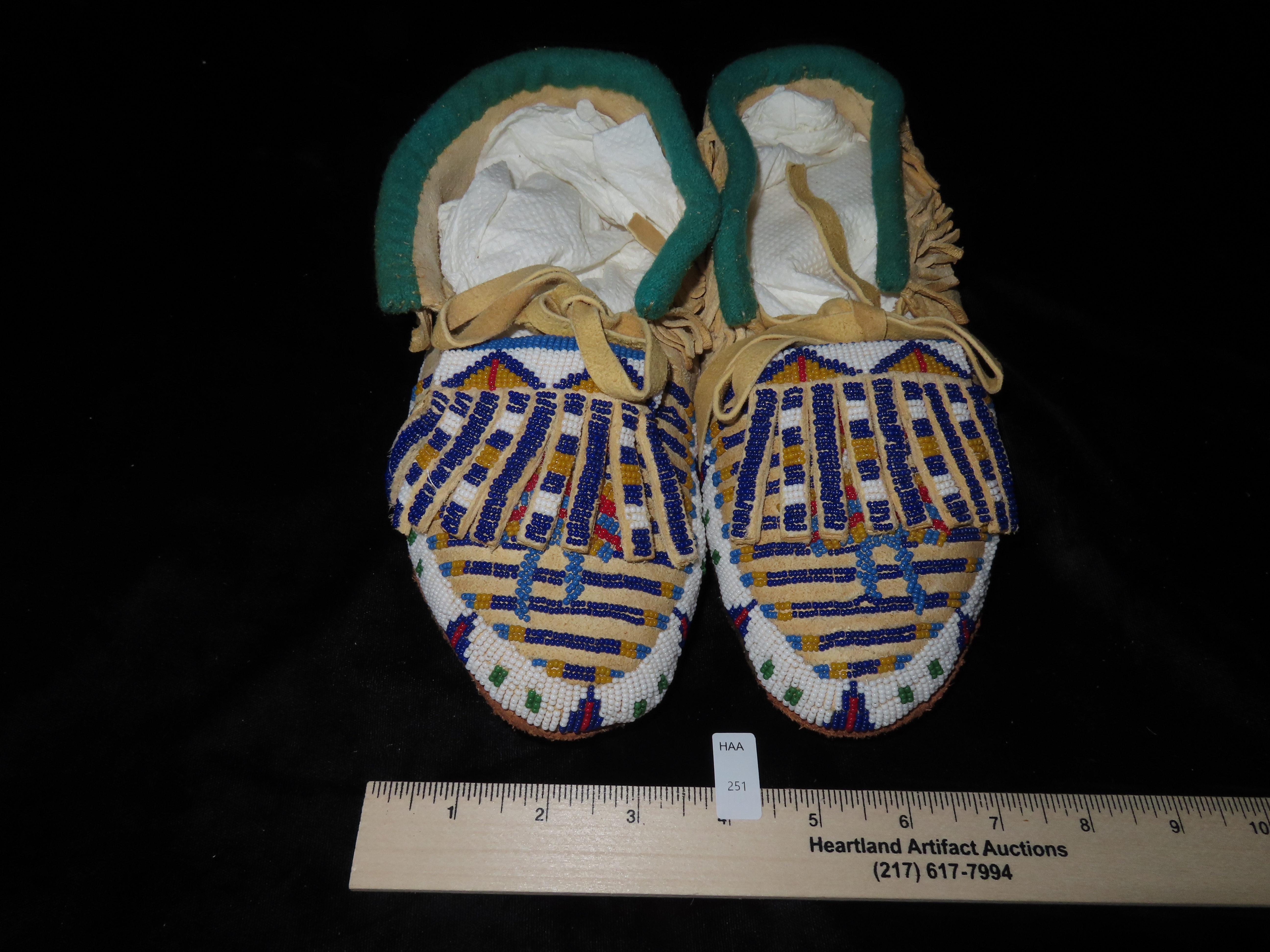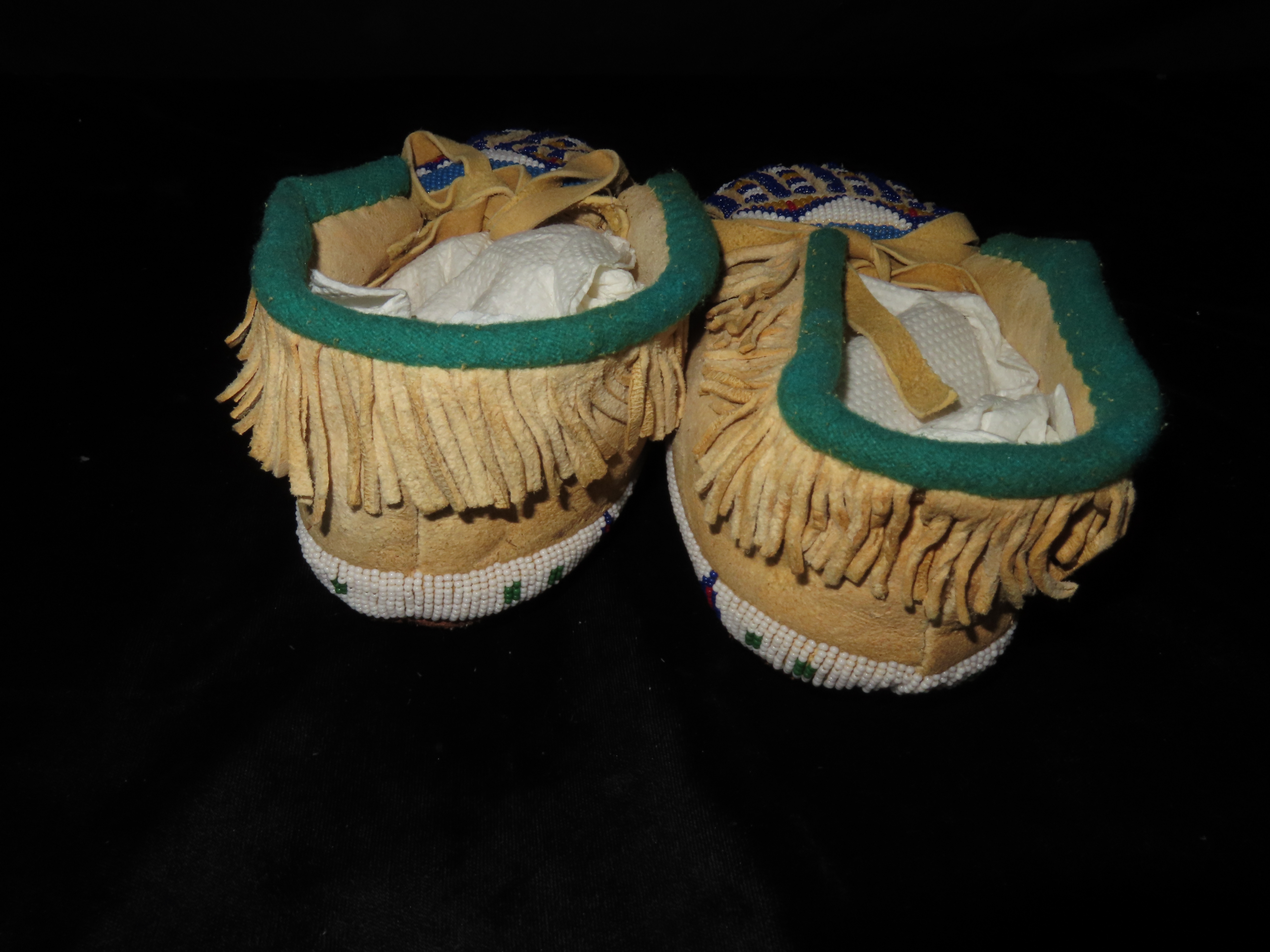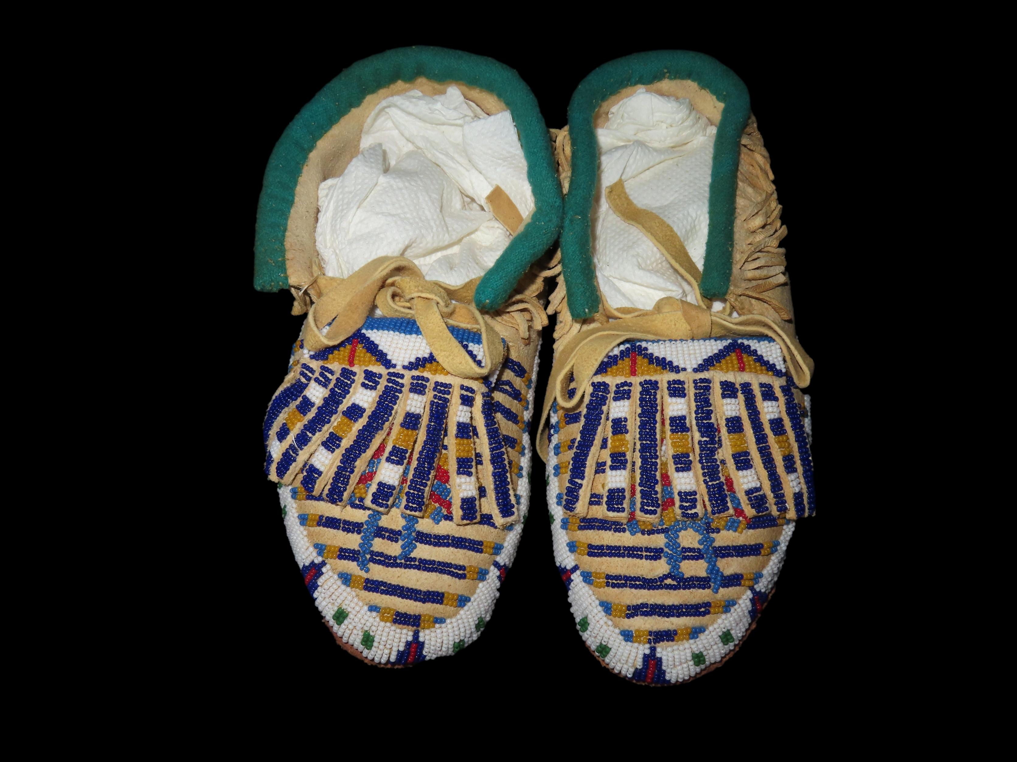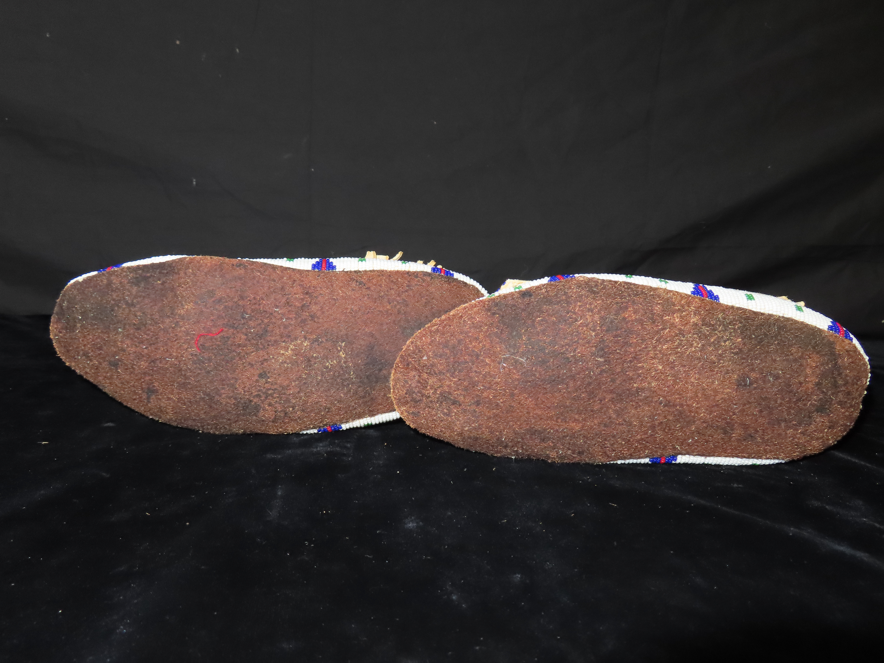 Hand Beaded Hide Moccasins-Native American Origin, Vintage, Worn