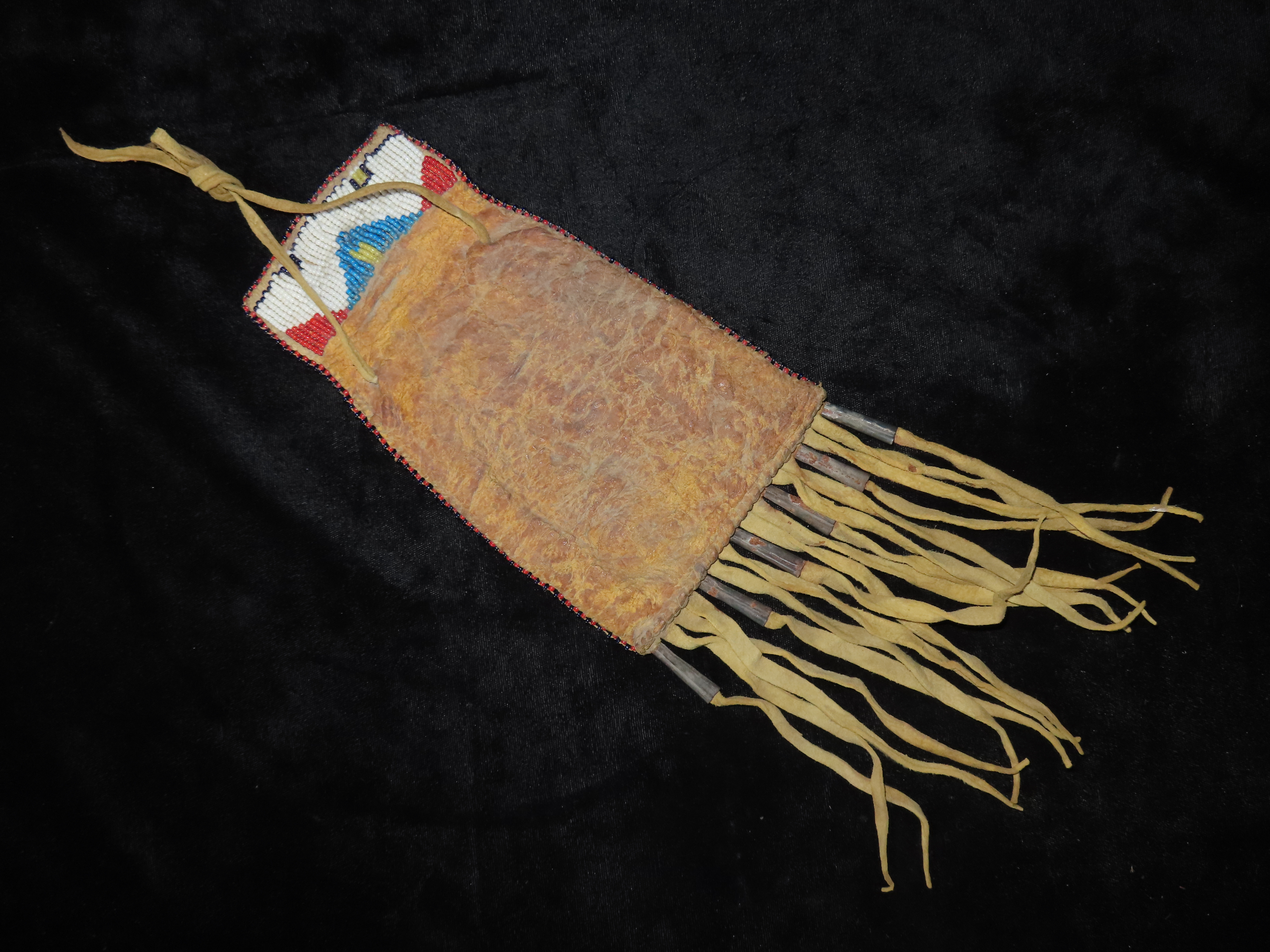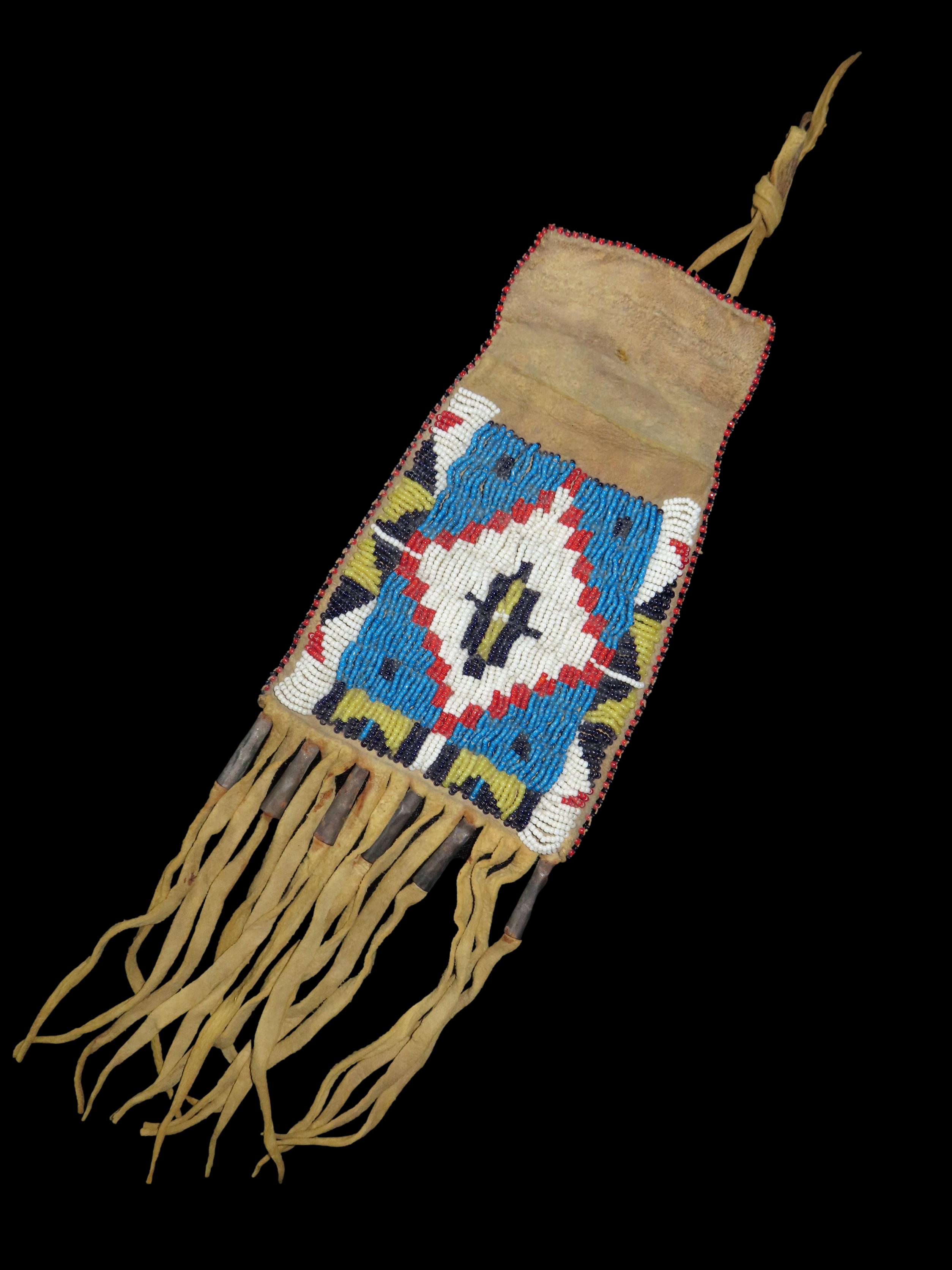 5 1/4″ Hand Beaded Hide Flint/Tobacco Pouch, Native American, late 19th Century
