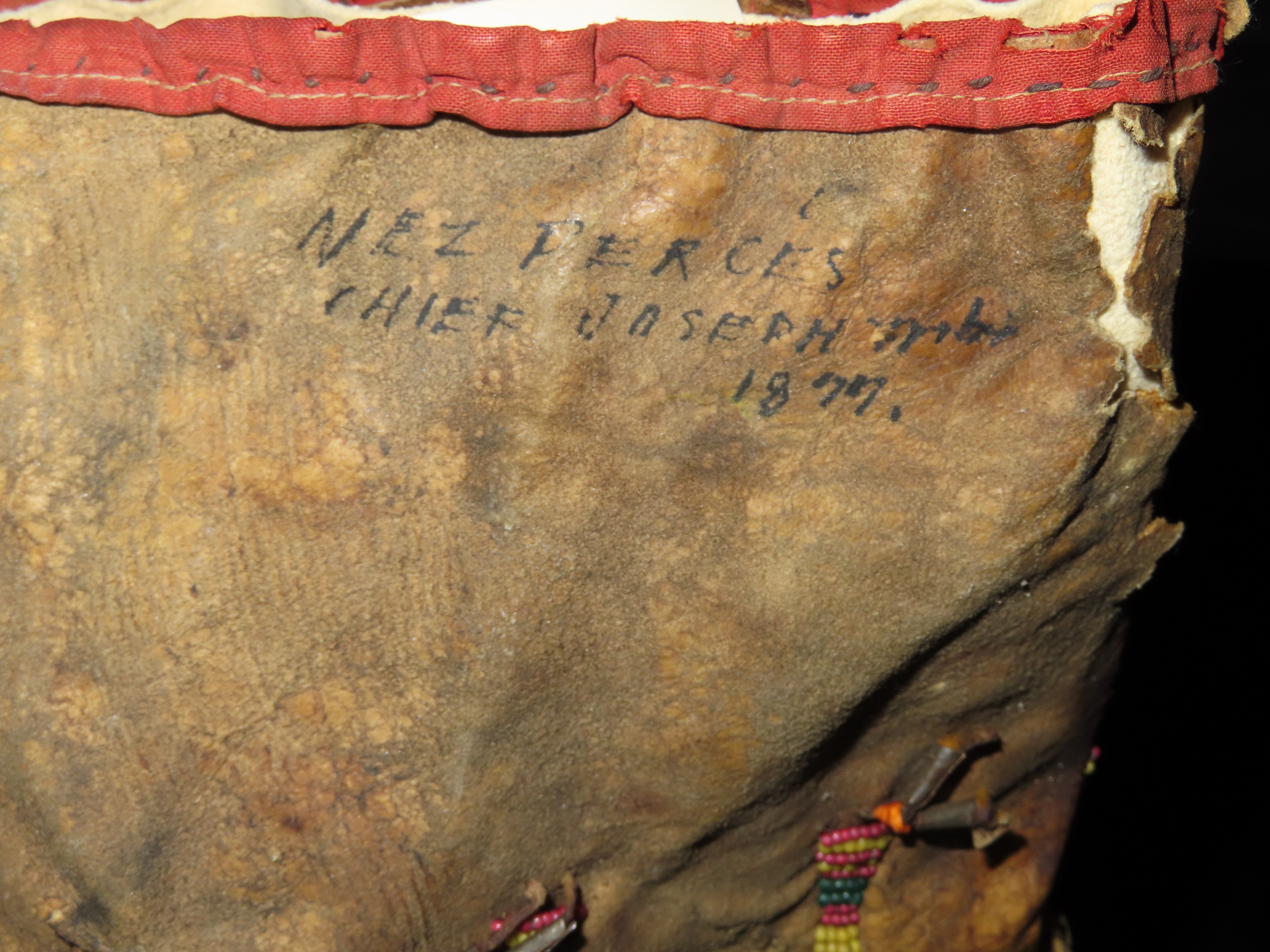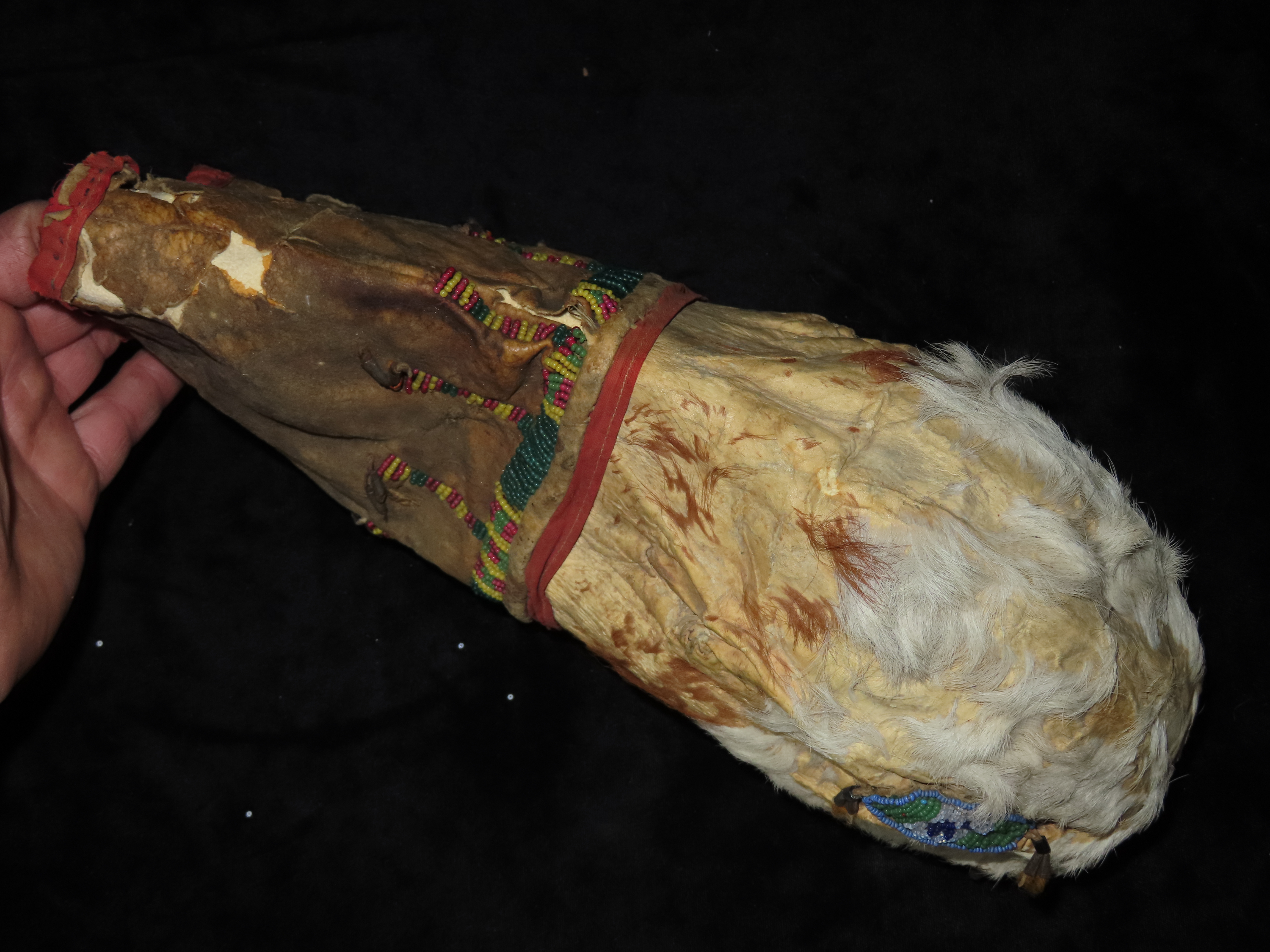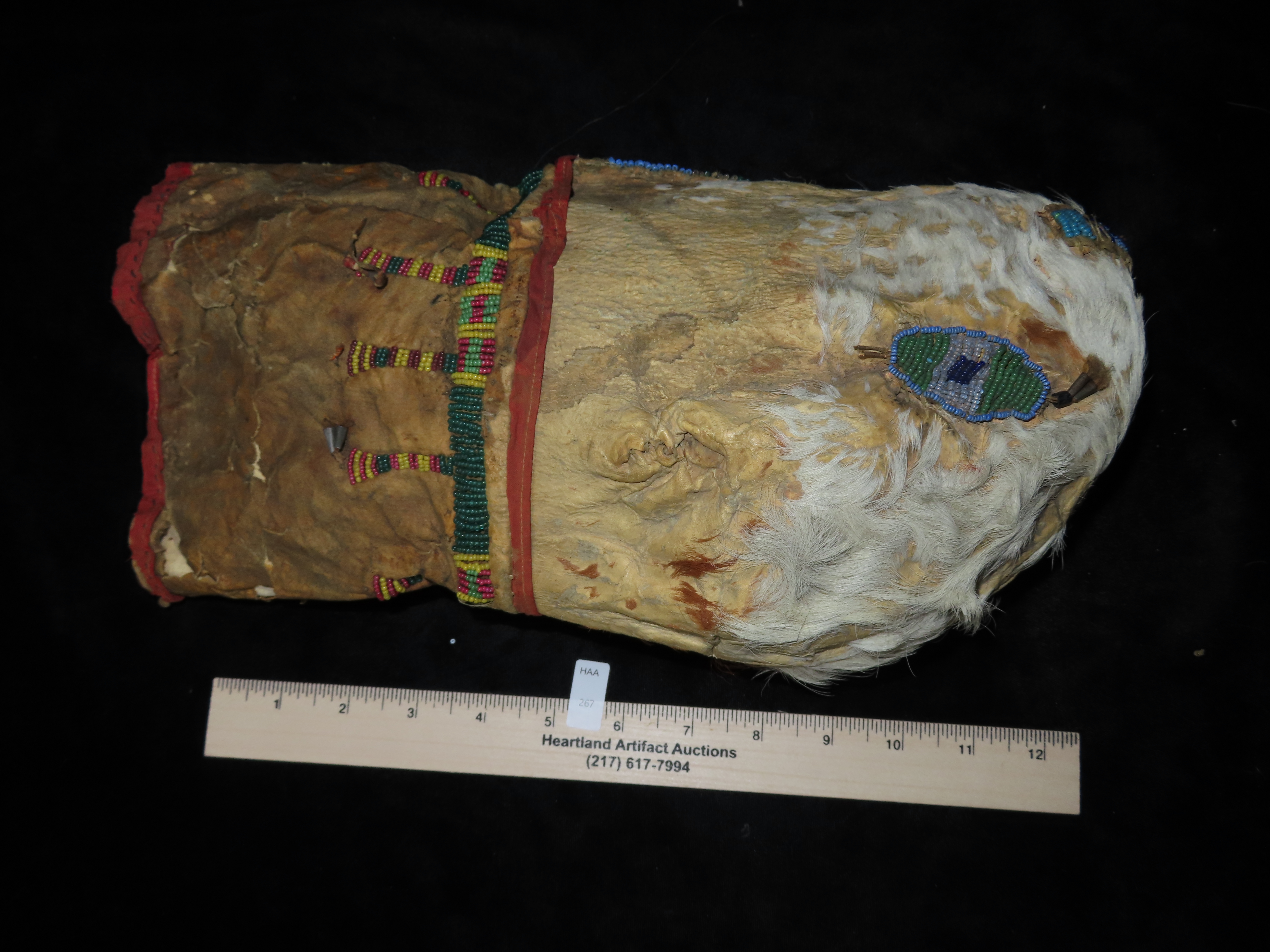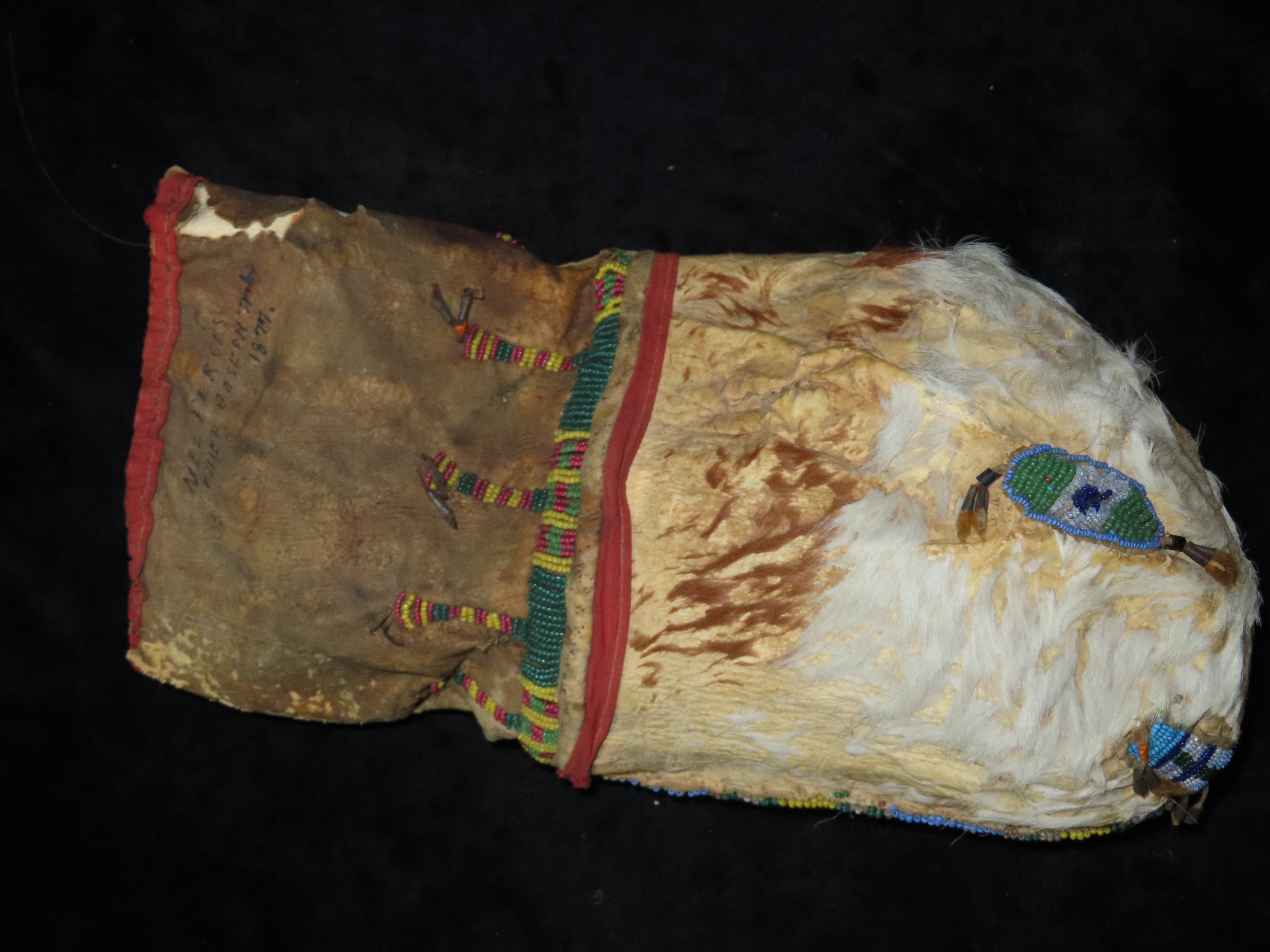 12″ Beaded Hide Medicine Bag, marked “Nez Perces Chief Joseph, 1877” Extremely Old, Still Some Animal Hair on the Hide.
