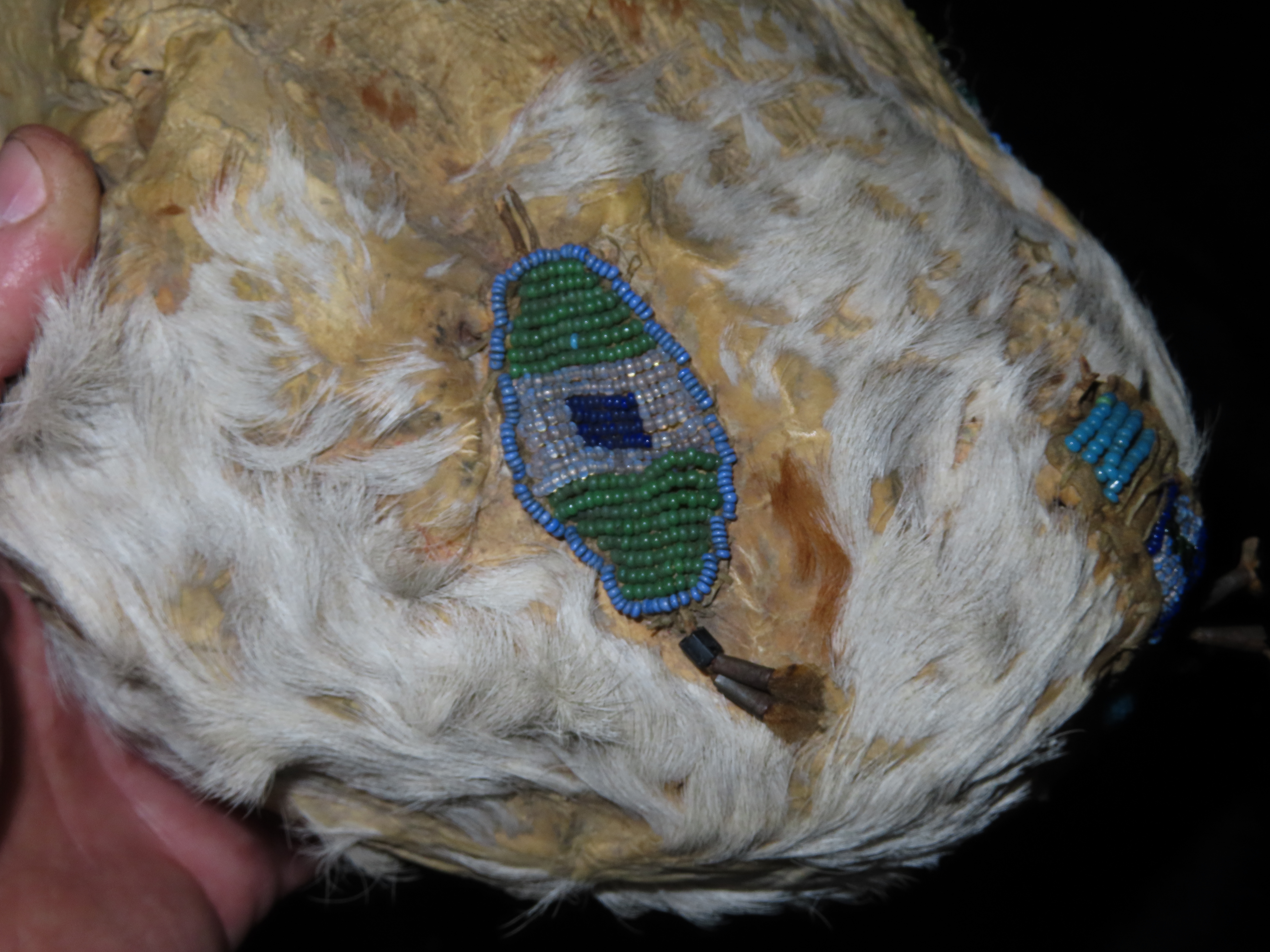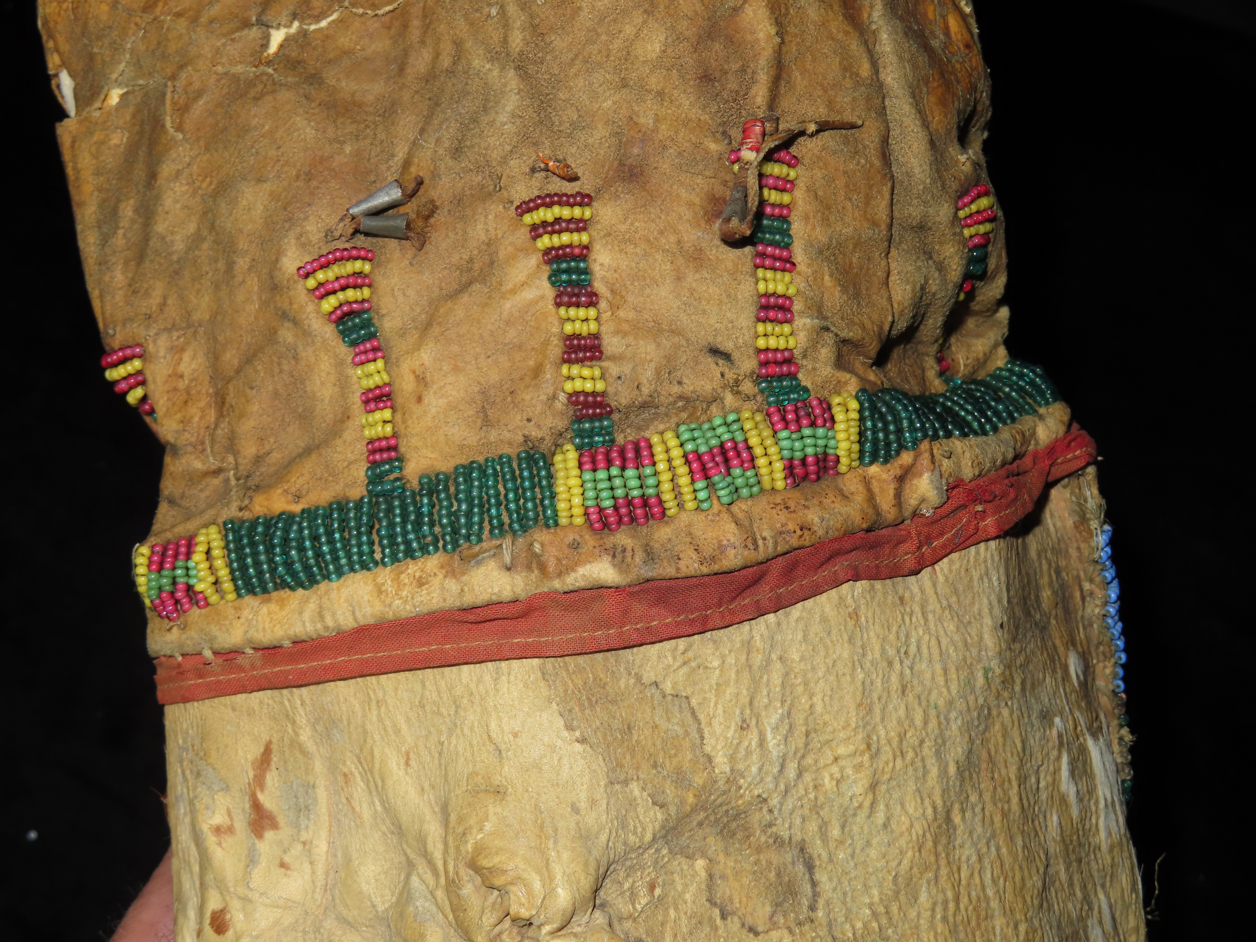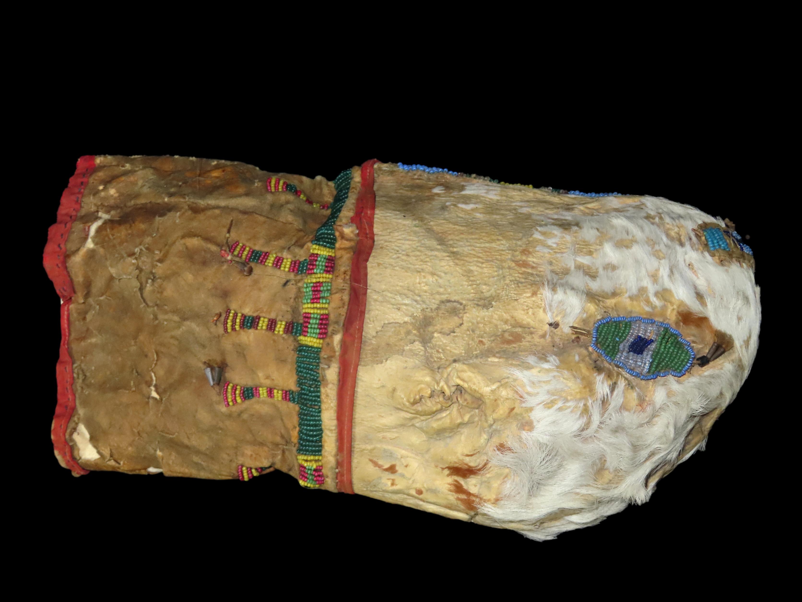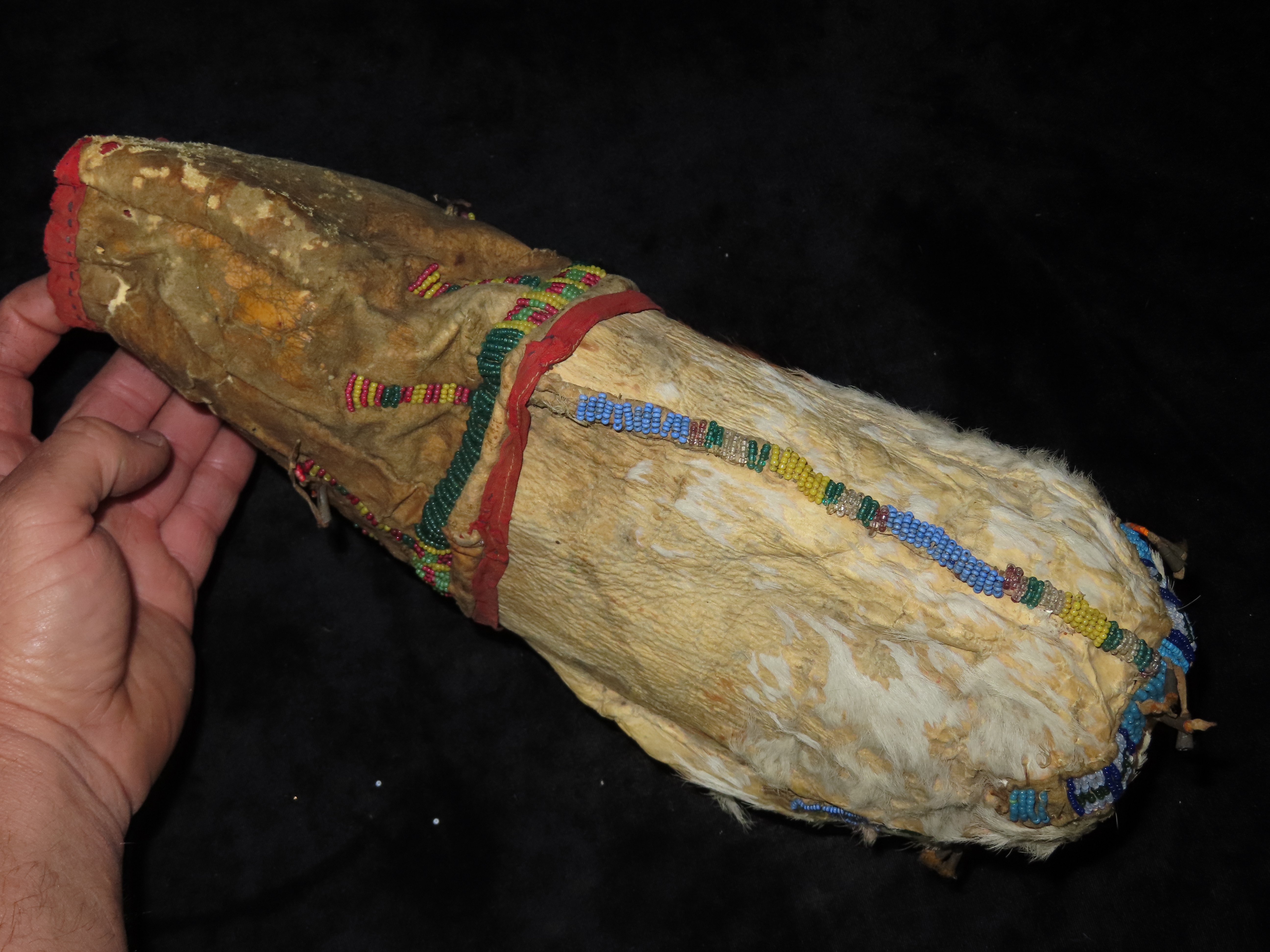 12″ Beaded Hide Medicine Bag, marked “Nez Perces Chief Joseph, 1877” Extremely Old, Still Some Animal Hair on the Hide.