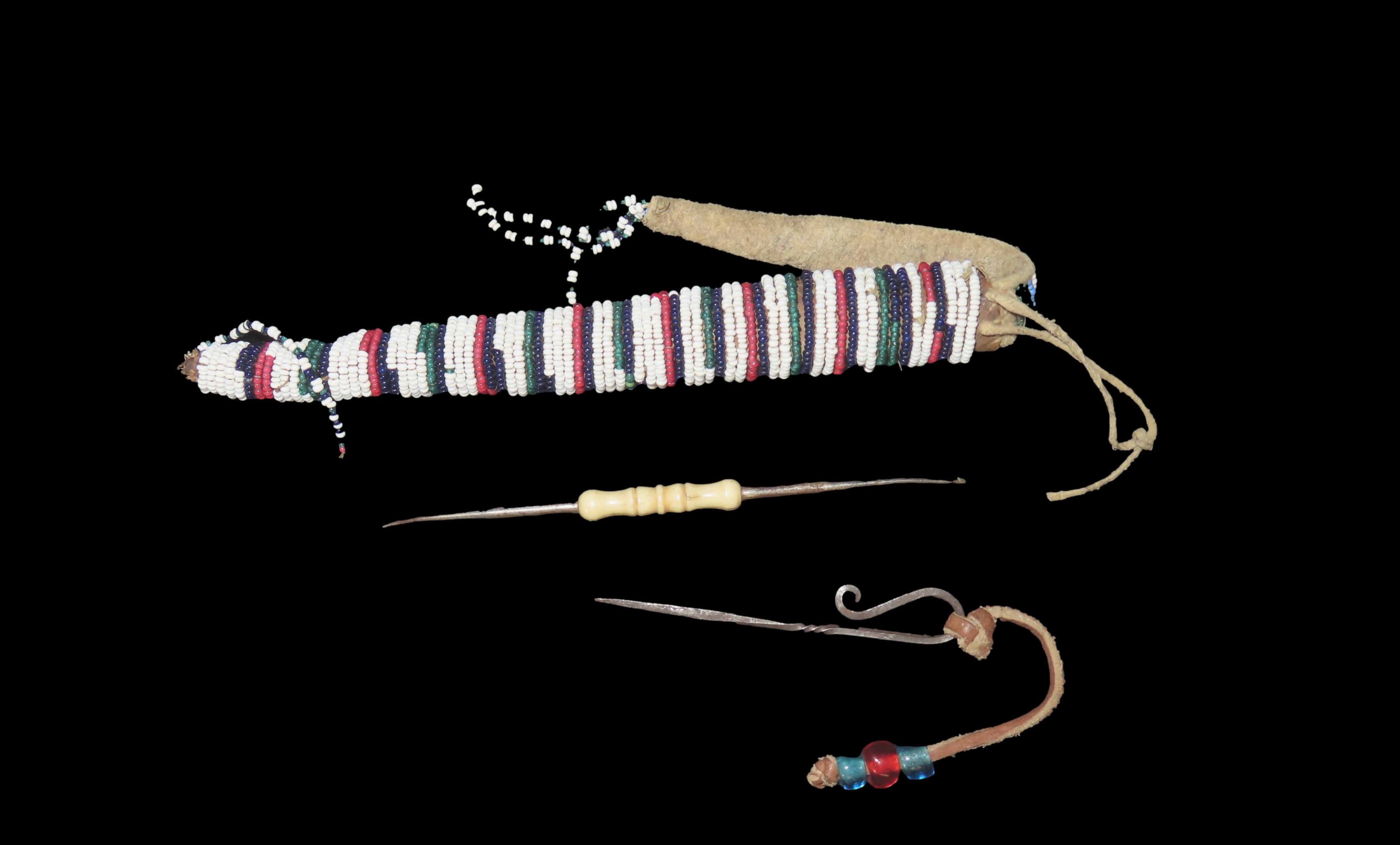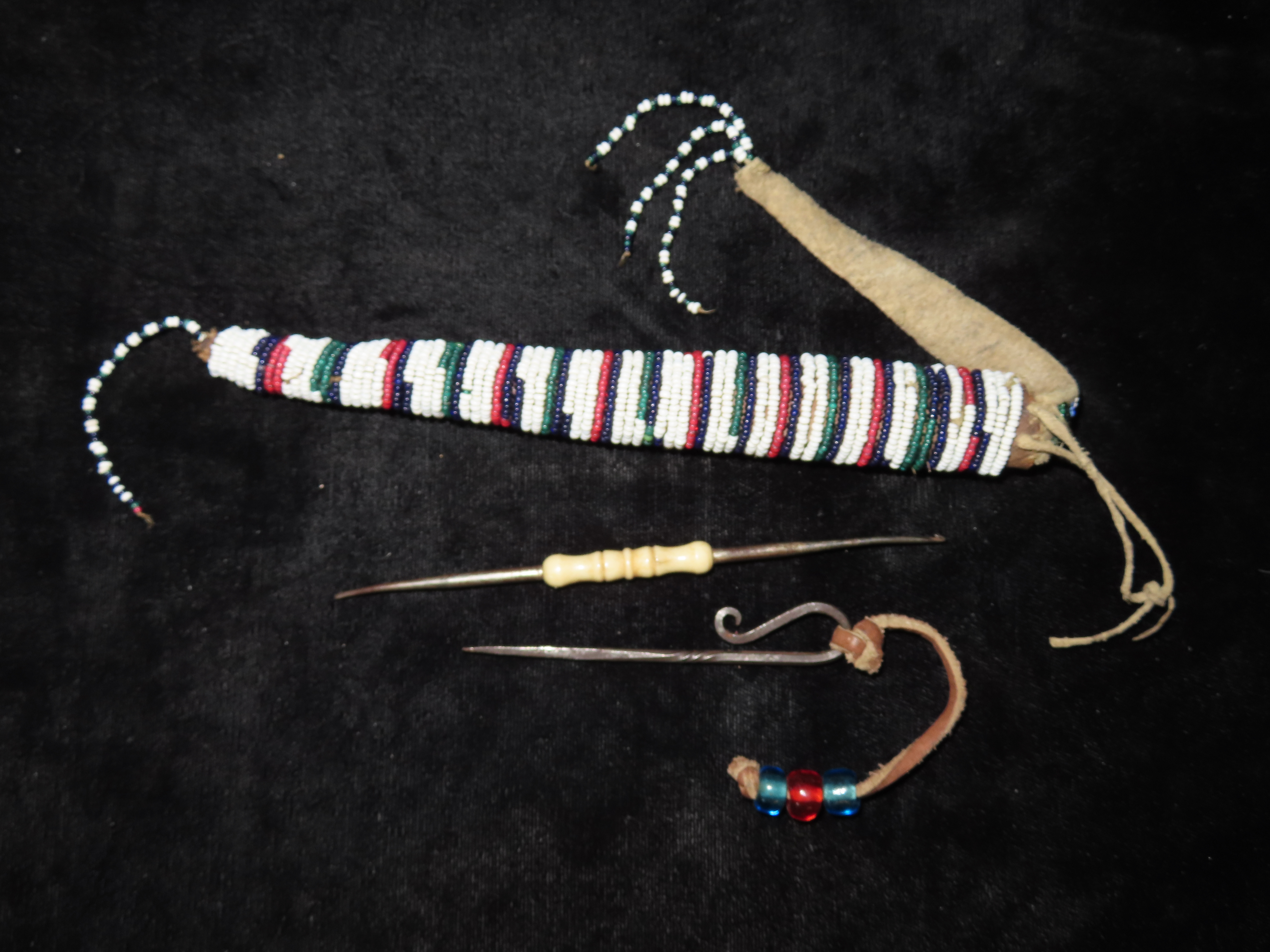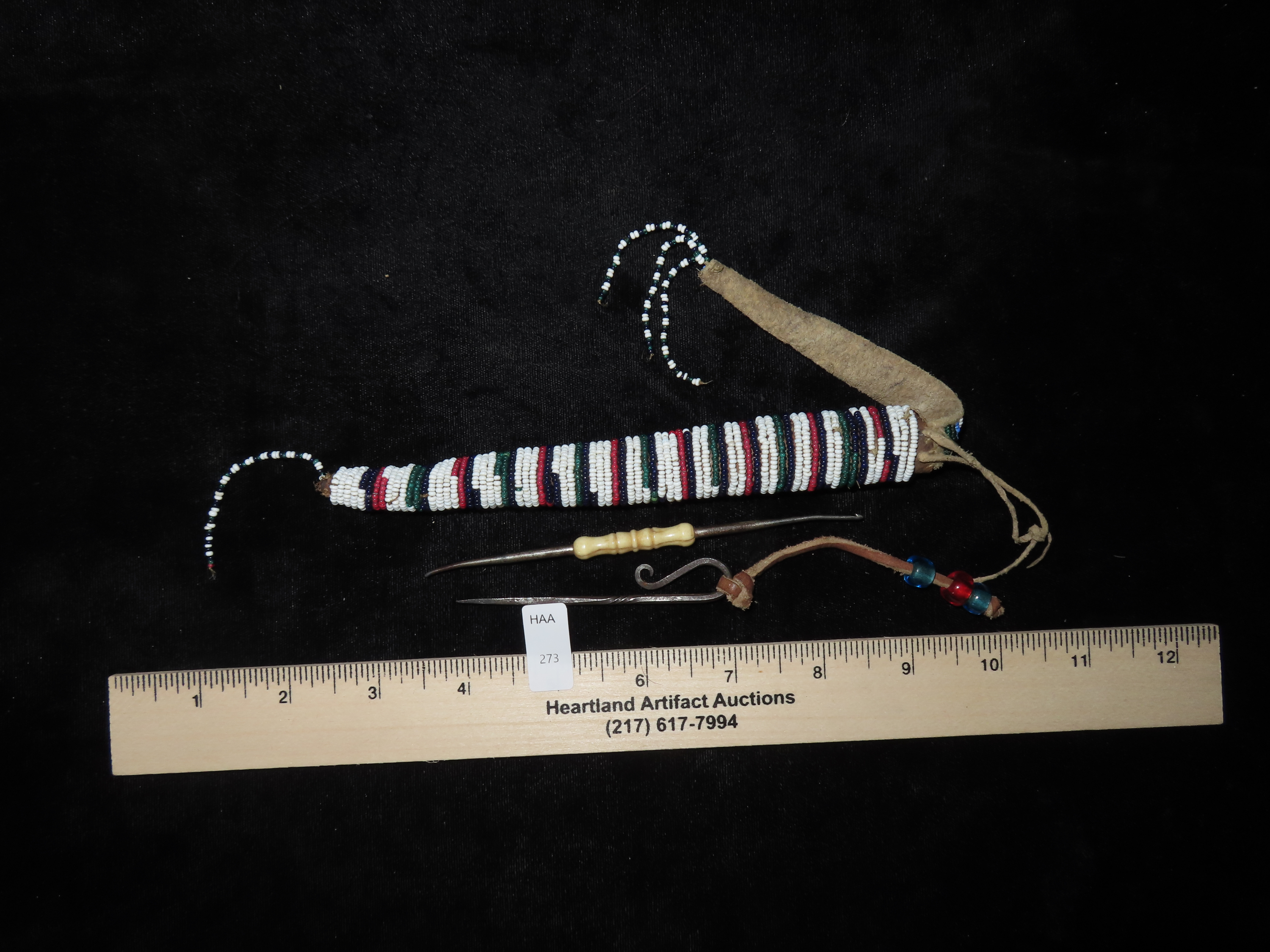 7 1/4″ Beaded Native American Awl Case, with 2 Awls